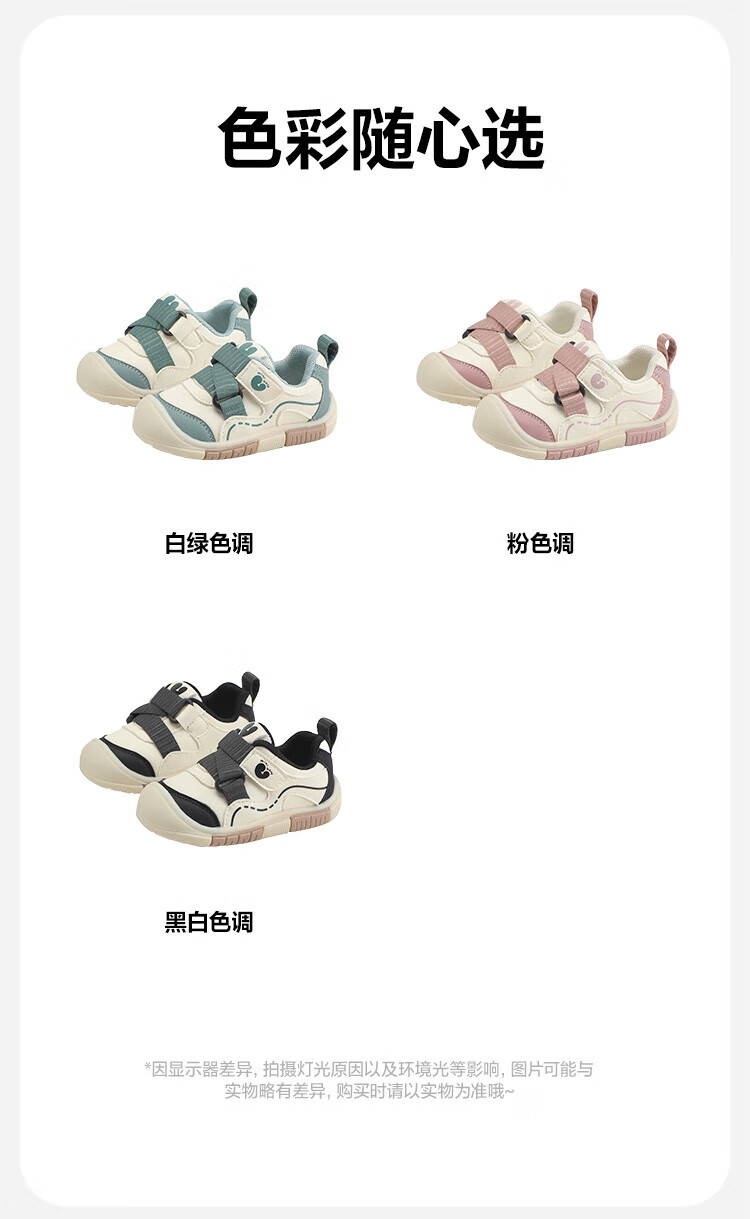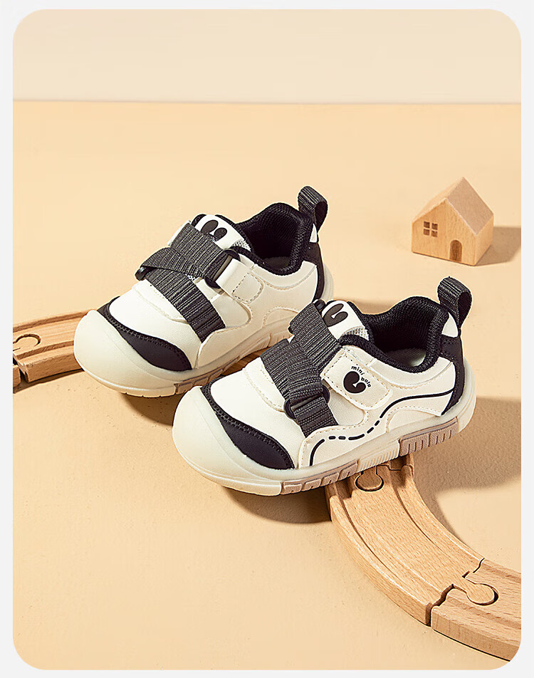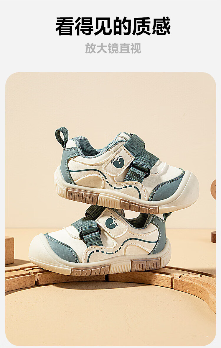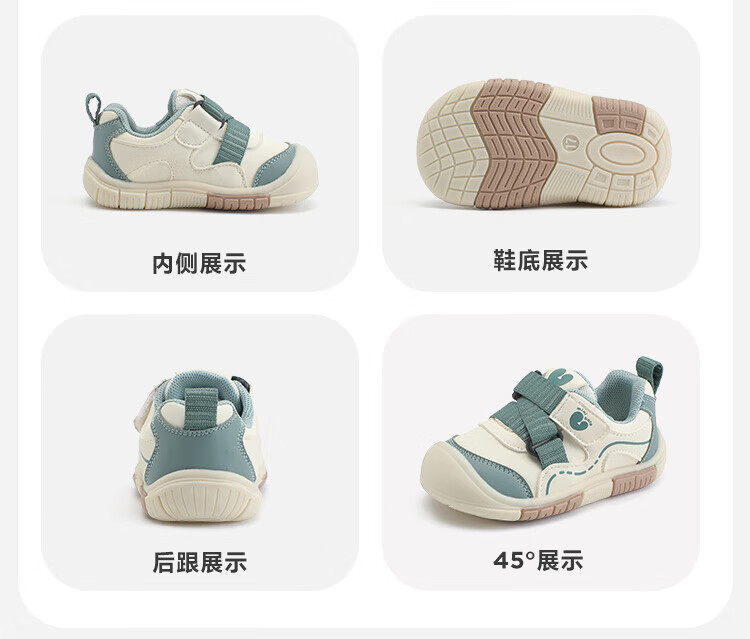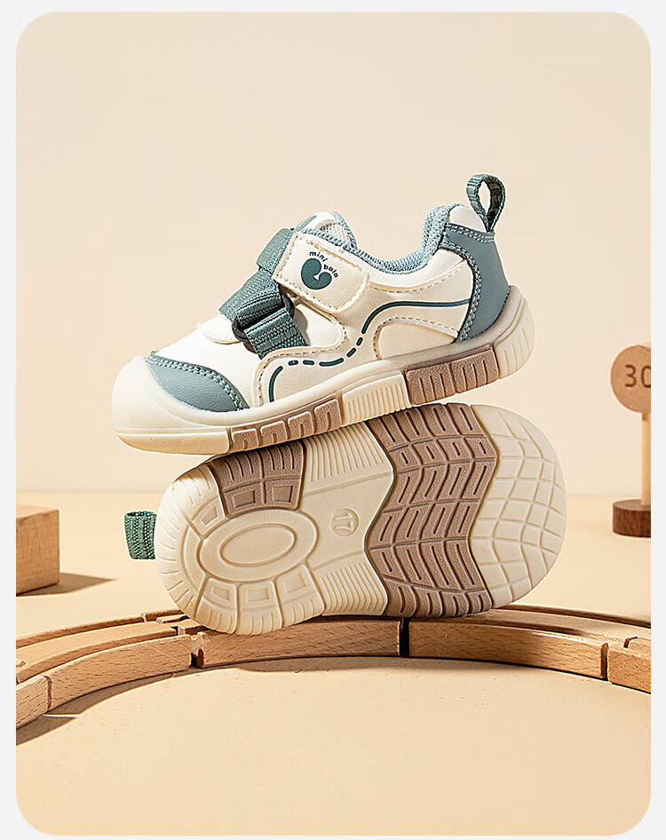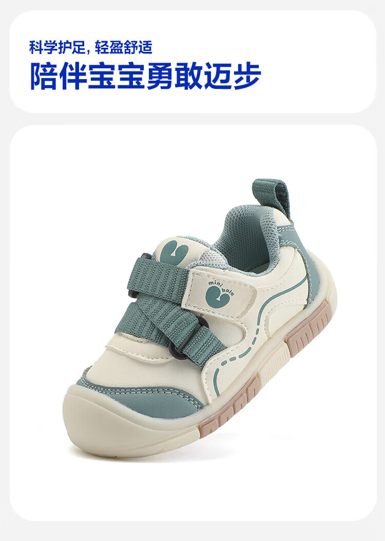 Minibala children's shoes, children's toddler shoes, autumn new baby lightweight and comfortable casual soft-soled non-slip functional shoes for boys and girls, white and green, size 21, suitable for feet length 13.0-13.5cm
