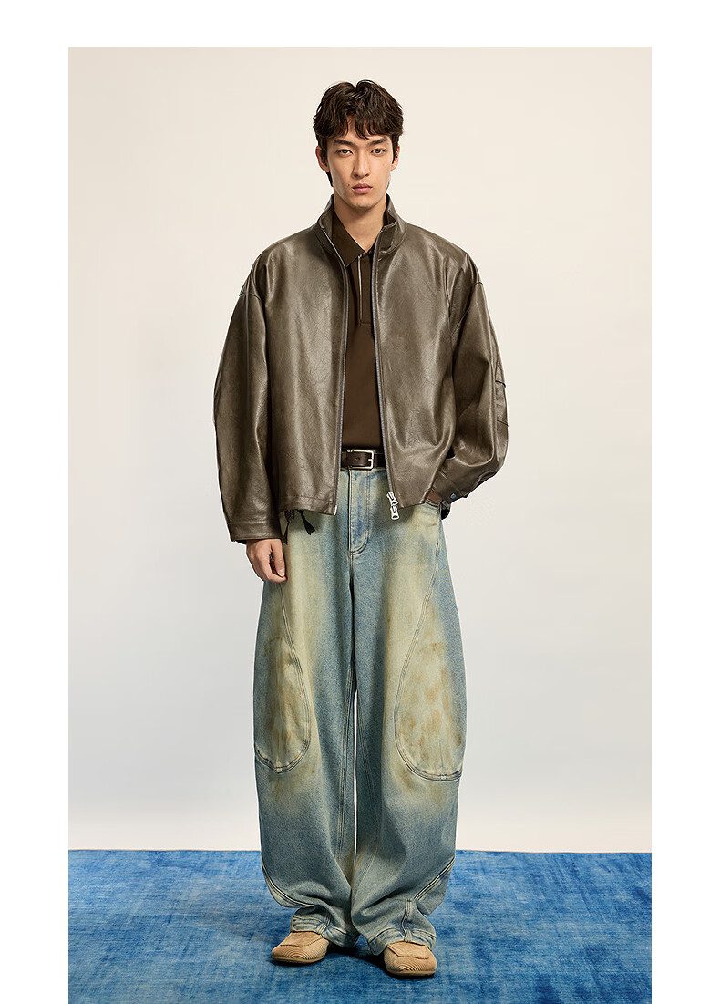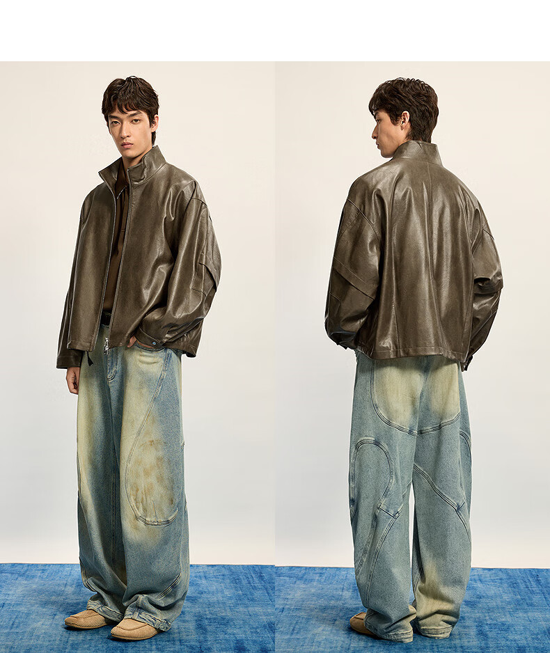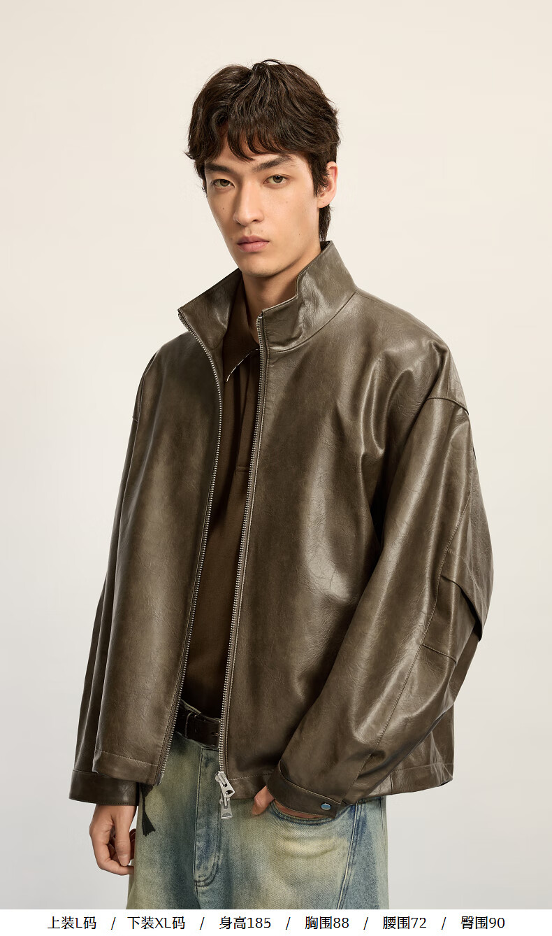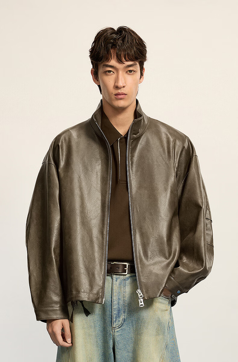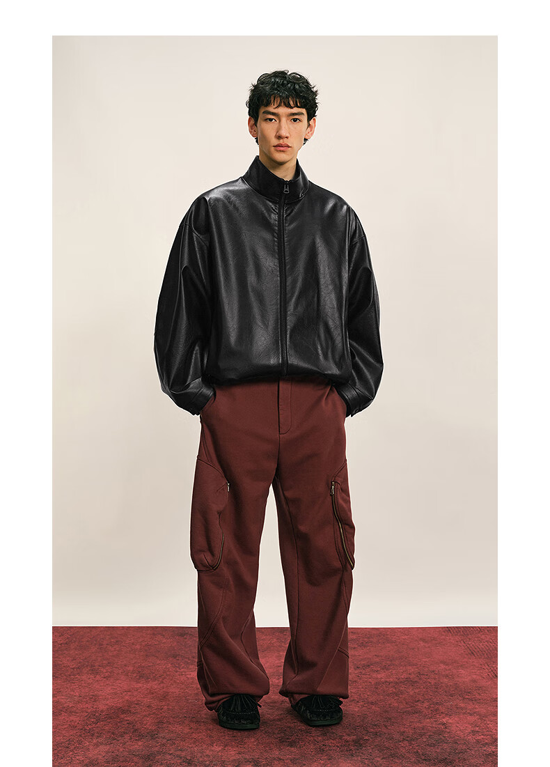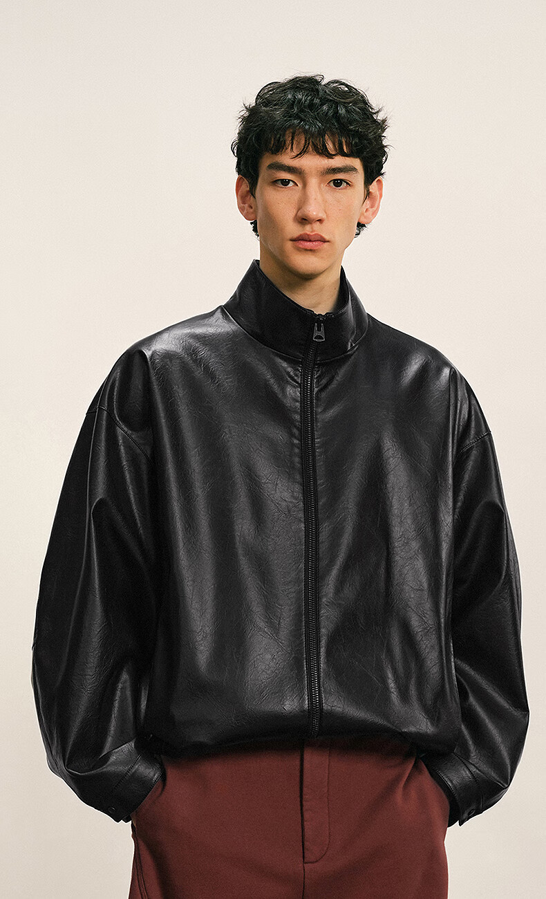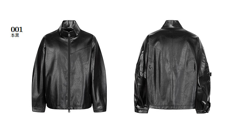 Sketch Men's 2025 Winter New Imitation Leather Jacket H-shaped Short Stand Collar Zipper 9P0A13450 001 Black M