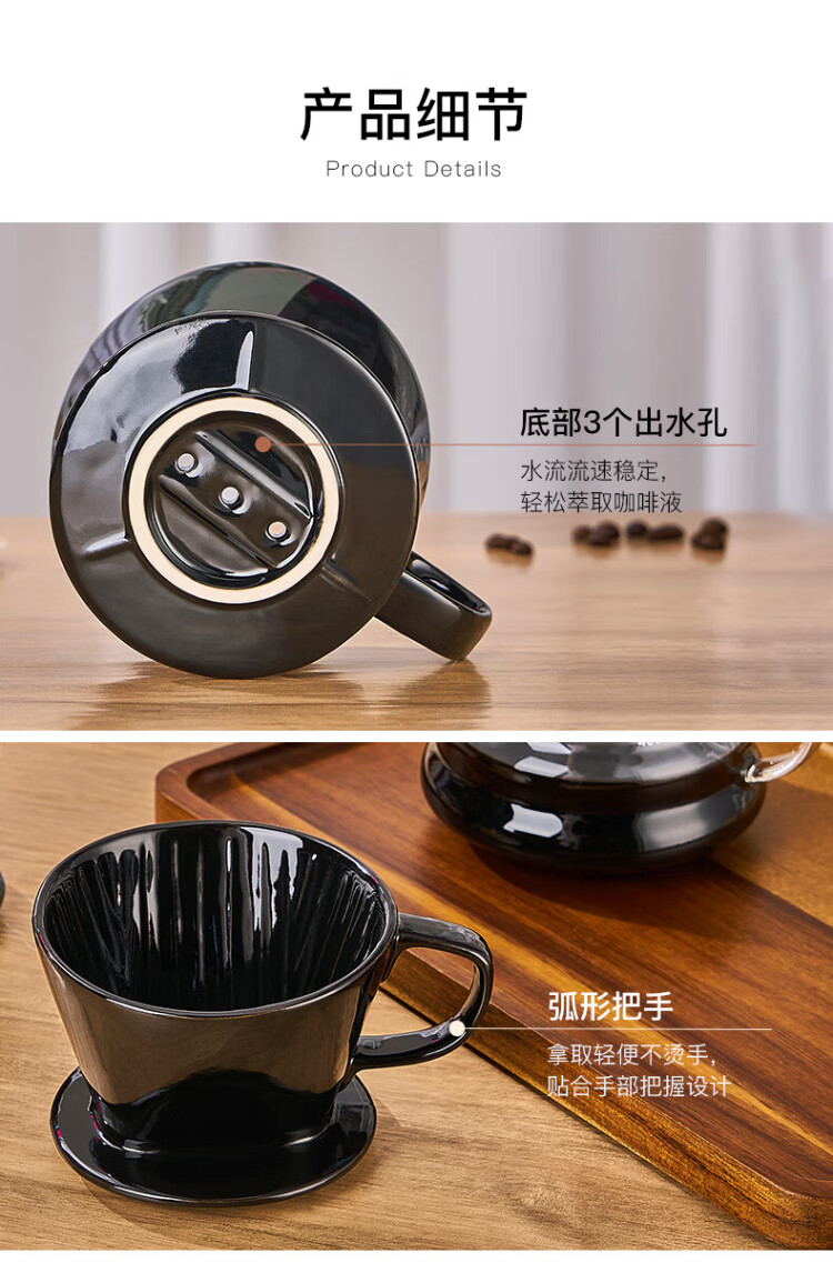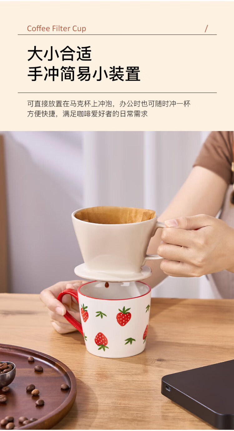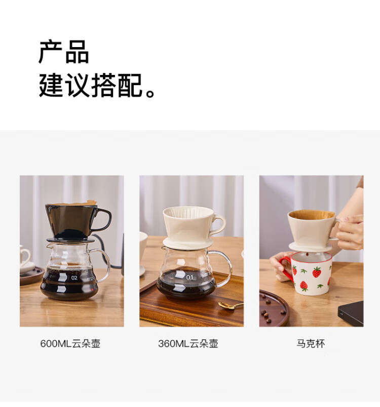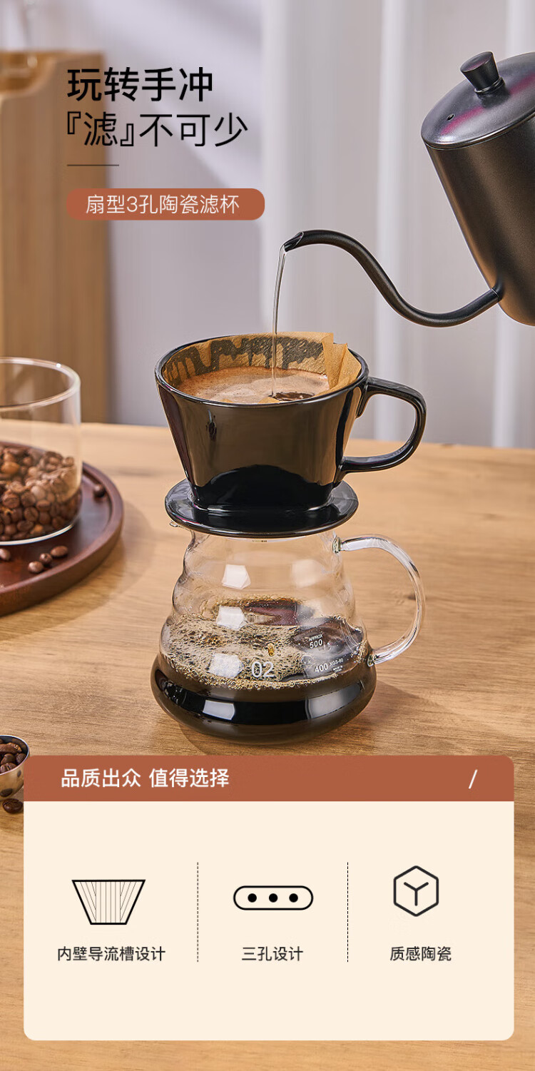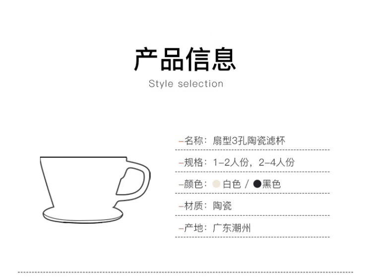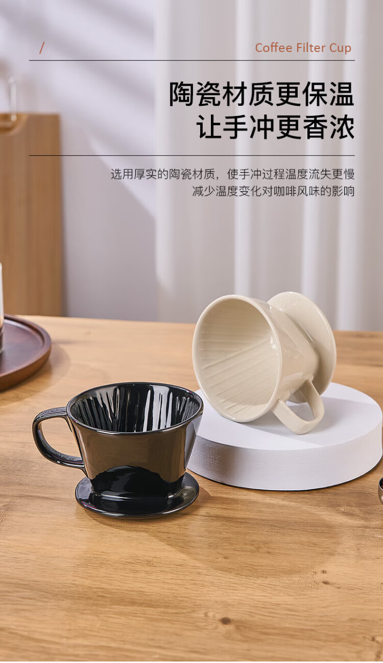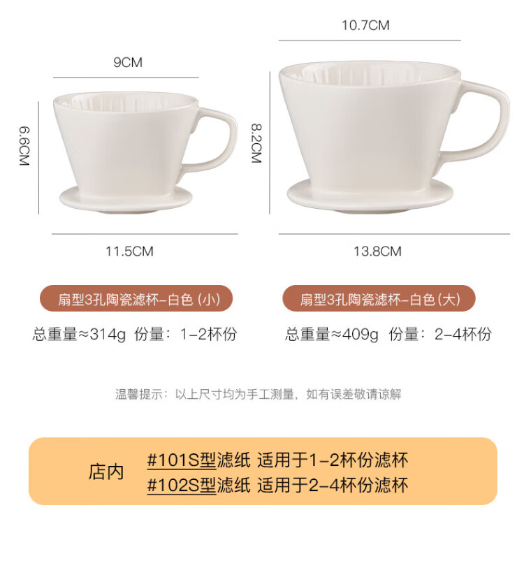 Hand-brewed coffee filter cup, fan-shaped ceramic filter funnel, sharing pot, hand-brewed coffee pot set for home use, small fan-shaped filter cup - white (serves 1~2 people)