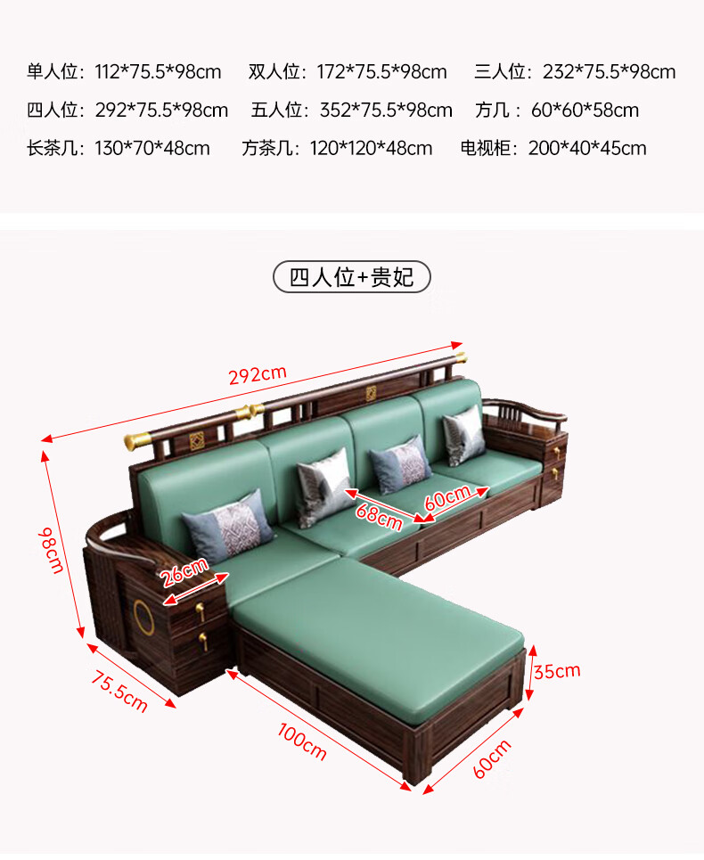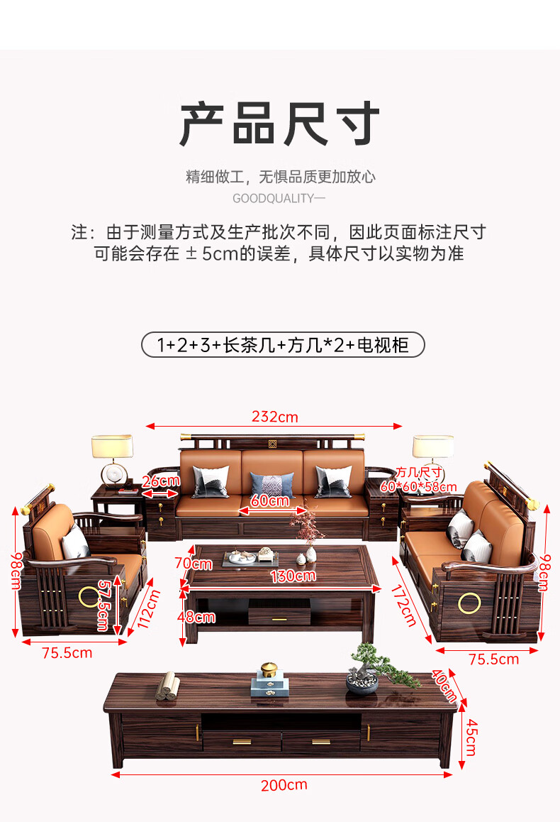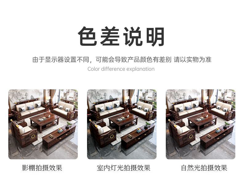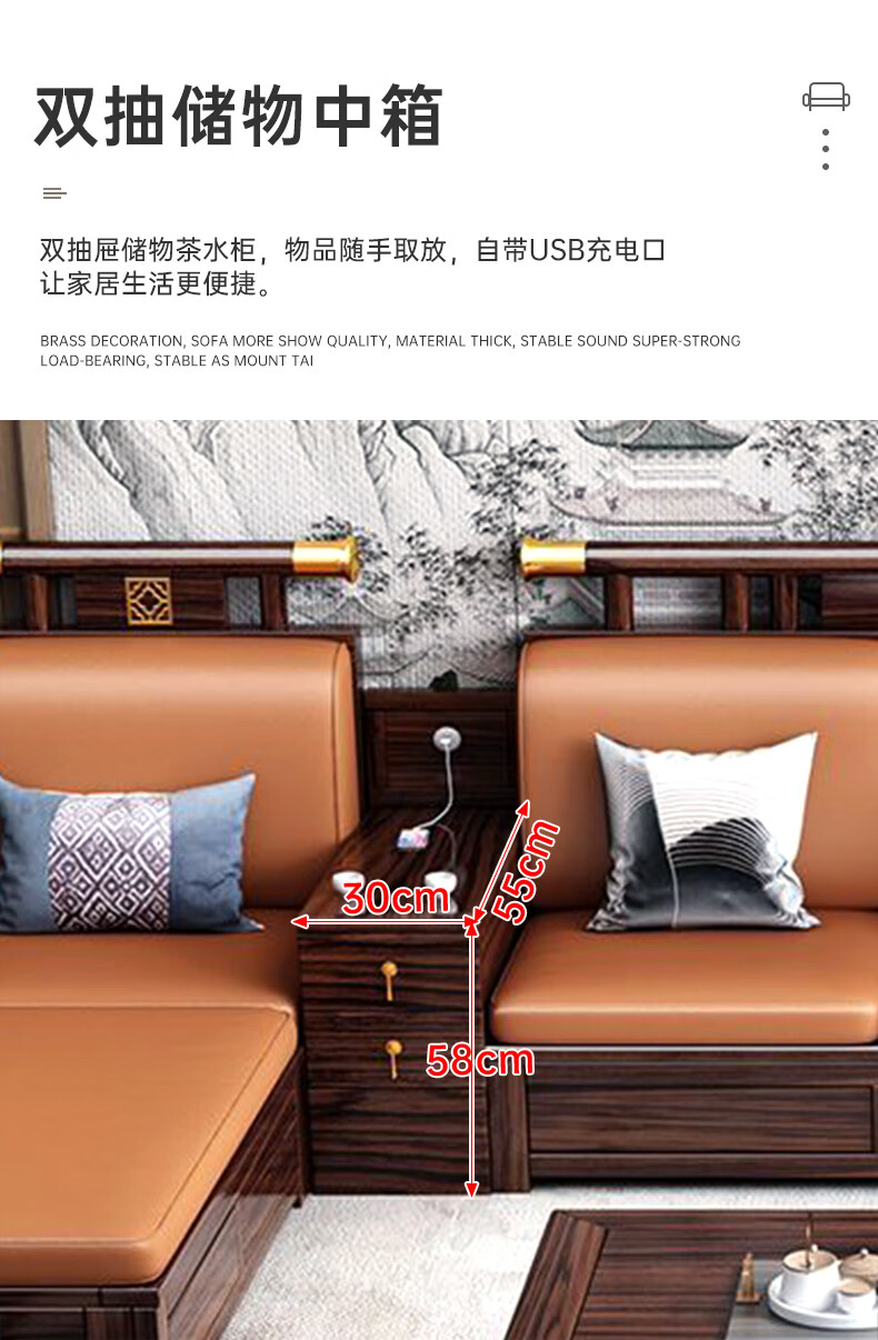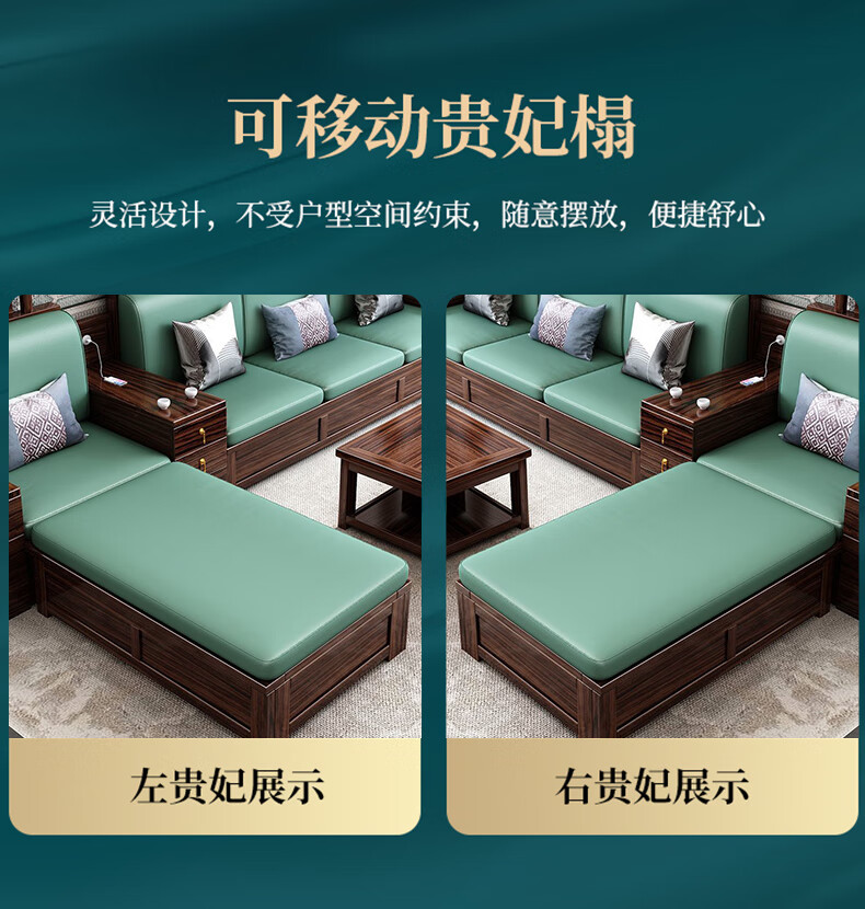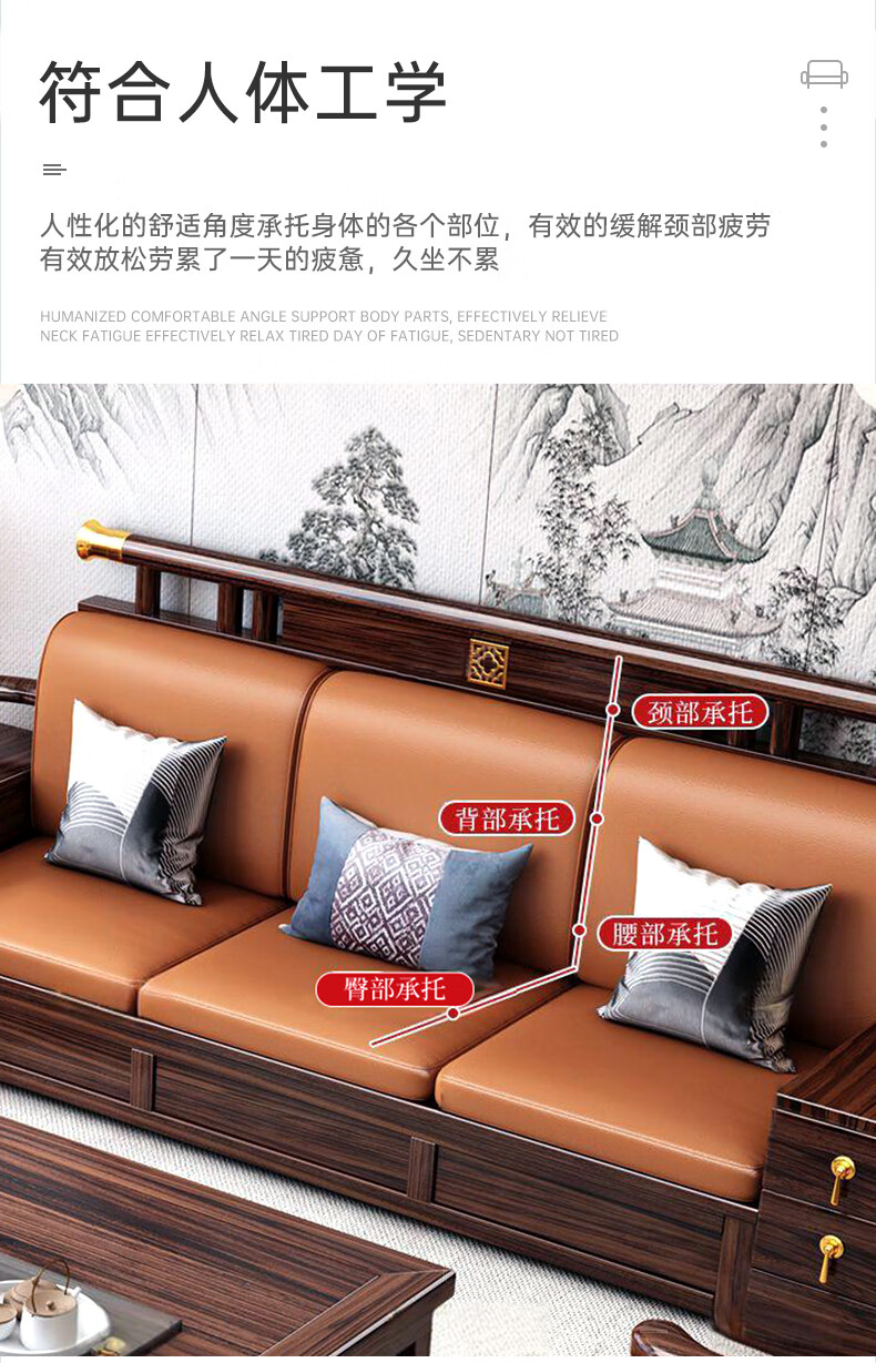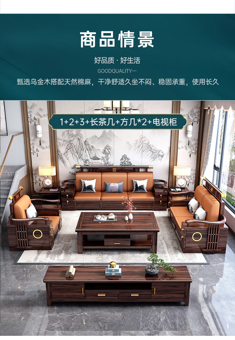 Youfanshi new Chinese style ebony solid wood sofa living room combination high-end cat claw leather winter and summer dual-use large apartment storage furniture 2+2+3+coffee table+square table+TV cabinet