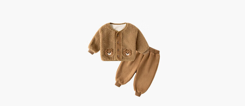 Dudu's Baby Plush Suit Autumn and Winter Children's Thickened Jacket Trousers Winter Boys' Winter Clothes Girls Two-piece Set Winter Fashion Khaki 90