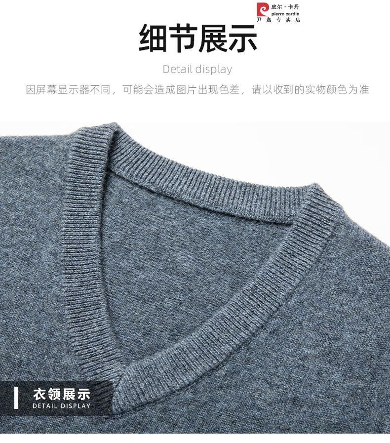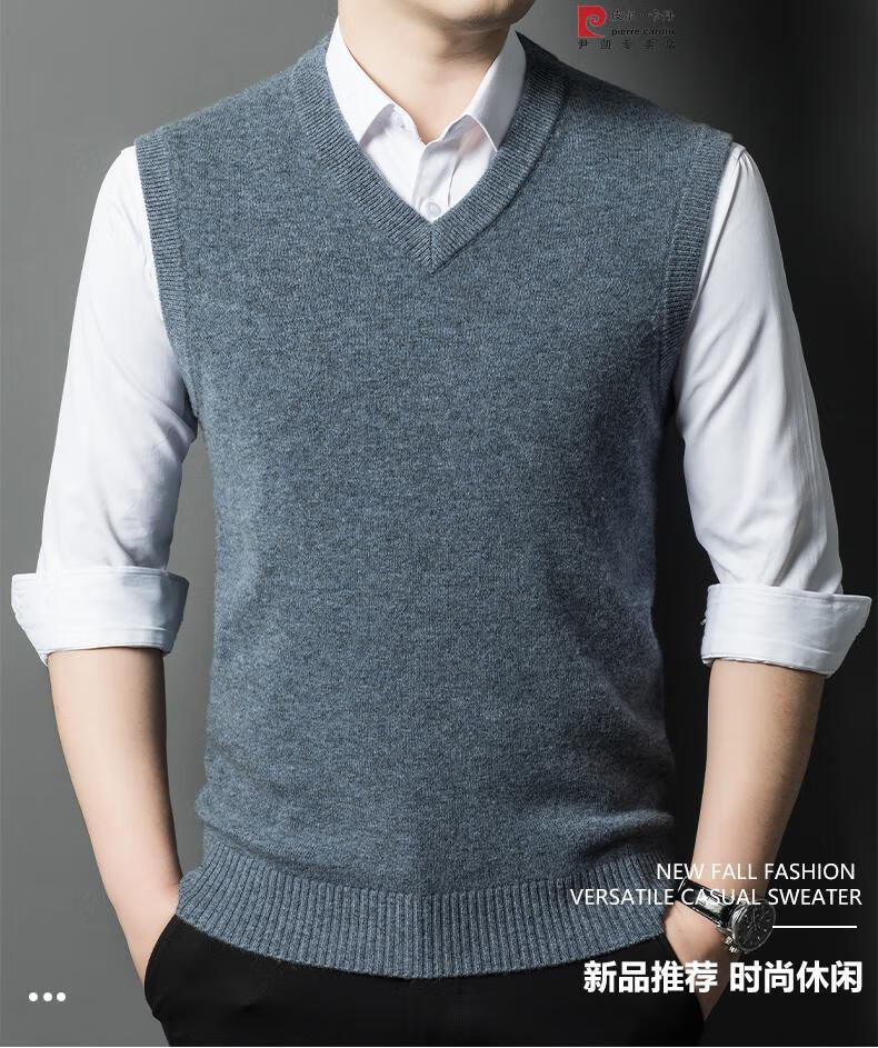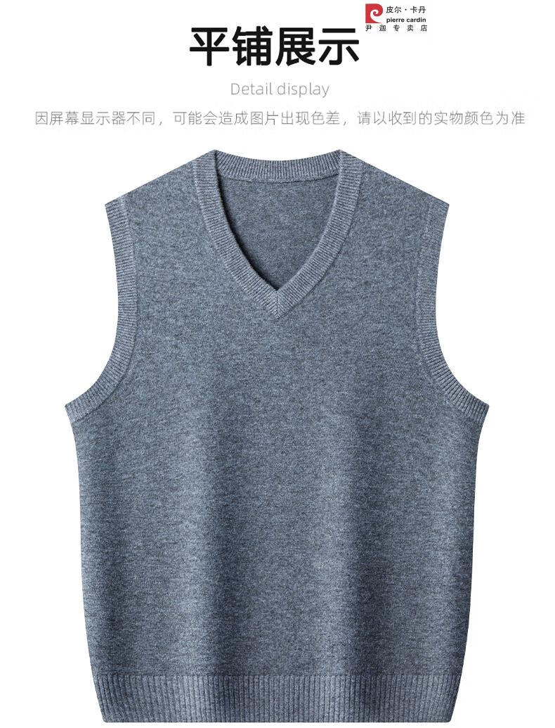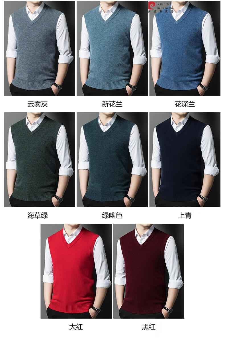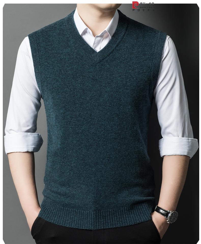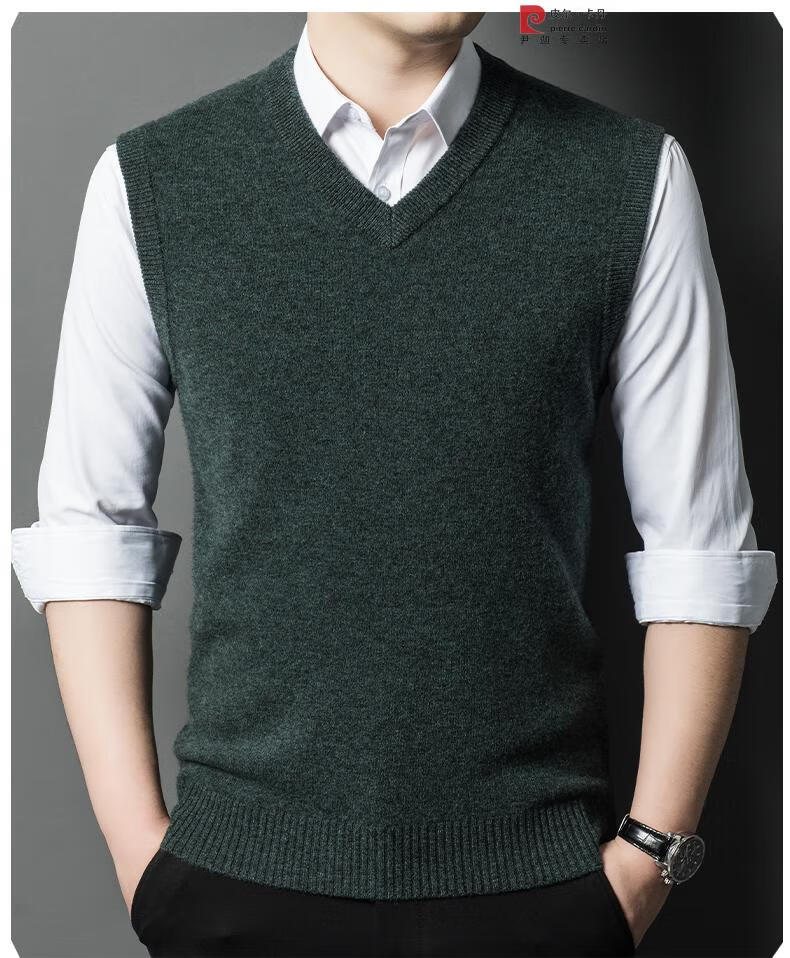 Pierre Cardin haut de gamme automne et hiver 100 laine col en V gilet pour hommes d'âge moyen affaires décontracté épais pull en laine couche de base chaude couleur verte 3310 4XL / 130 recommandé 185-205Jin Jin équivaut à 0,5 kg