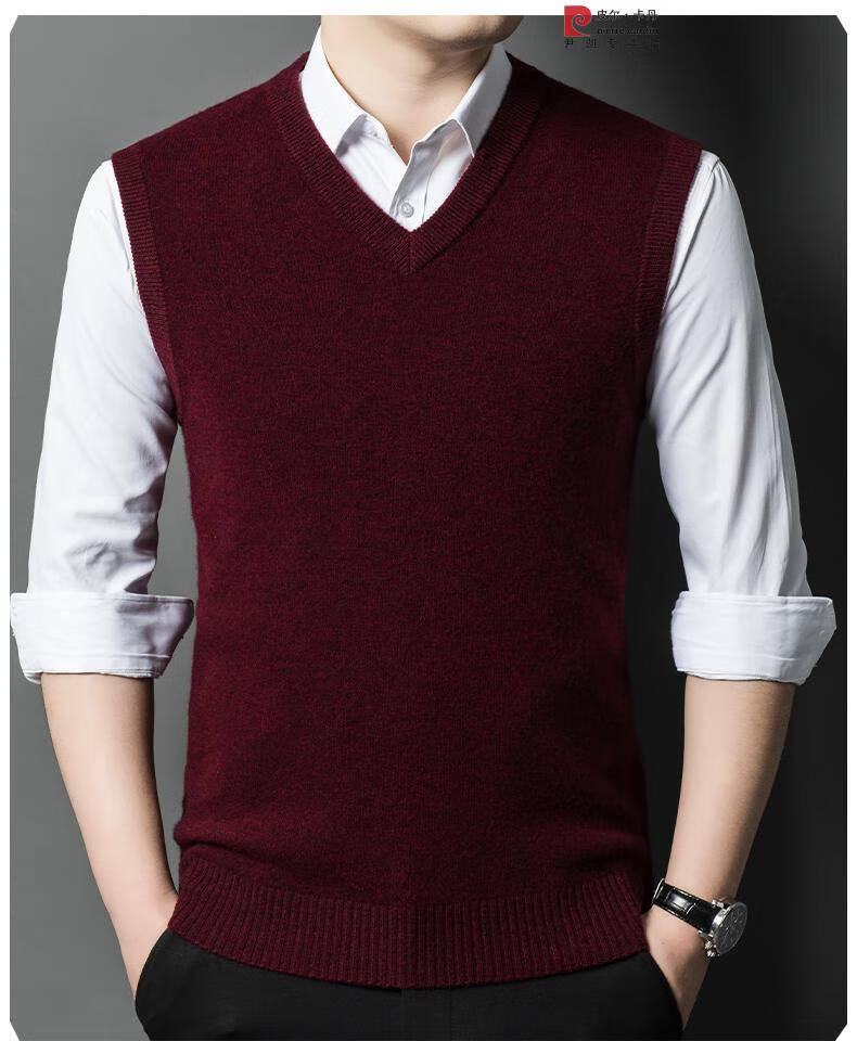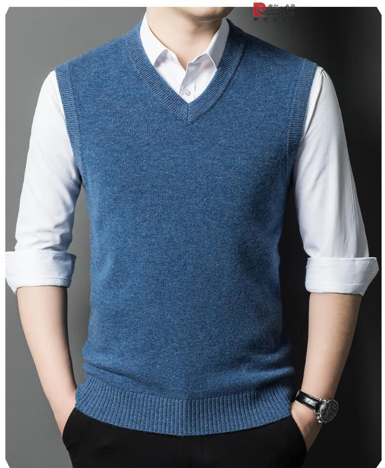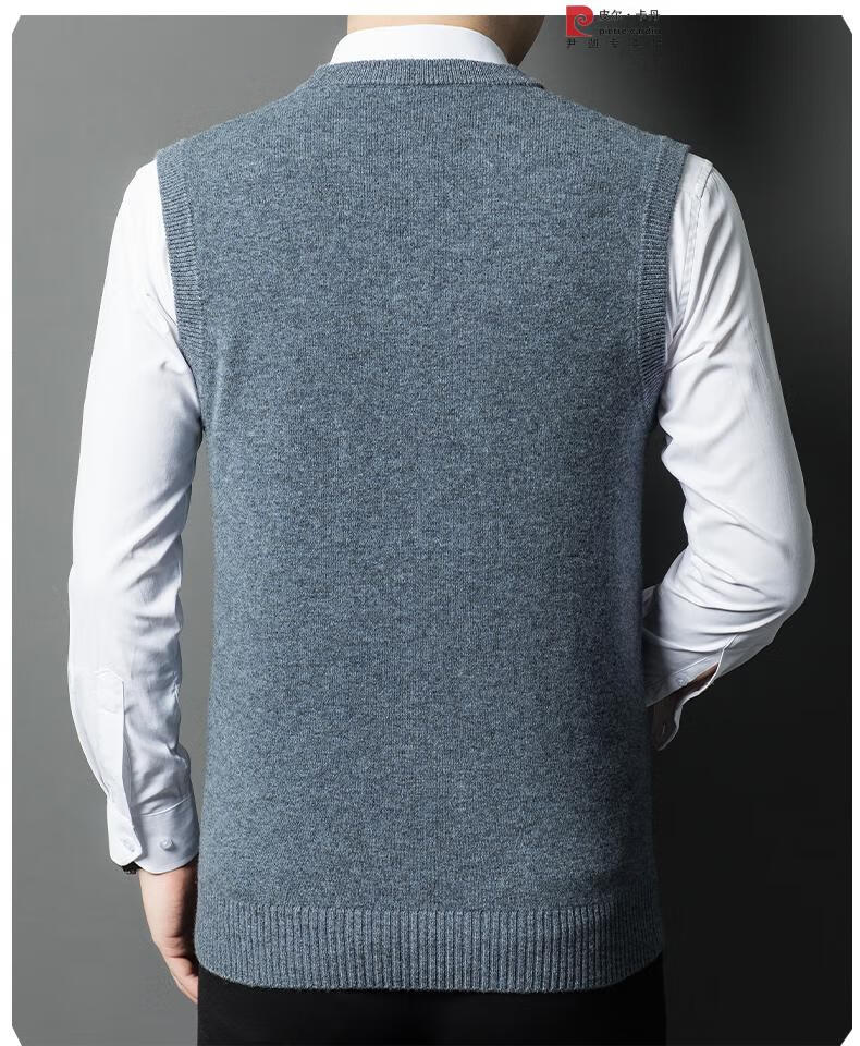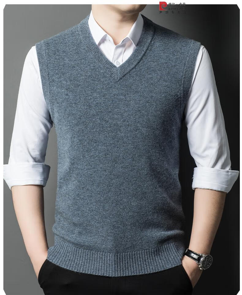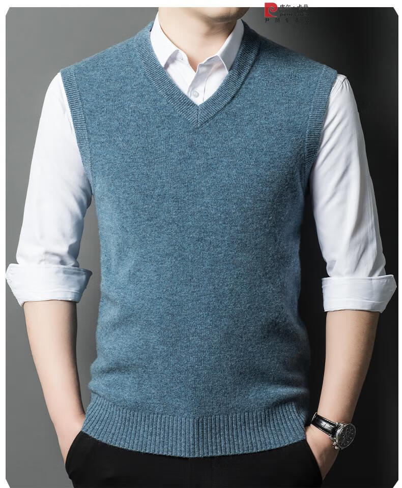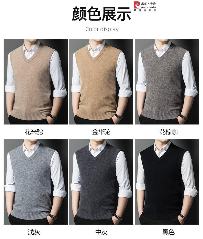 Pierre Cardin haut de gamme automne et hiver 100 laine col en V gilet pour hommes d'âge moyen affaires décontracté épais pull en laine couche de base chaude couleur verte 3310 4XL / 130 recommandé 185-205Jin Jin équivaut à 0,5 kg