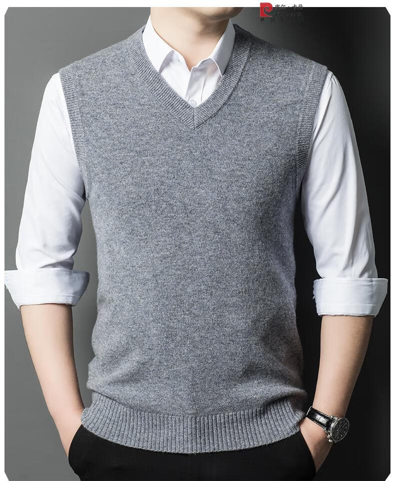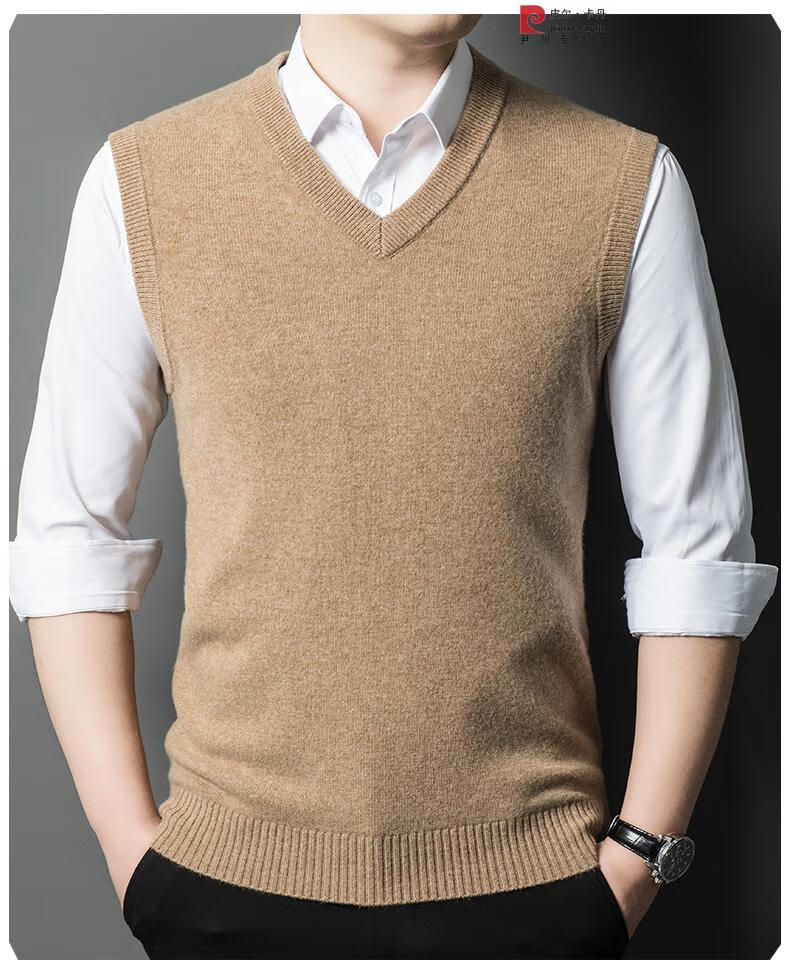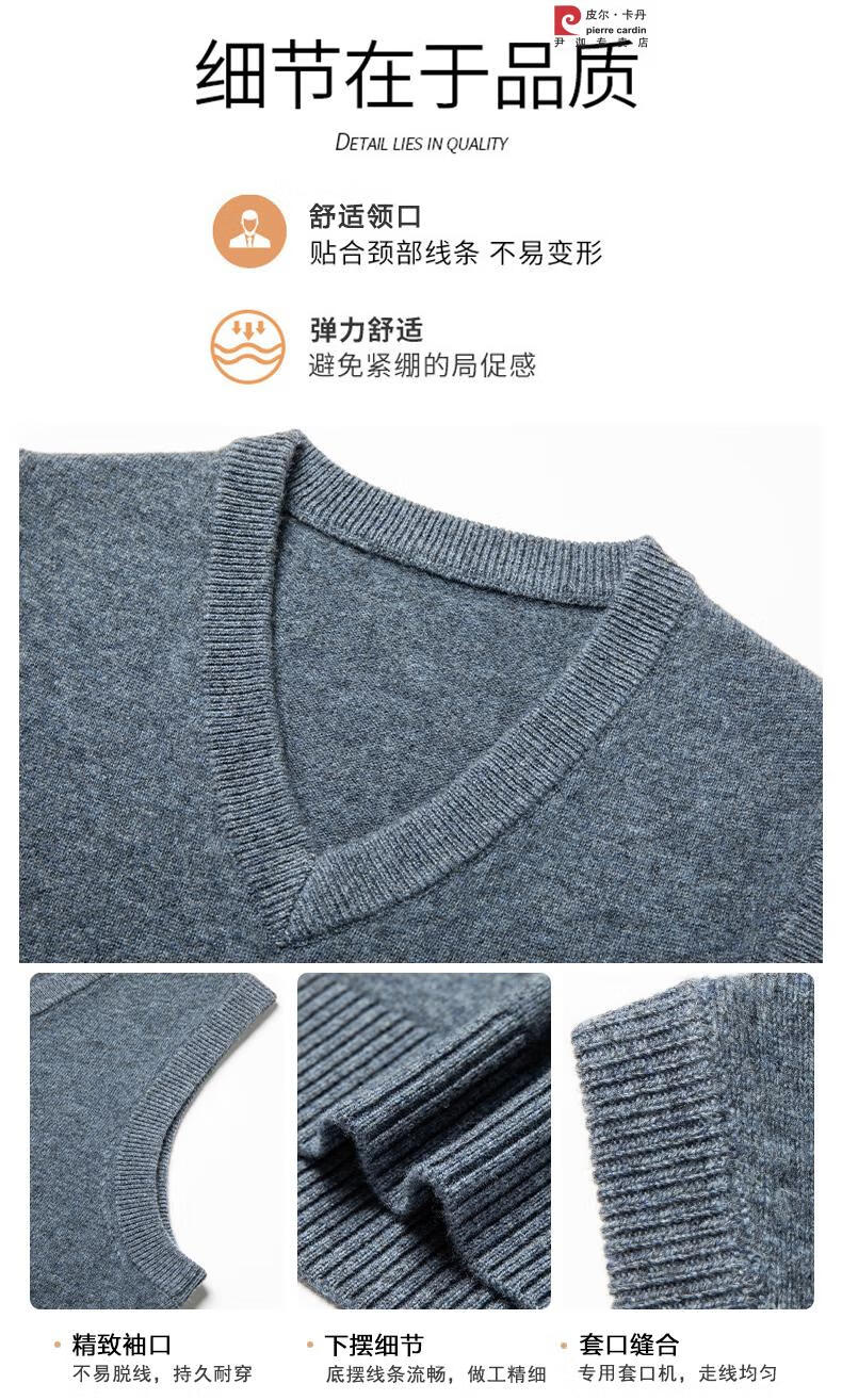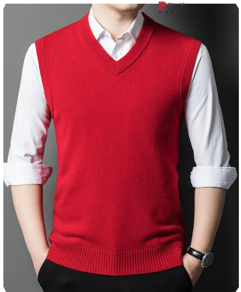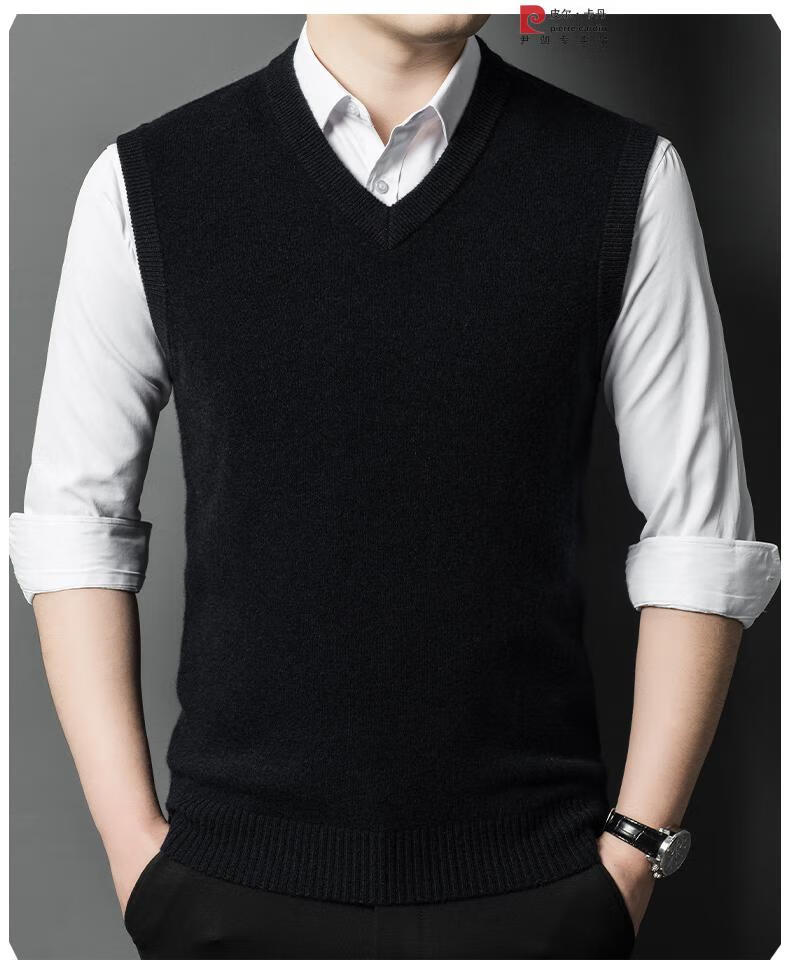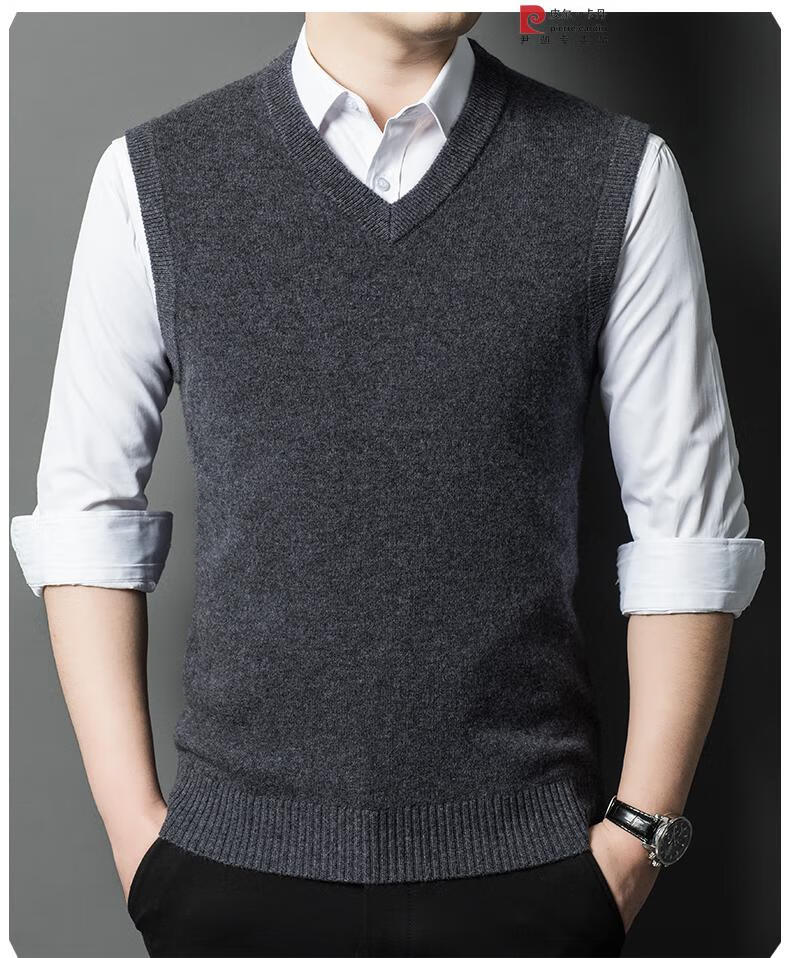 Pierre Cardin haut de gamme automne et hiver 100 laine col en V gilet pour hommes d'âge moyen affaires décontracté épais pull en laine couche de base chaude couleur verte 3310 4XL / 130 recommandé 185-205Jin Jin équivaut à 0,5 kg