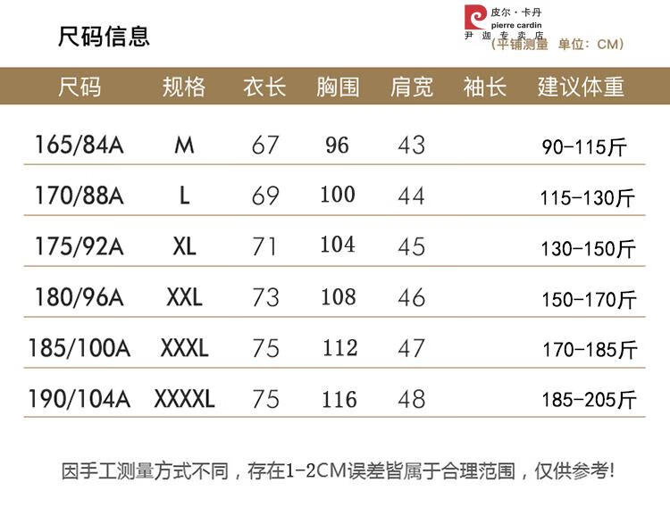China (cm) 160-165/84-86 165-170 / 88-90 167-172 / 92-96 168-173 / 98-102 170-176 / 106-110