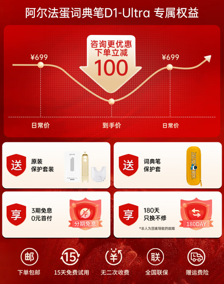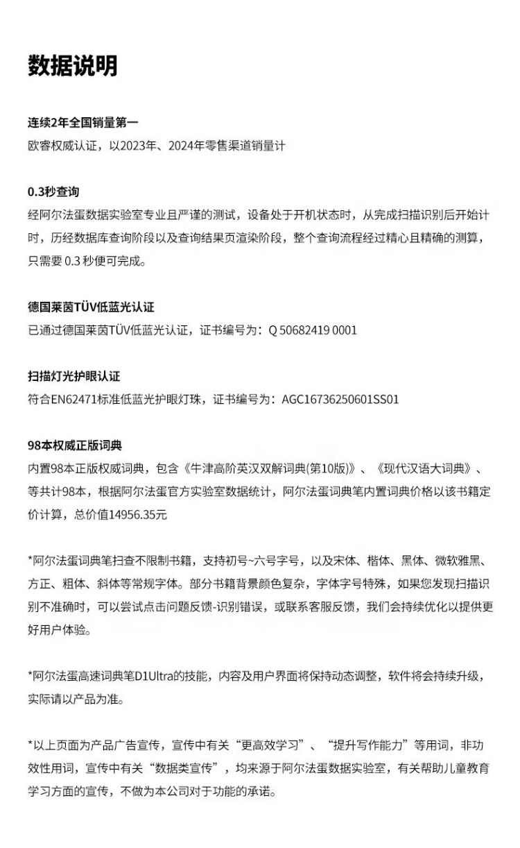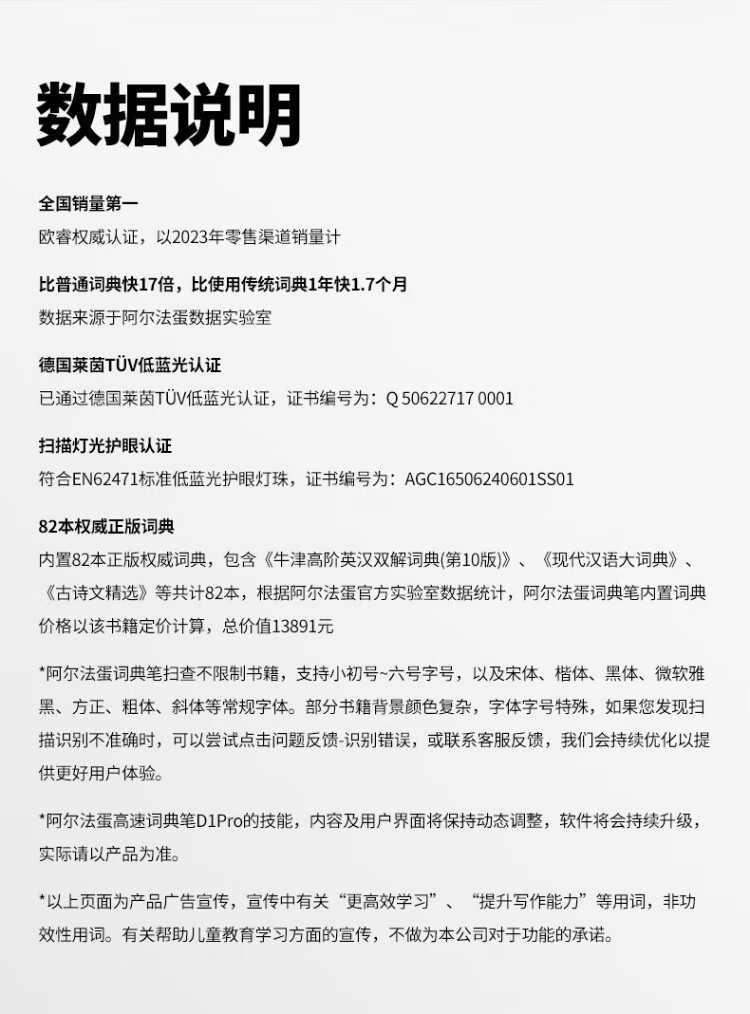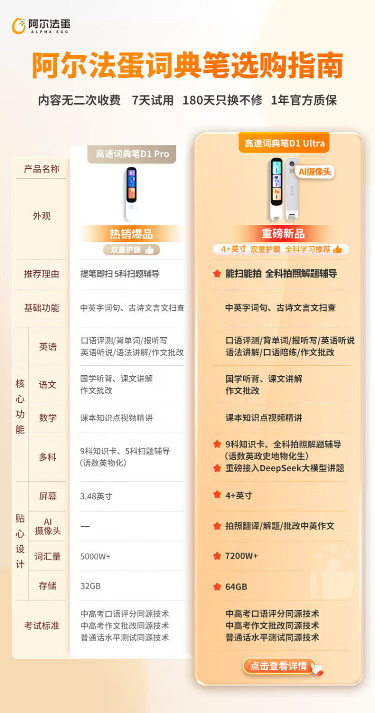 Alpha Egg Dictionary Pen D1Pro/D1Ultra/D1s/D1 English Reading Pen Translation Pen Learning Pen Elementary School Junior High School High School Synchronization Electronic Dictionary Scanner Pen Word Pen D1s Chinese-English Learning Upgrade 32GB Consultation Instant Discount