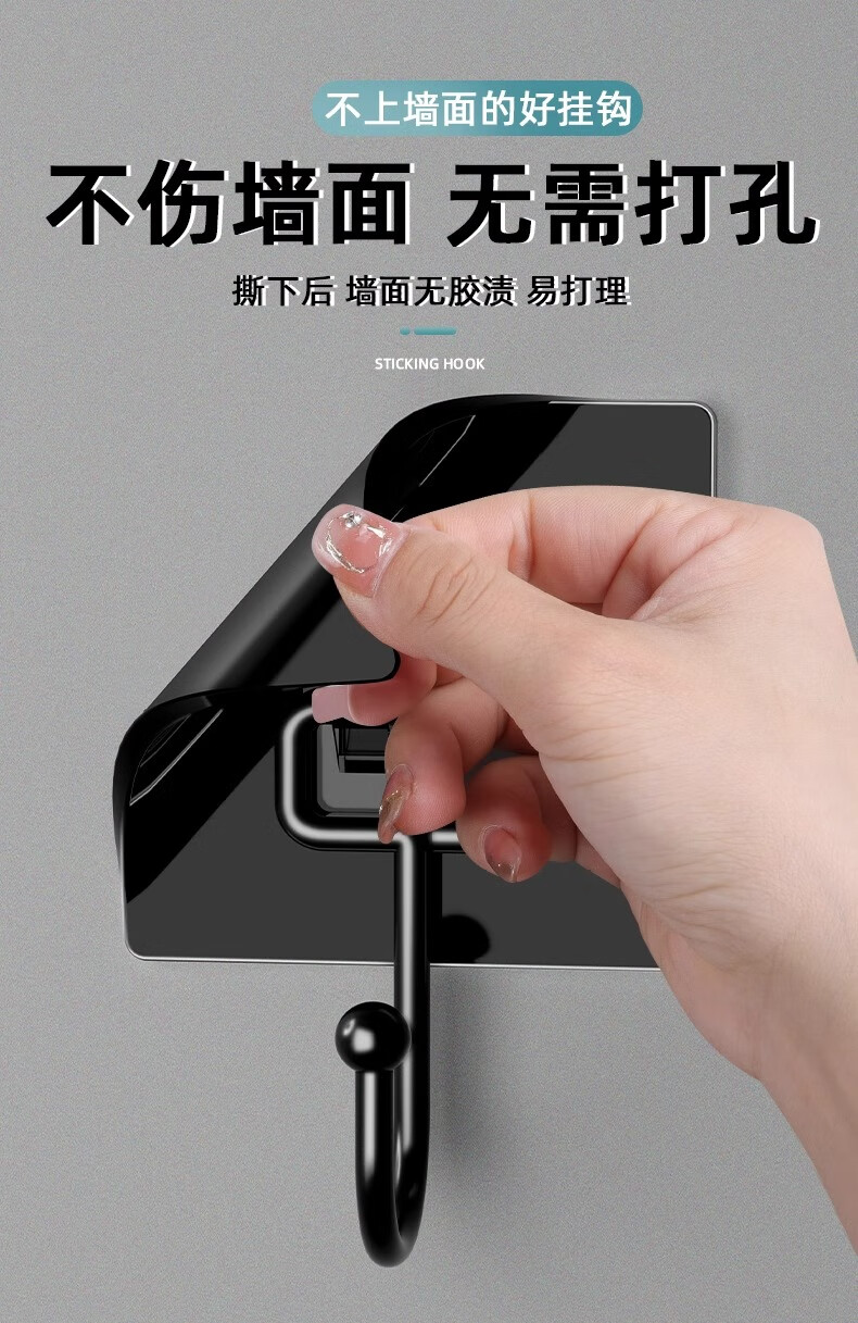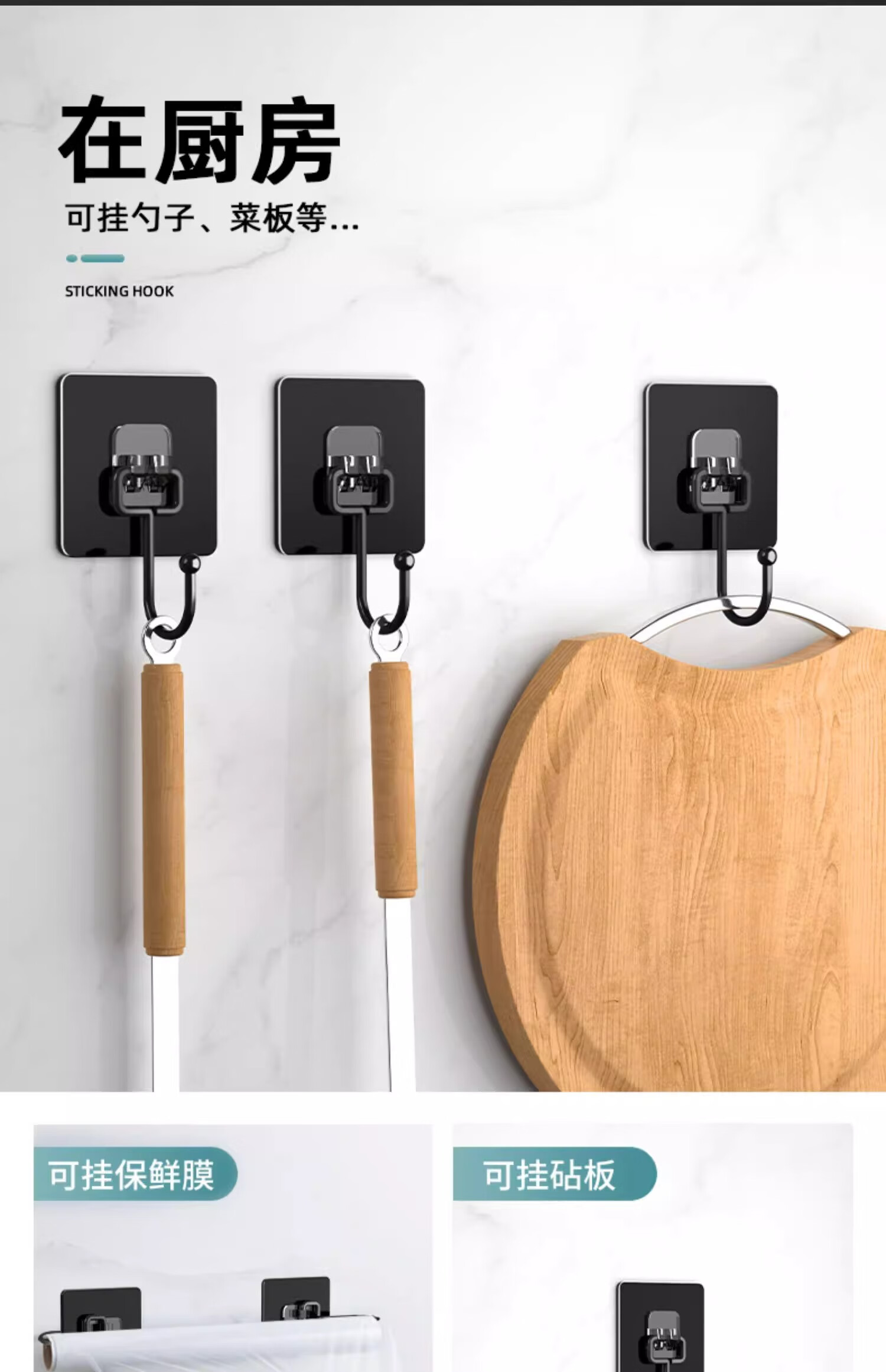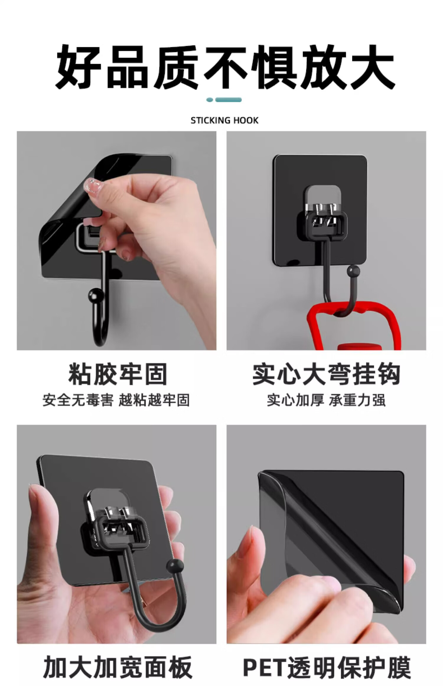 Mixed American disposable strong adhesive wall stickers, load-bearing, traceless hooks, no punching hooks, sticky hooks, large black hooks, 10 pieces