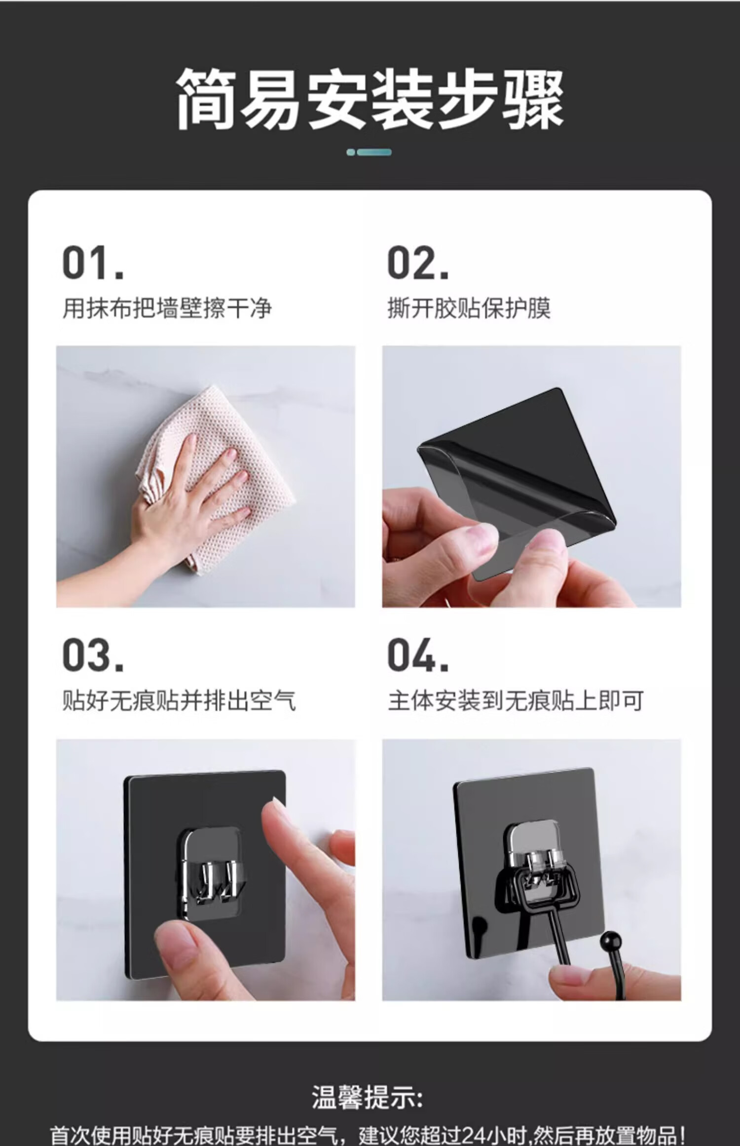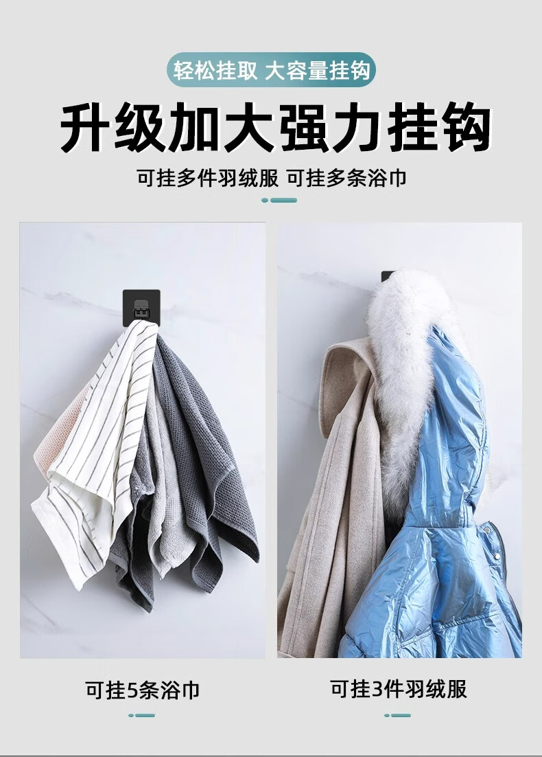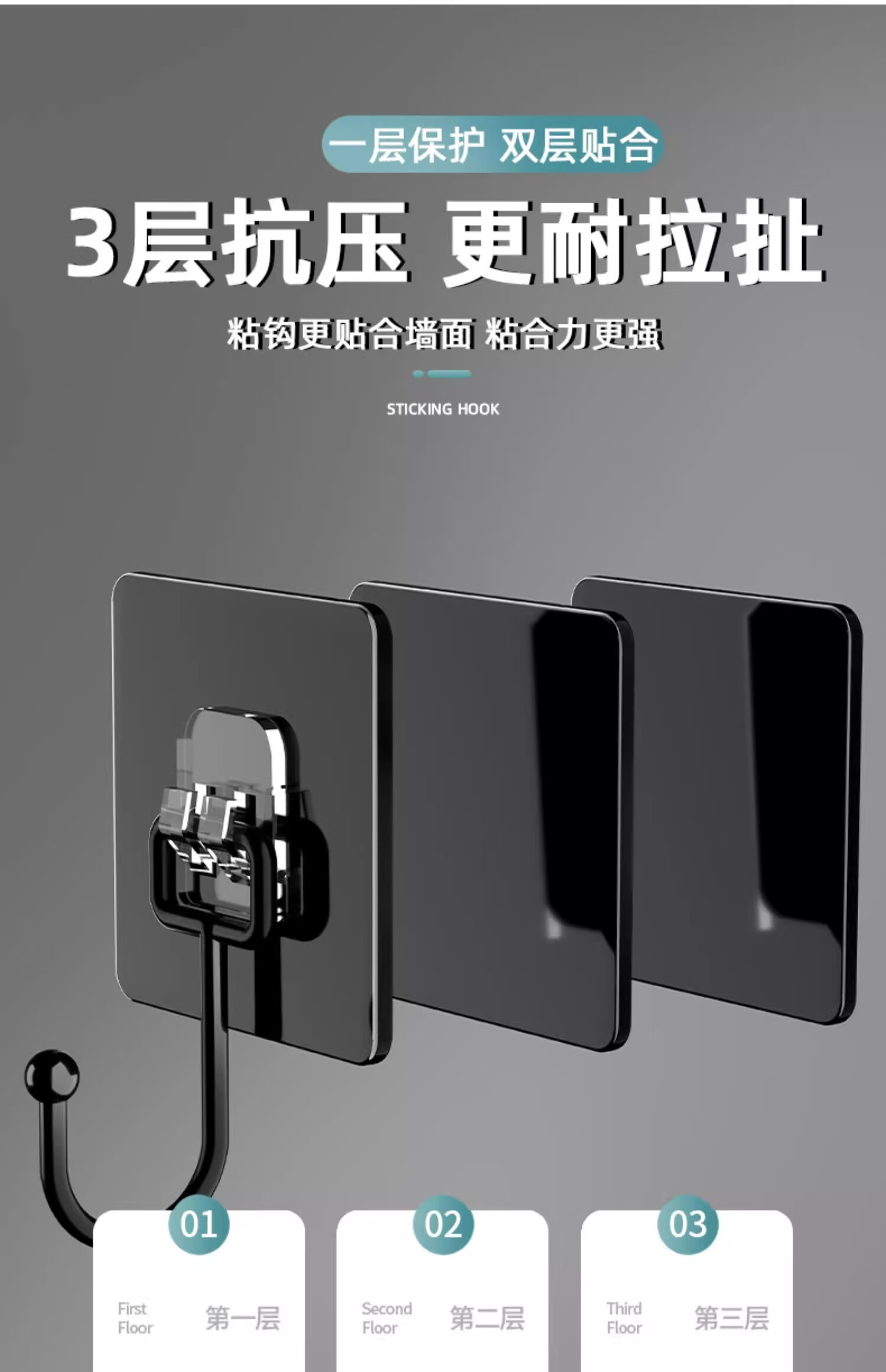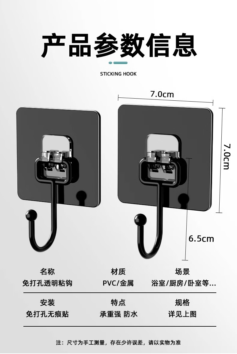 Mixed American disposable strong adhesive wall stickers, load-bearing, traceless hooks, no punching hooks, sticky hooks, large black hooks, 10 pieces