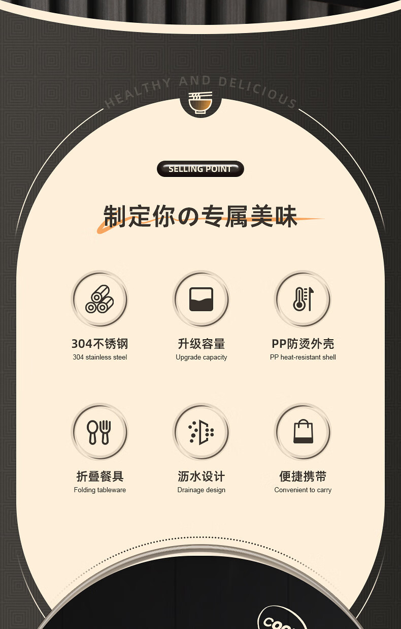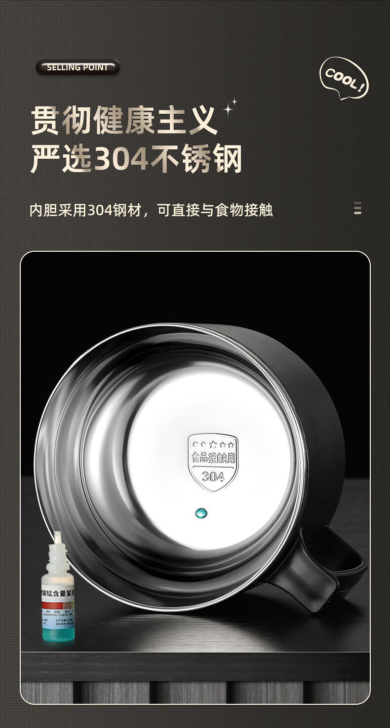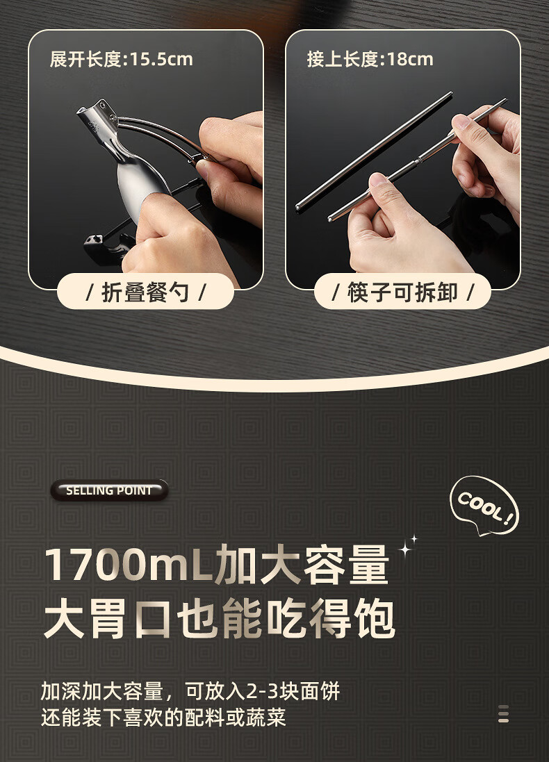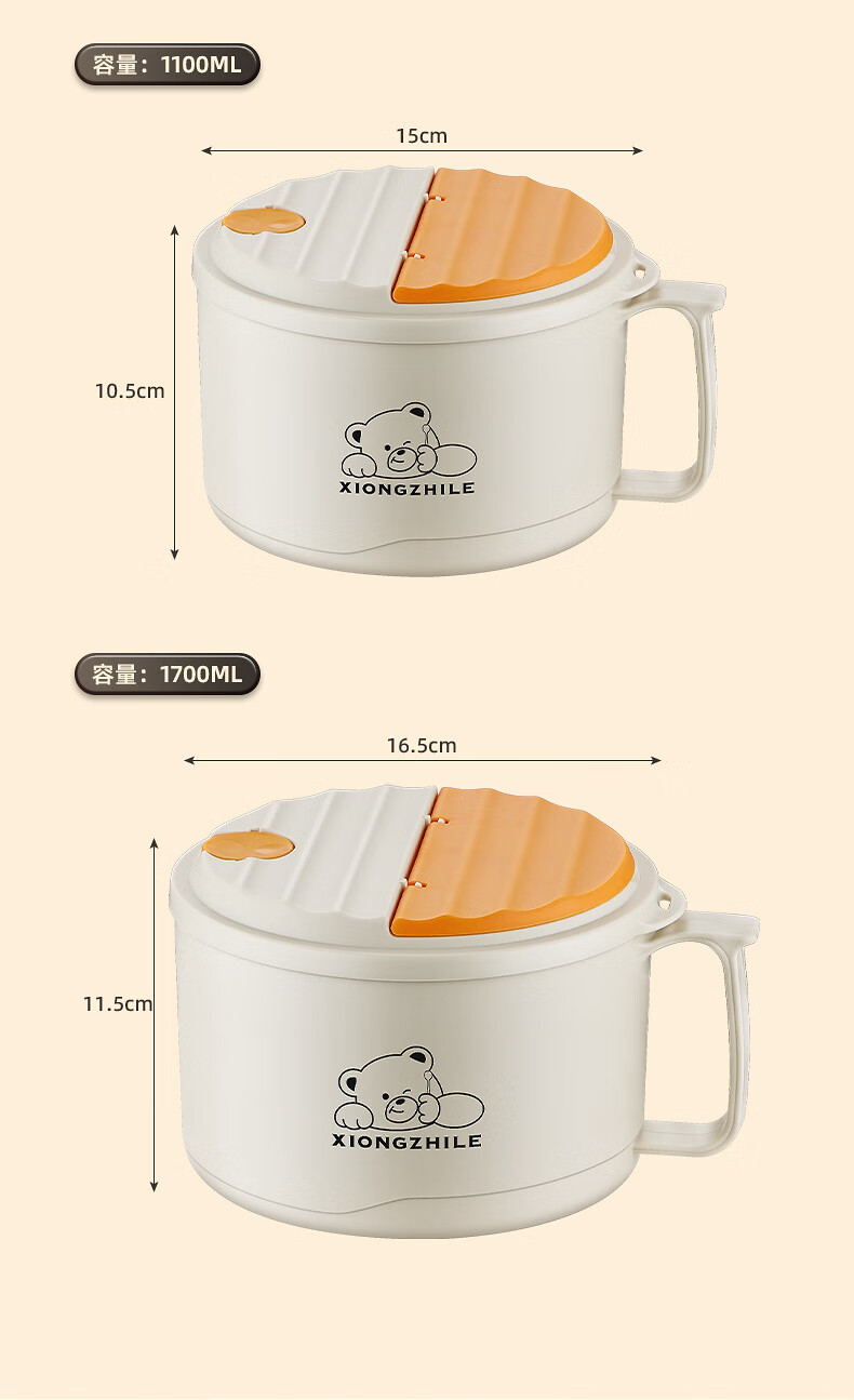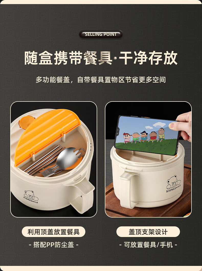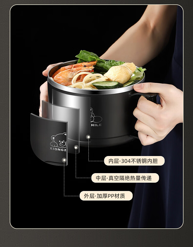 Shumi ins style 304 stainless steel instant noodle bowl with lid, drainable, student lunch box, dormitory large capacity instant noodle bowl, easy to wash 304 JG black 1700 with lid, with stainless steel folding tableware