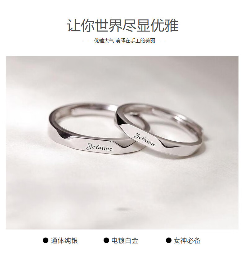 Pair of rings, couple rings, female niche design rings, a pair of Valentine's Day gifts for boyfriend and girlfriend, a pair of French I love you rings, the opening is adjustable