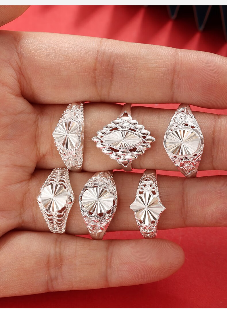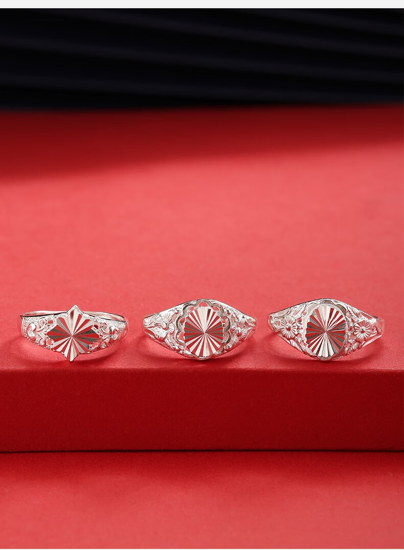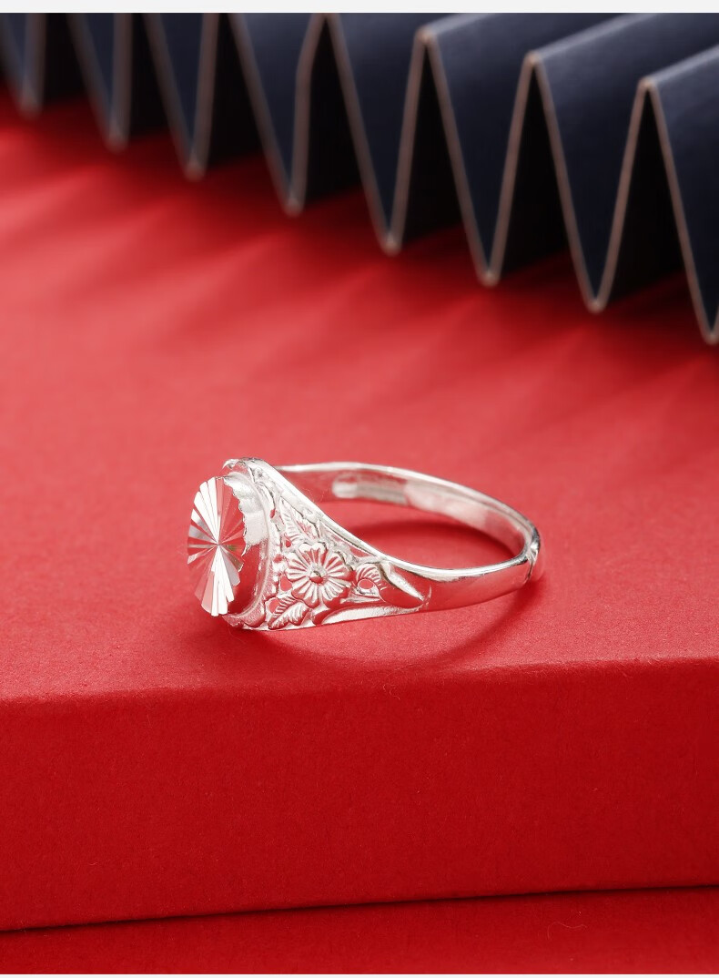 Shantou Lincun S990 solid silver ring, flower ring, heart-shaped women's model, national trend, ancient silver, gift to girlfriend, mother, silver ring, love light ring, opening adjustable