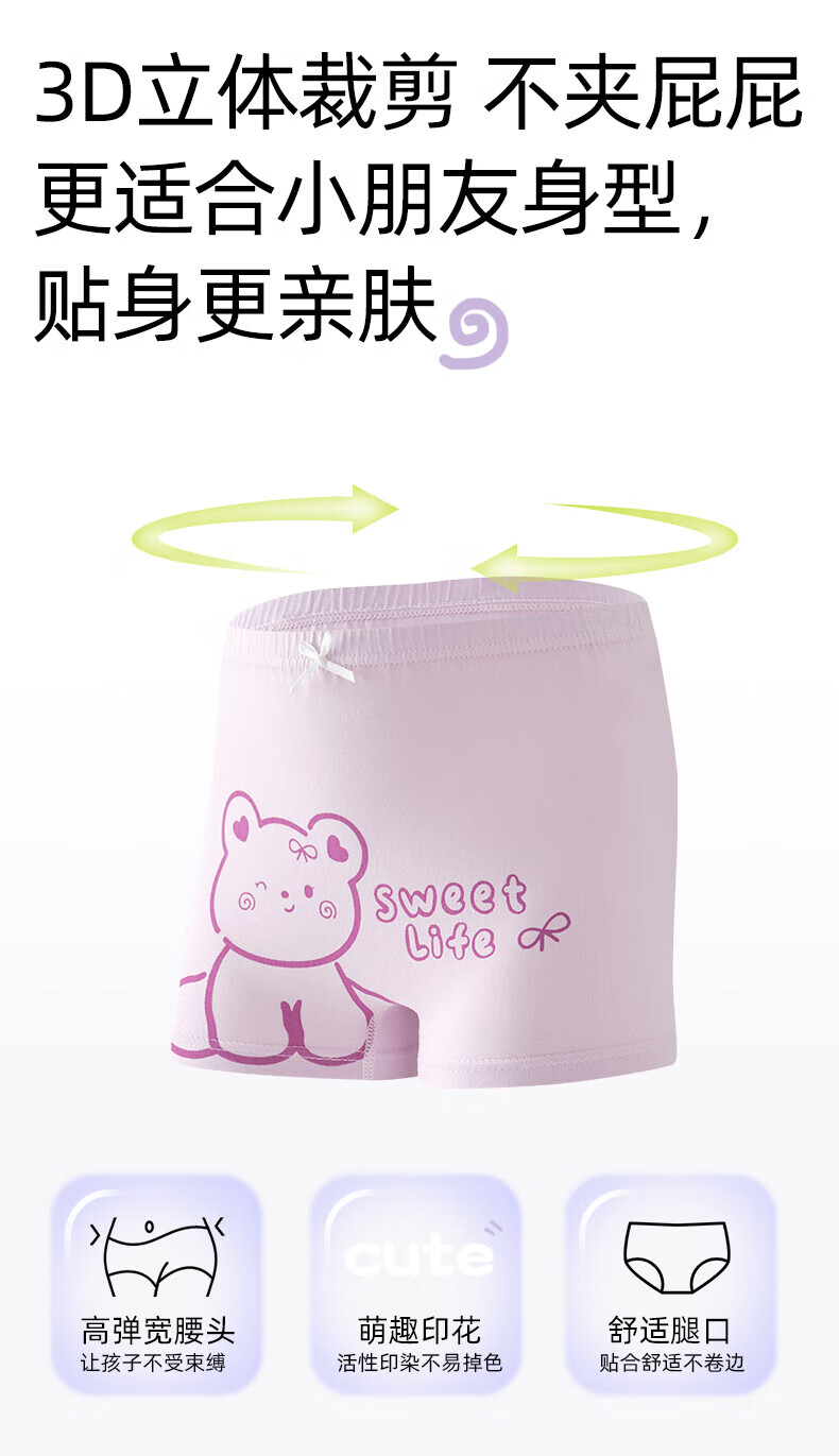 MiiOW children's underwear 1 girls boxer pure cotton 3 baby 5 cotton 6 development period 9-12 years old girls 100% cotton shorts 15 pure cotton comfortable 10A antibacterial 06 6 pieces 140 (2XL) recommended weight 48-60Jin Jin equals 0.5 kg