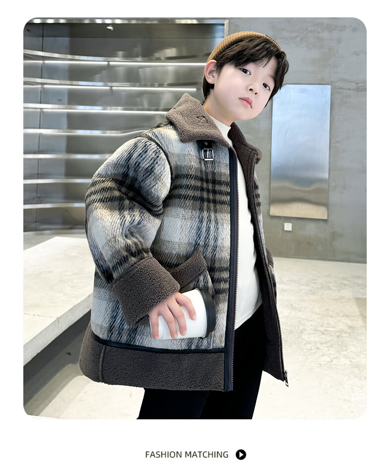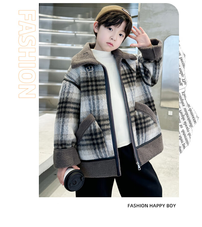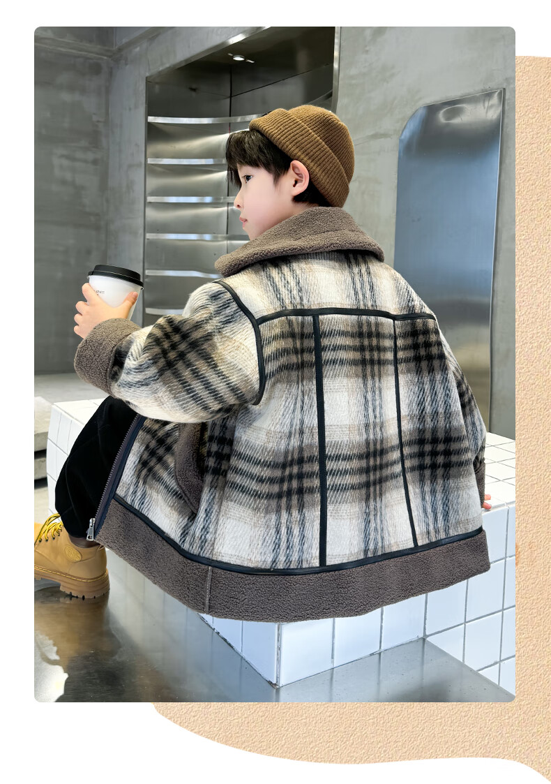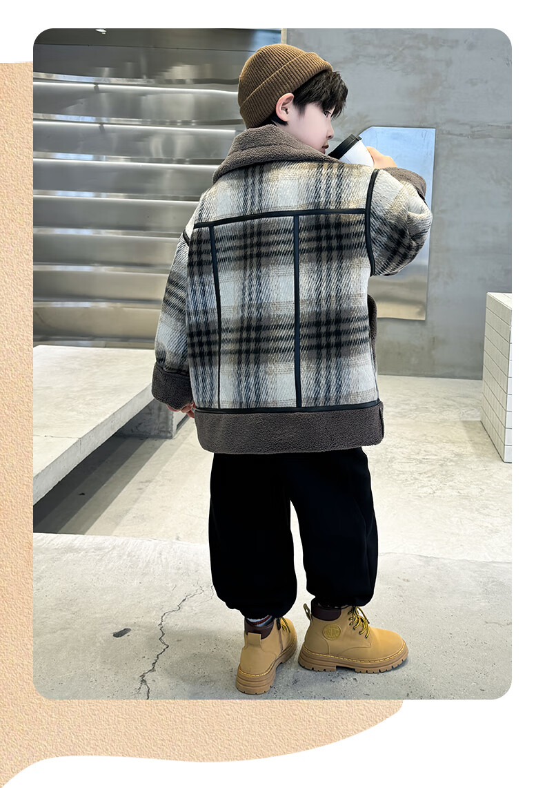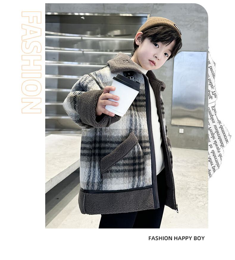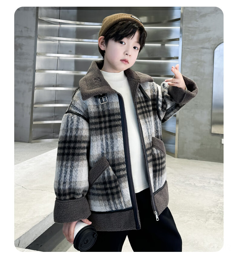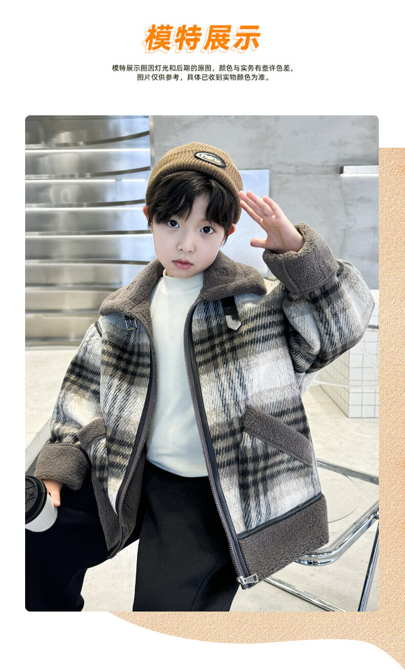 Monkey Brother Boy's Velvet Jacket Autumn and Winter Clothing Medium and Large Children's Western Style Mid-Length Woolen Coat Boys' Winter Clothing Thickened Top Picture Color 150