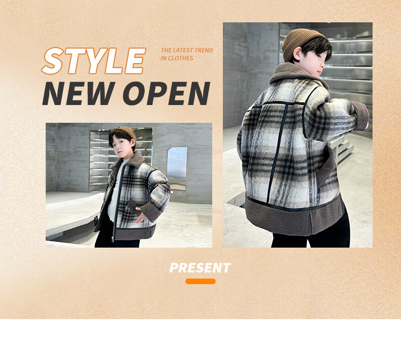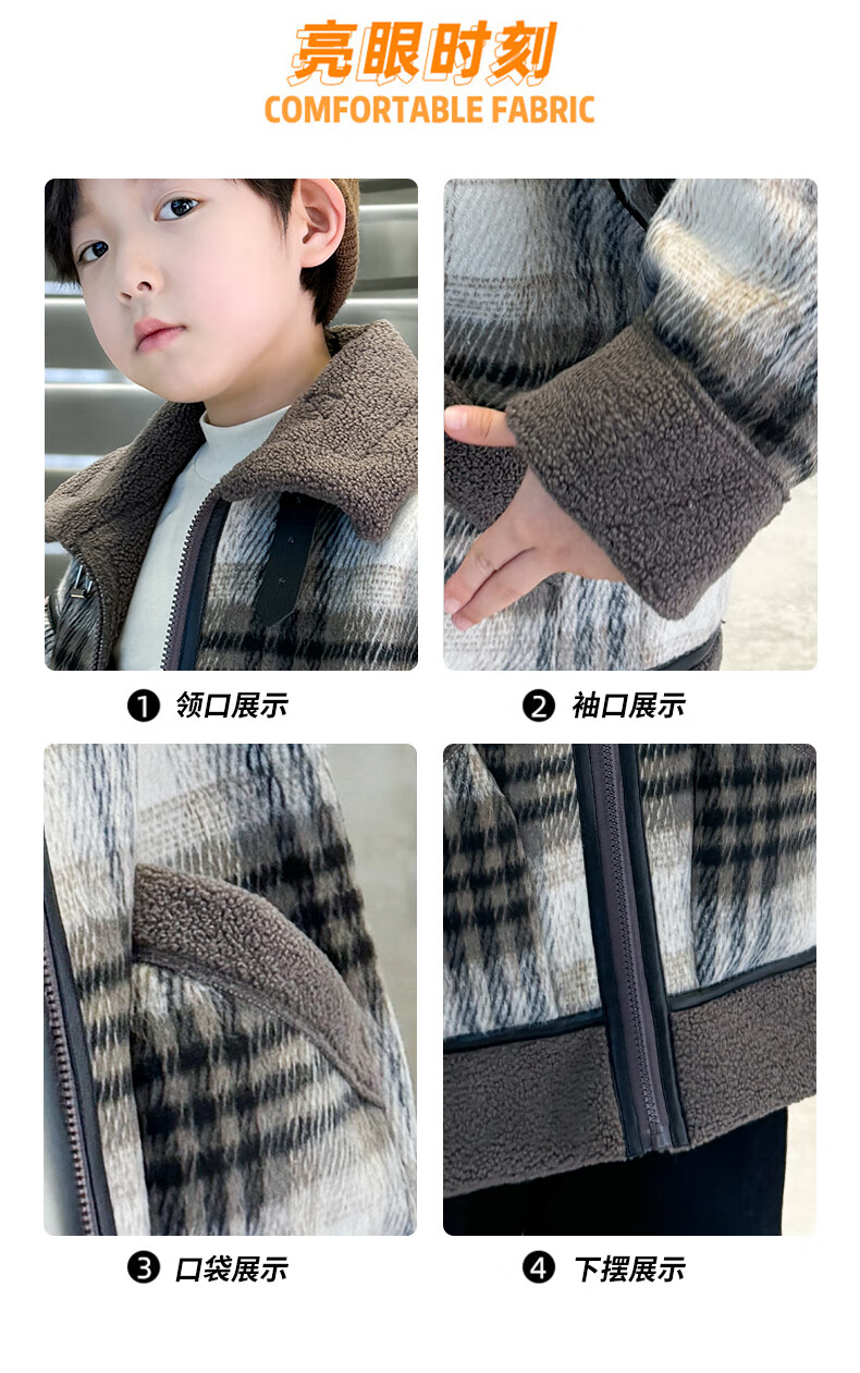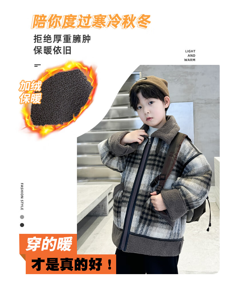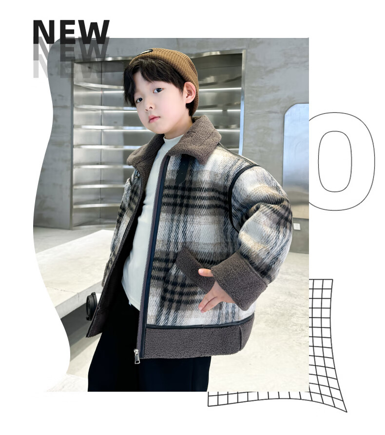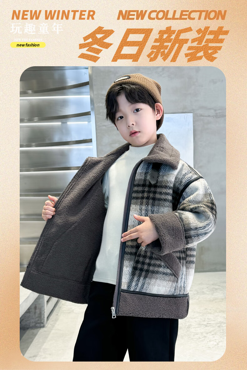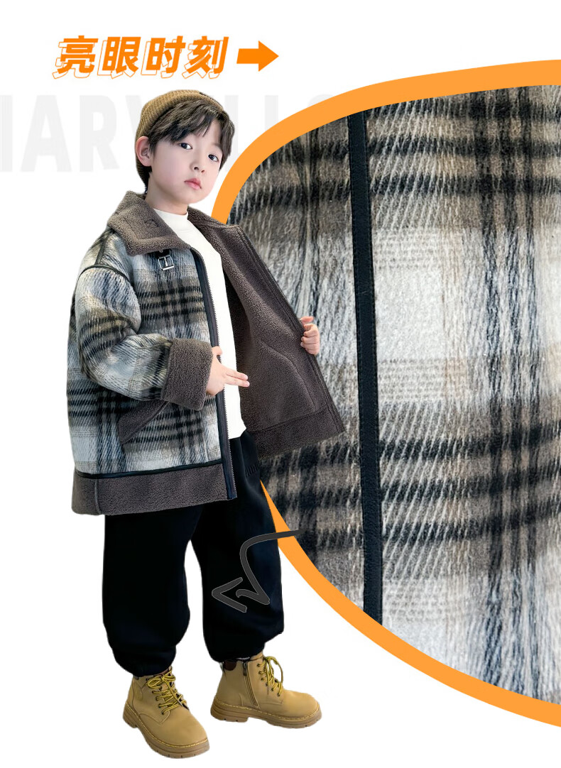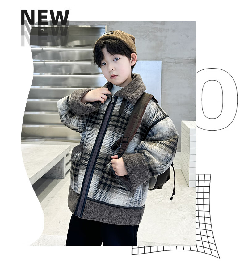 Monkey Brother Boy's Velvet Jacket Autumn and Winter Clothing Medium and Large Children's Western Style Mid-Length Woolen Coat Boys' Winter Clothing Thickened Top Picture Color 150
