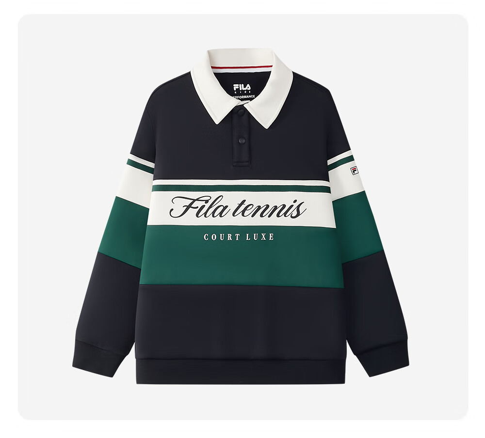 FILA Antibacterial Children's Clothing Tops 2025 Winter New Boys' Sports Pullover Sweatshirt RD Sapphire-NV 170