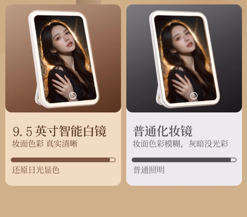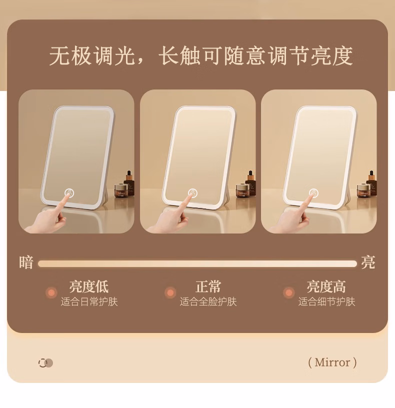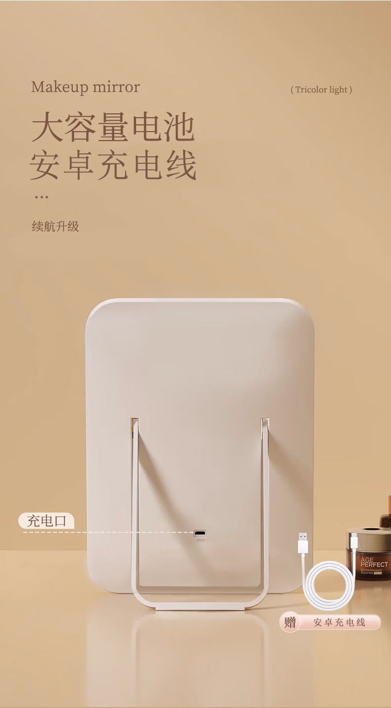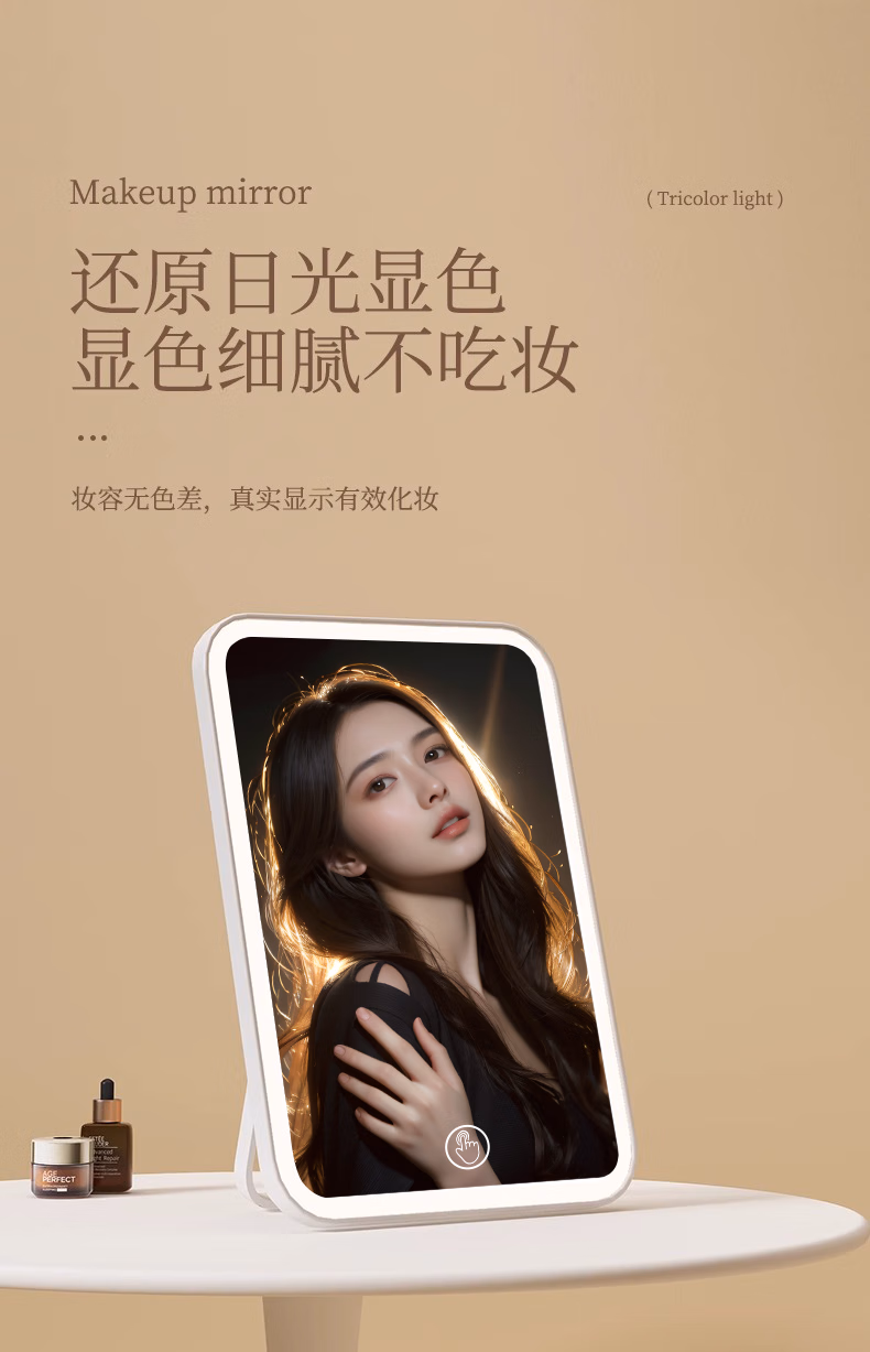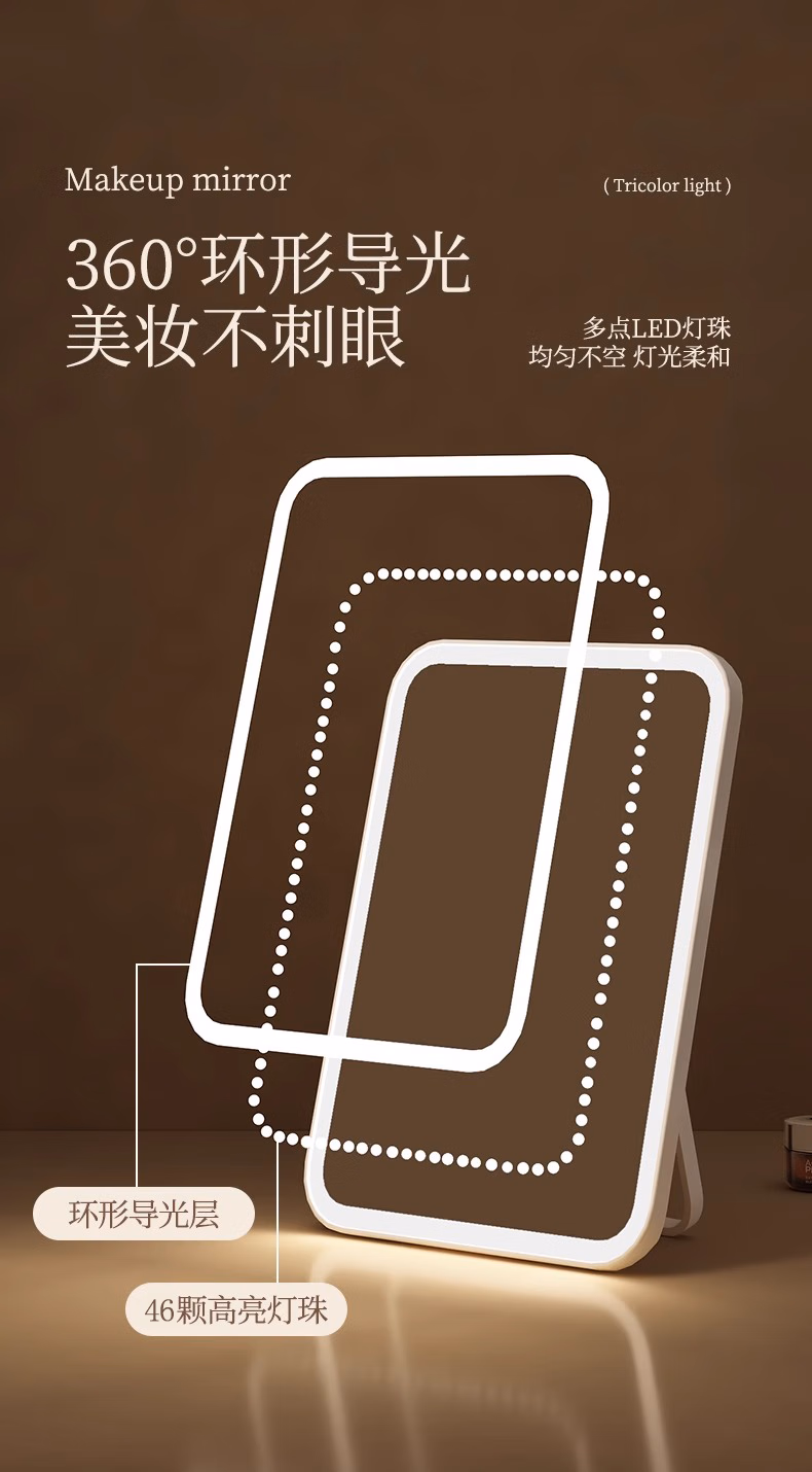 Meebordi makeup mirror with light LED beauty mirror folding portable three-color fill-in stepless brightening makeup mirror birthday gift girl smart beauty instrument 4K high-definition mirror three-tone lighting