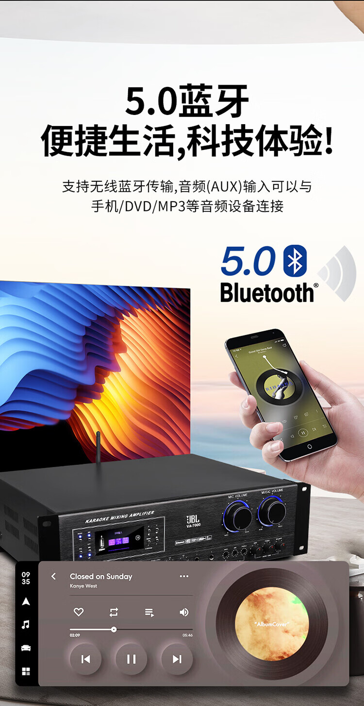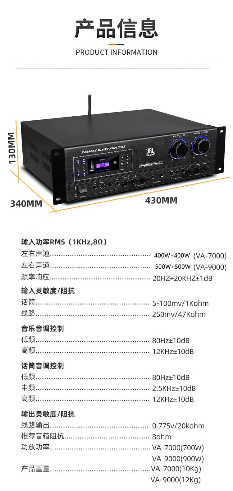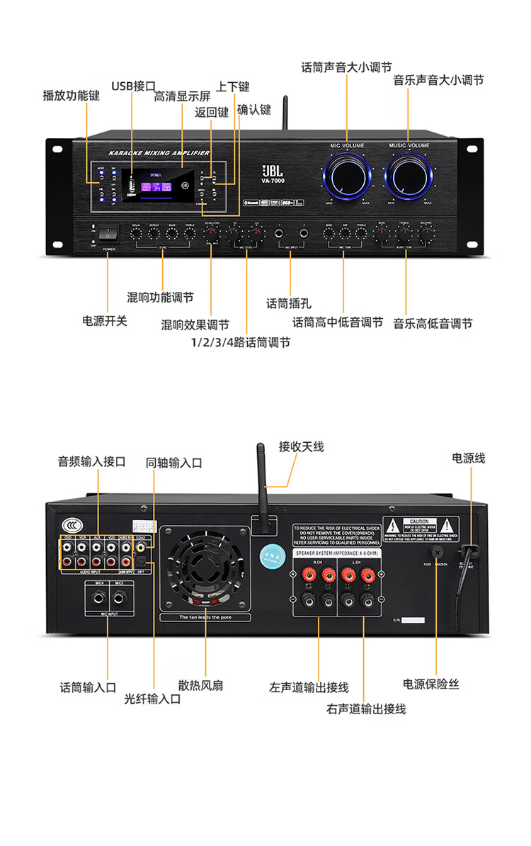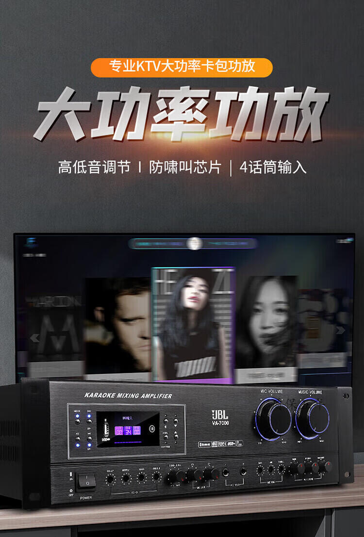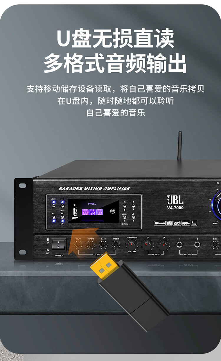 JBL professional card package amplifier anti-howling karaoke home KTV conference dance room high-power speaker set upgraded version VA-7000 800W