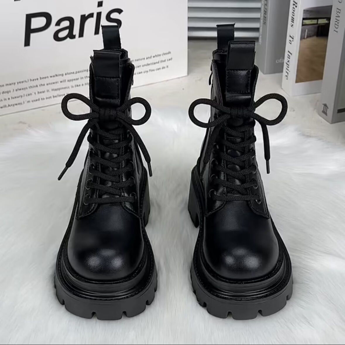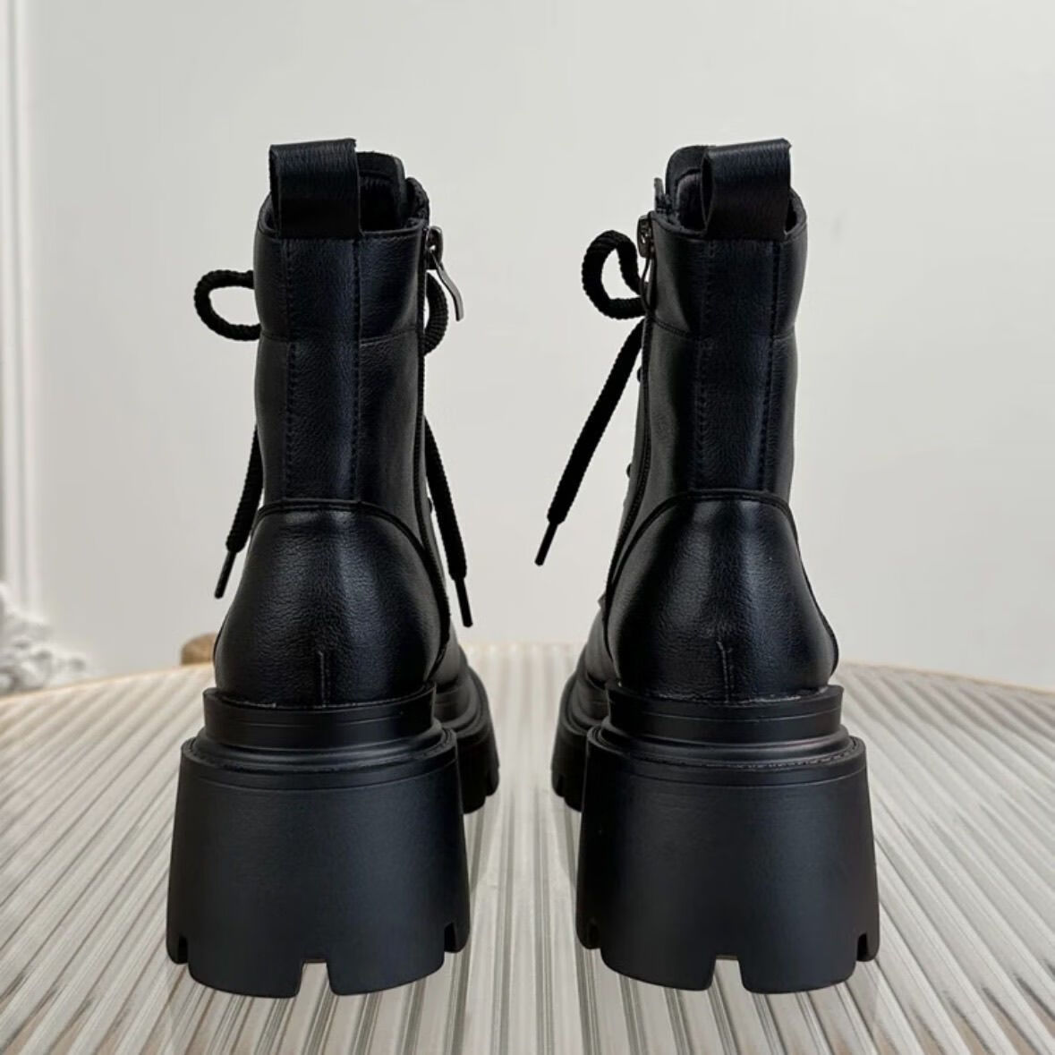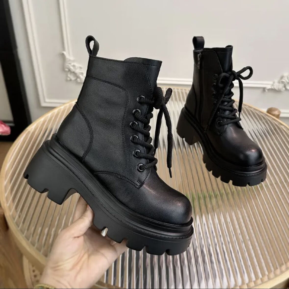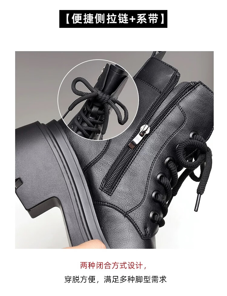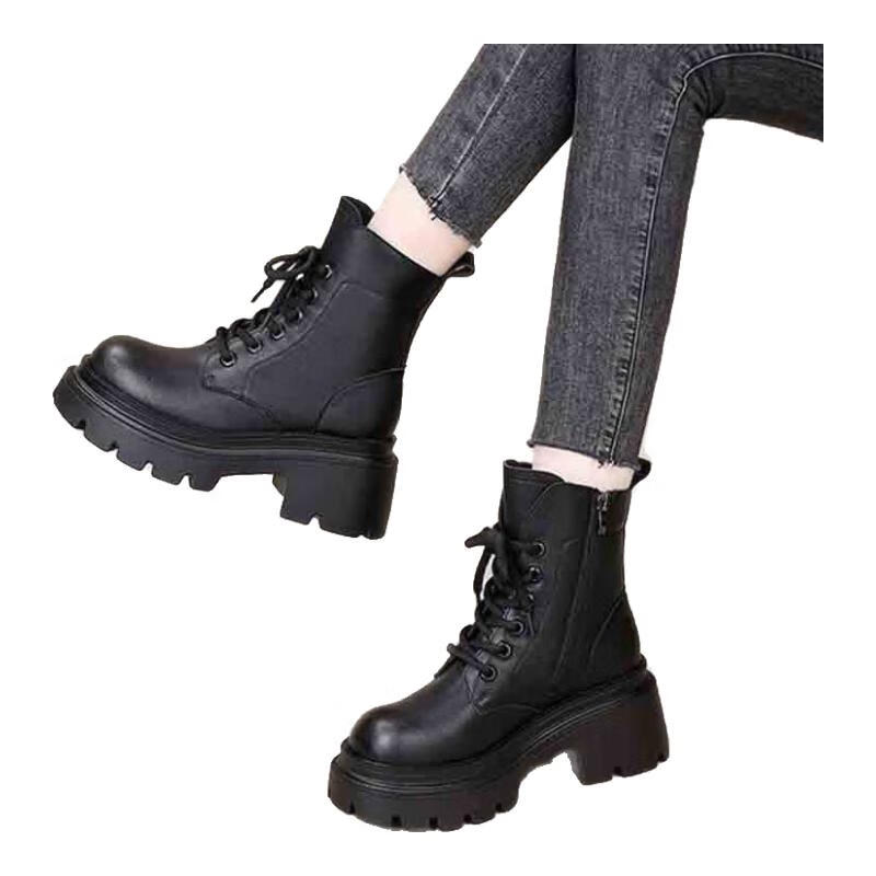 Woodpecker Leather Martin Boots Women's 2025 Autumn and Winter New British Style Versatile Small Leather Shoes Thick Sole Heightening Slim Short Boots Women Black 37 (235mm)