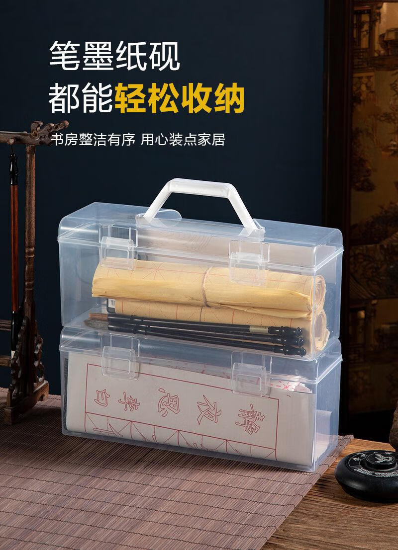 Qiao Bo Lai transparent plastic fishing gear brush storage box thickened suitcase bag calligraphy tools household dust-proof storage box small portable simple style