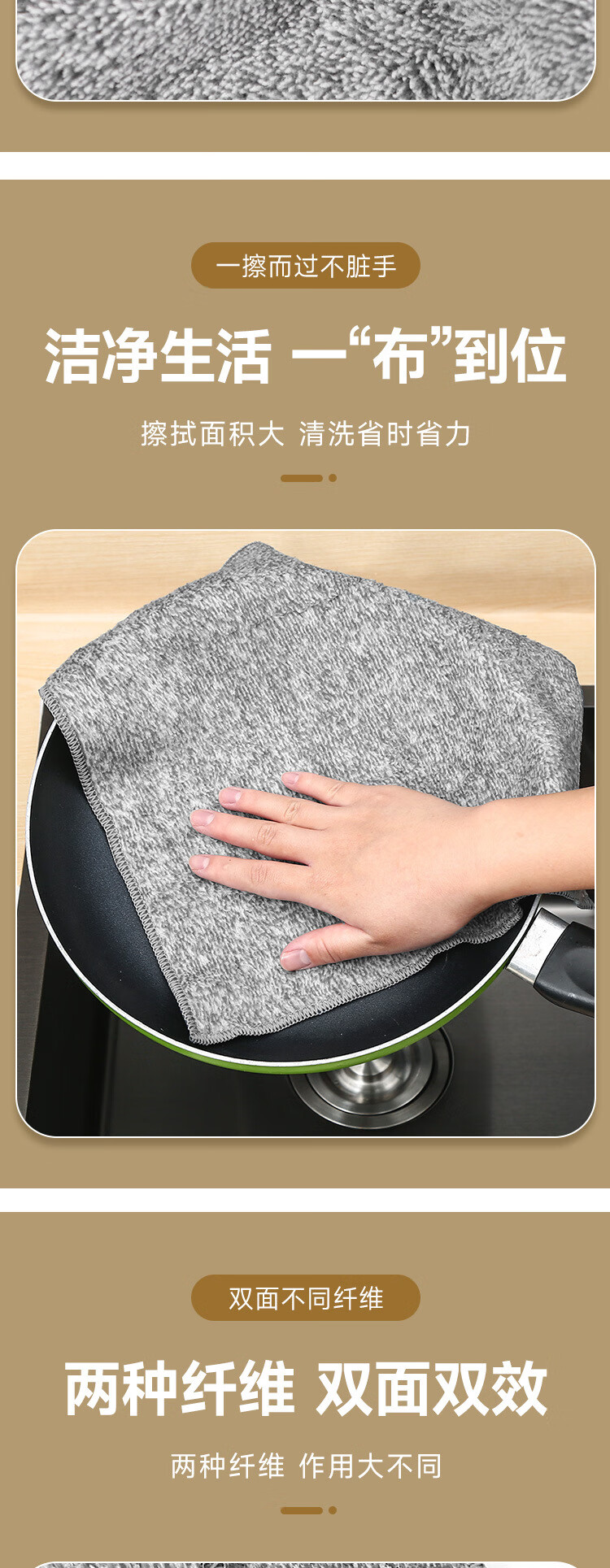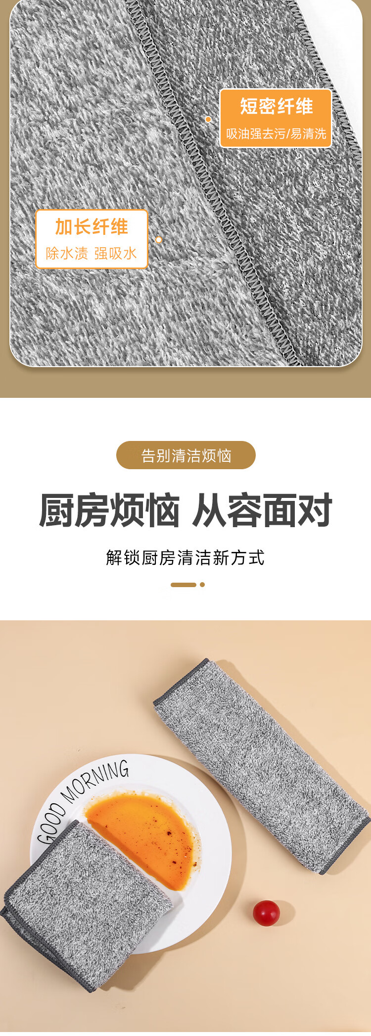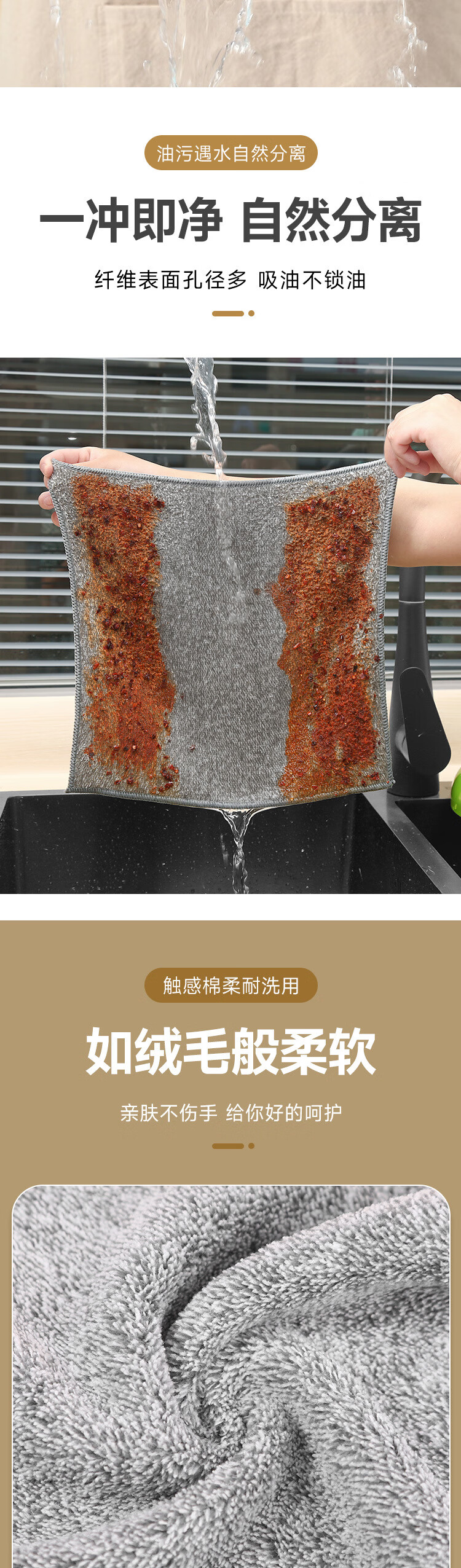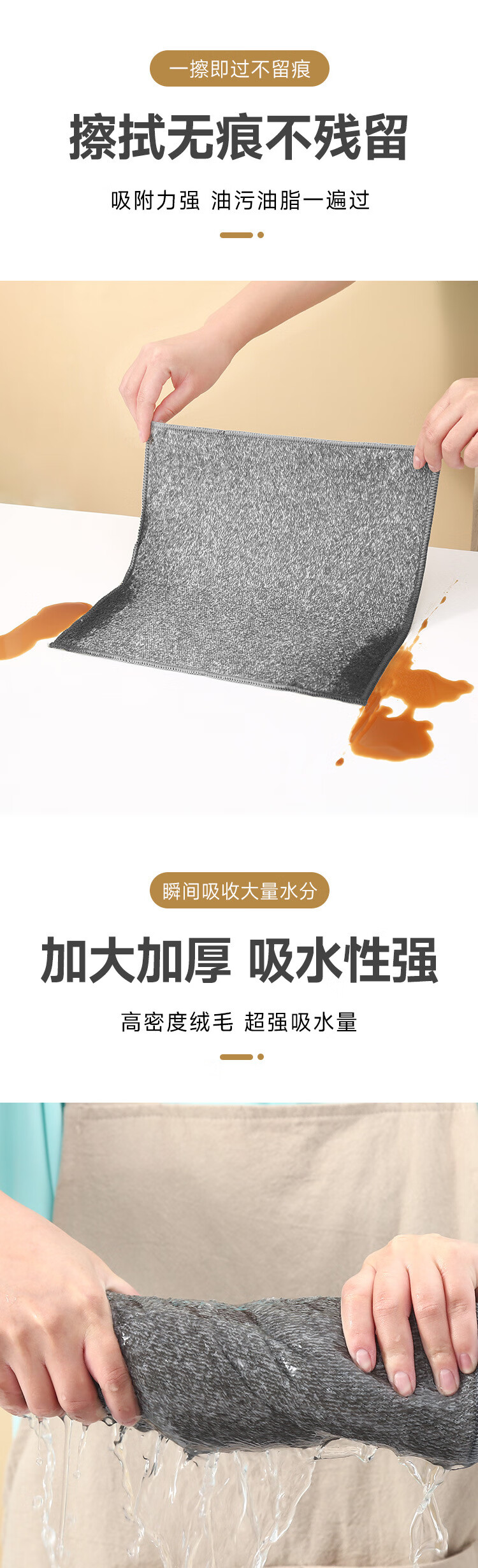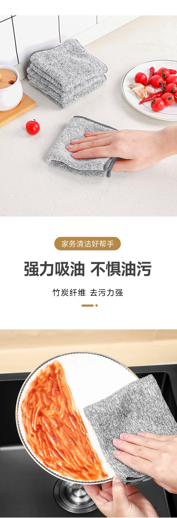 Thickened bamboo charcoal dishcloth, housework, soft fiber dishcloth, kitchen supplies, water-absorbent and oil-removing rag, seamed edge 30*30cm