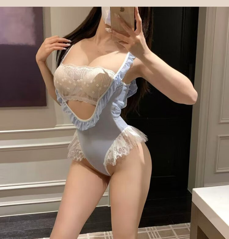 Sexy lingerie, sexy leaky breast suspender, maid nightgown, lace mood pajamas, arm-wrapped temptation, girl uniform, maid outfit, one size fits all