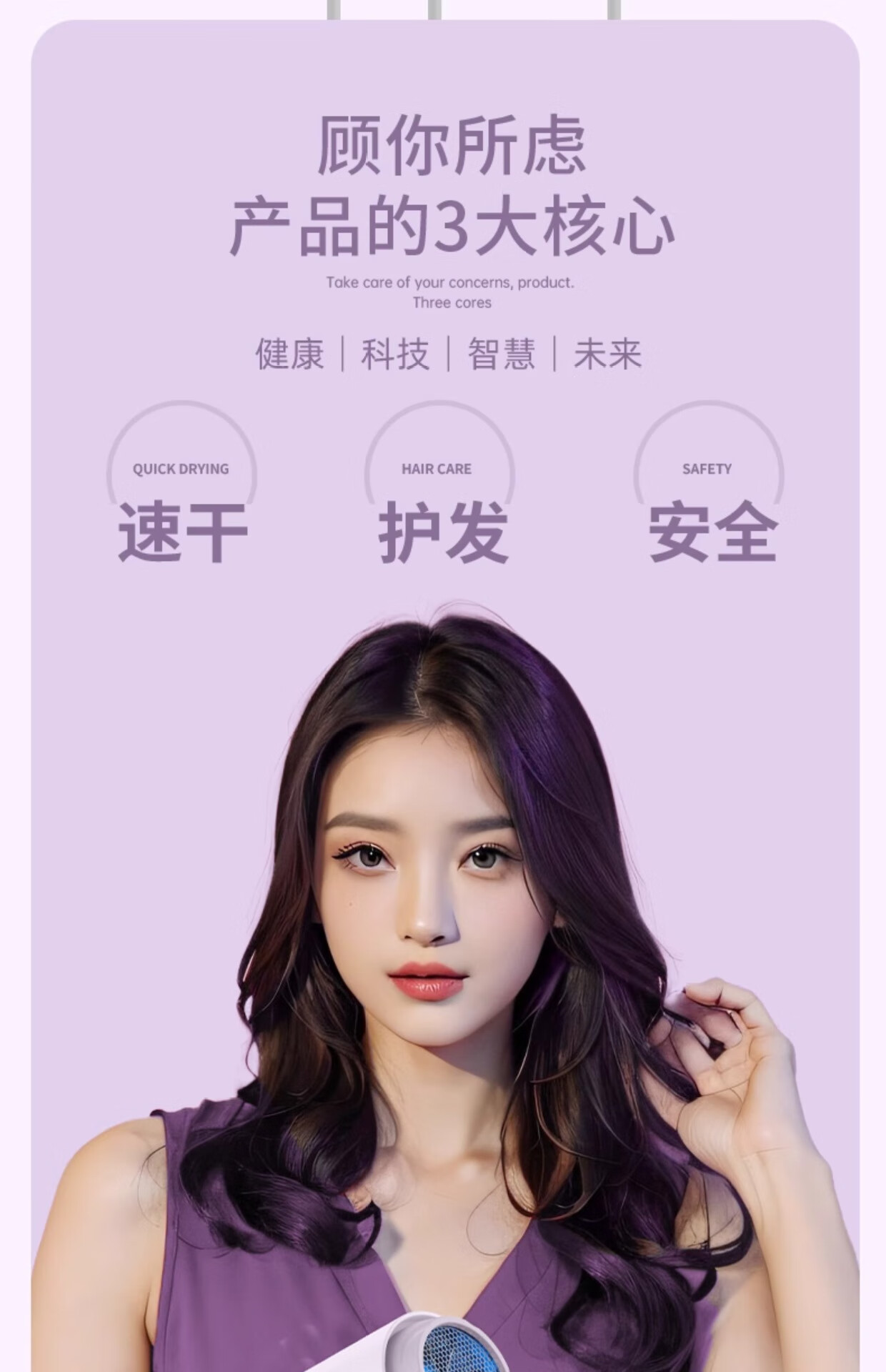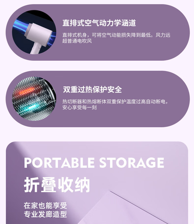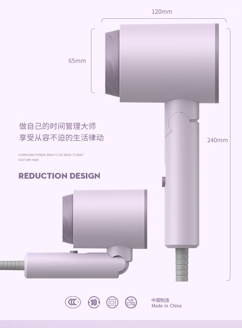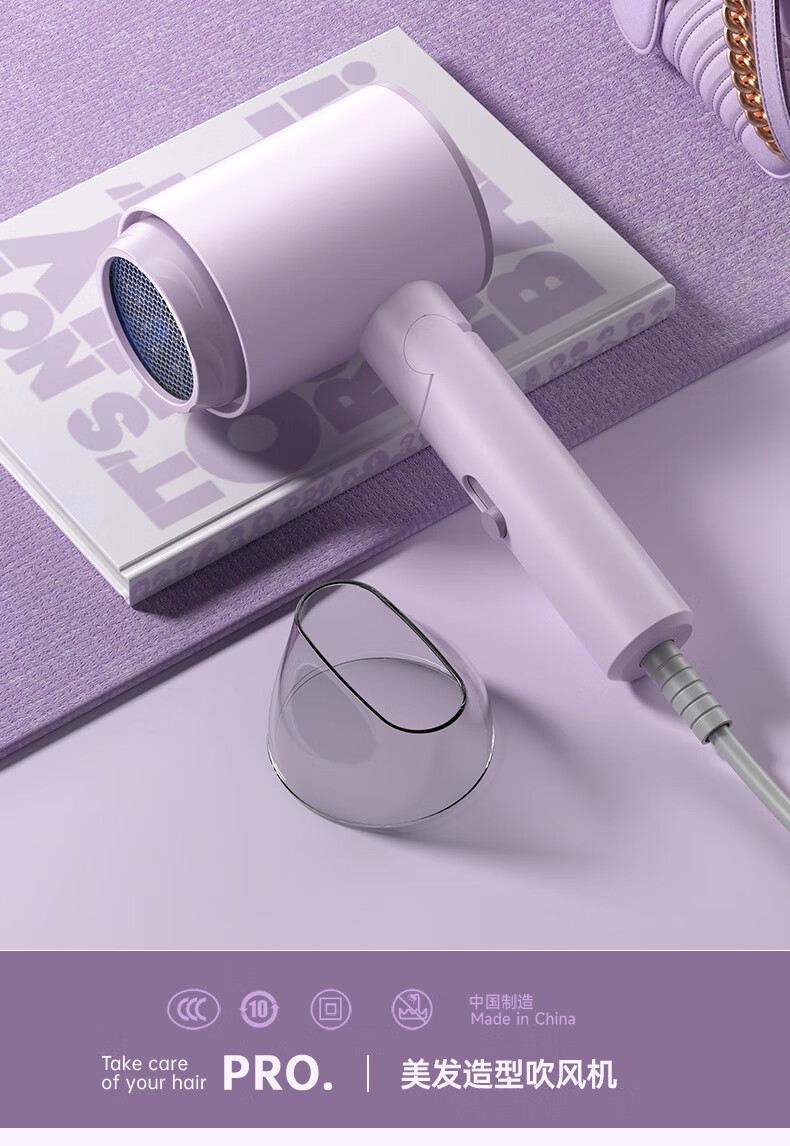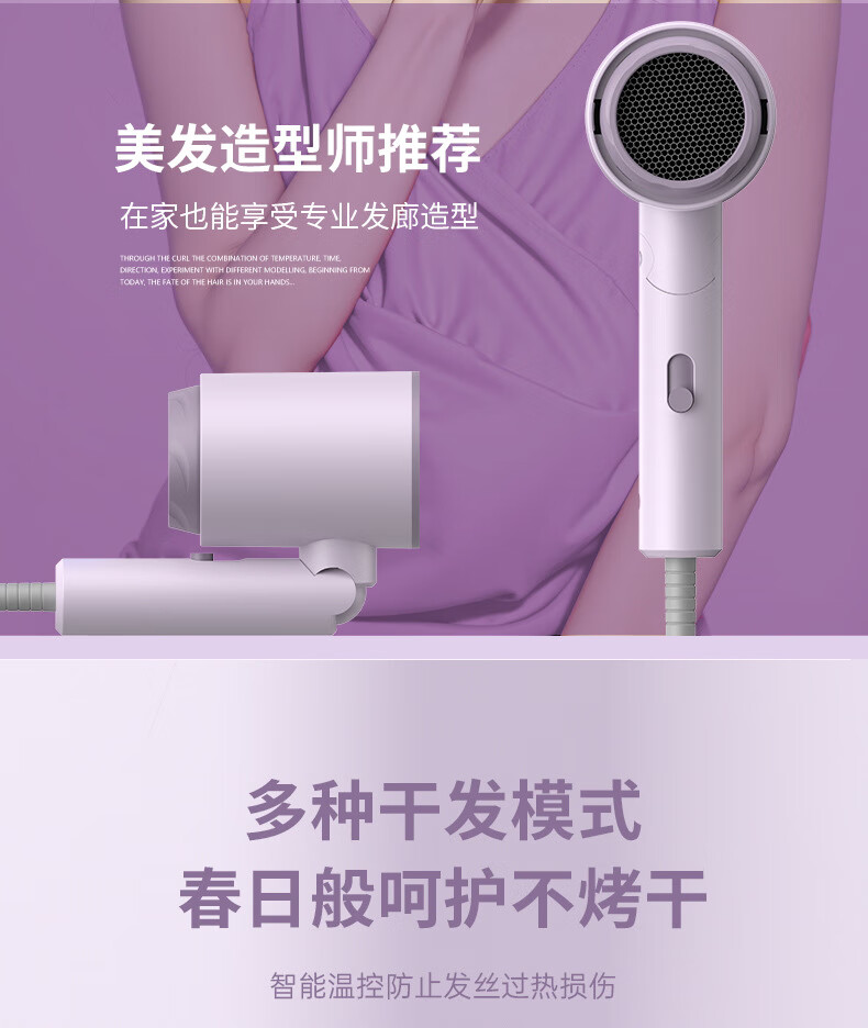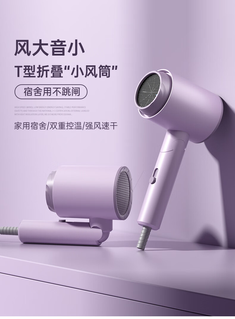 Xiaomi white hair dryer for student dormitories 800w hair care low power household hair dryer foldable hair dryer quick drying lavender 800W dormitory-specific model