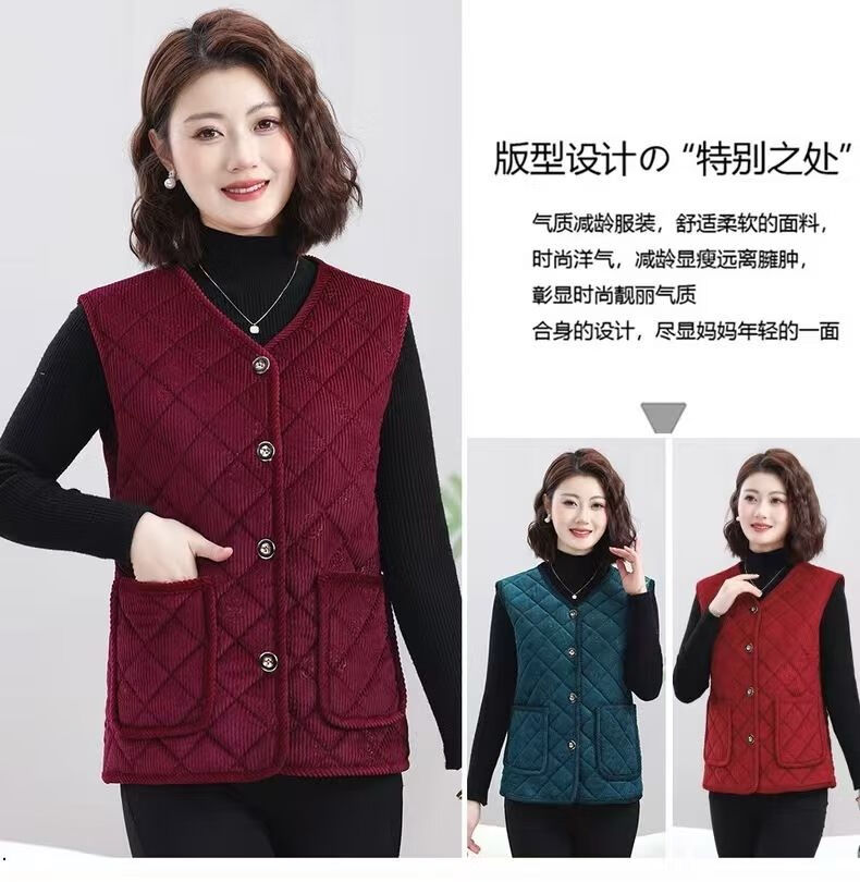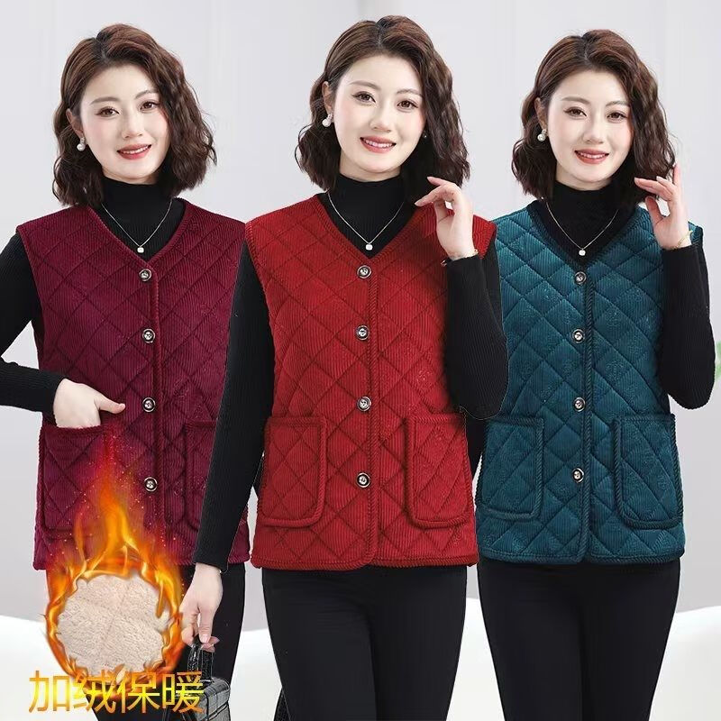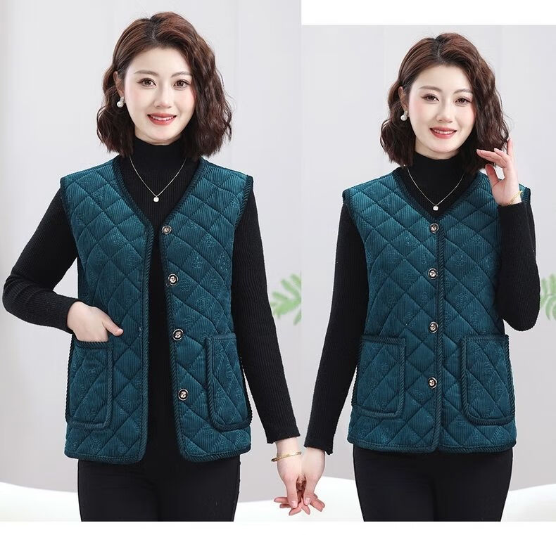 Mother's autumn and winter clothing plus velvet vest cardigan warm vest middle-aged and elderly new thickened waistcoat large size vest jacket peacock blue thickened 3XL 120-135Jin Jin equals 0.5 kg 14