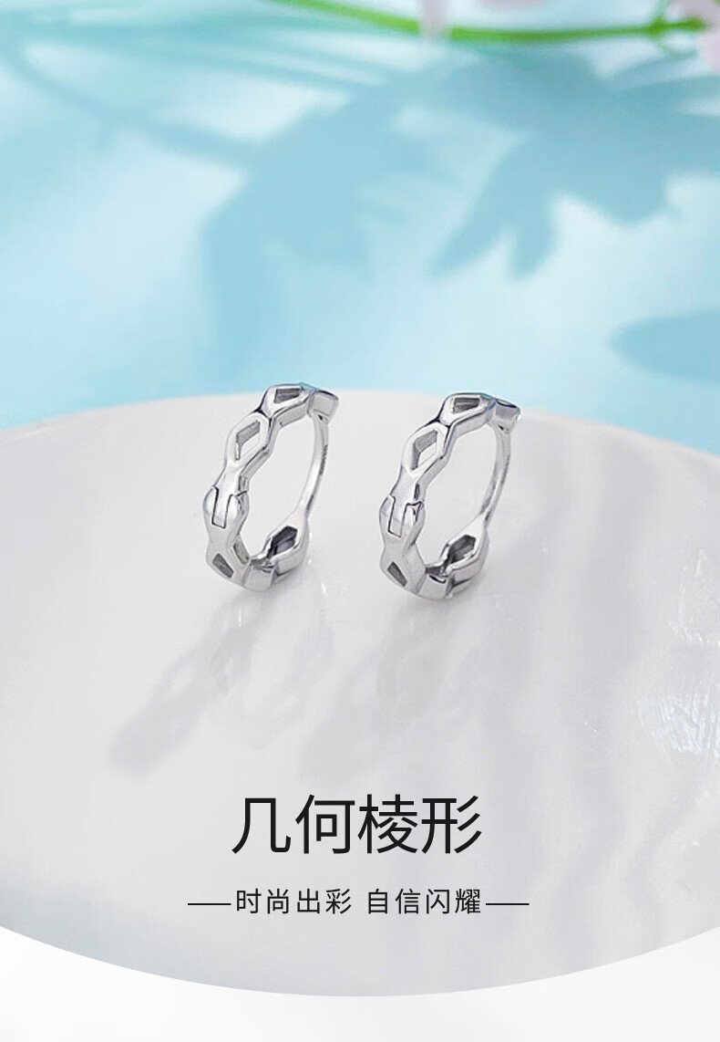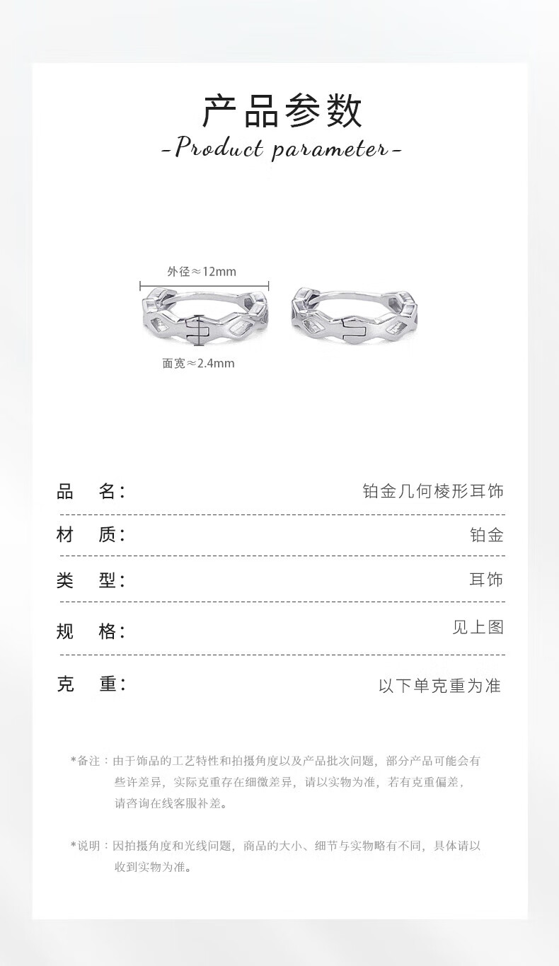 CHINA GOLD platinum geometric prismatic earrings and earrings about 2.16g