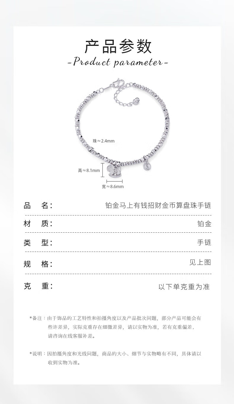 CHINA GOLD platinum bracelet pt950 abacus beads as birthday gift for girlfriend, about 7.78g