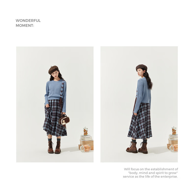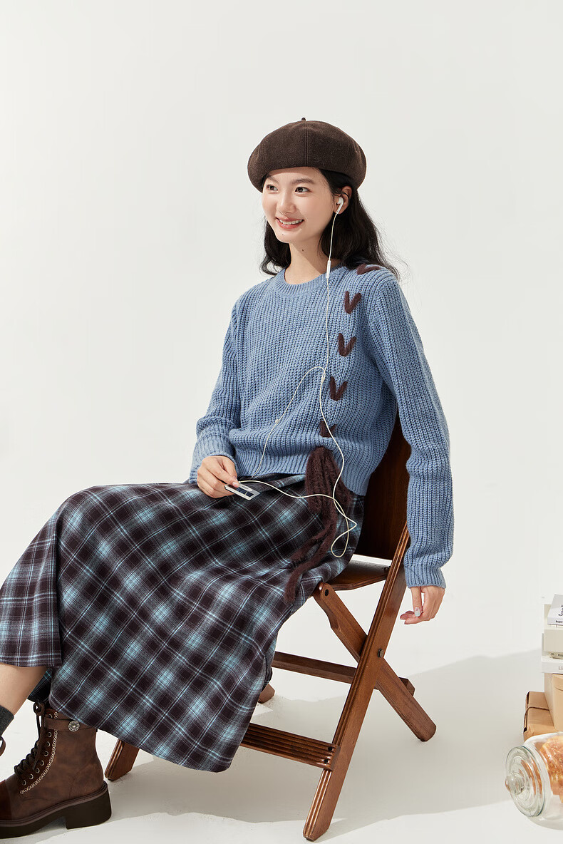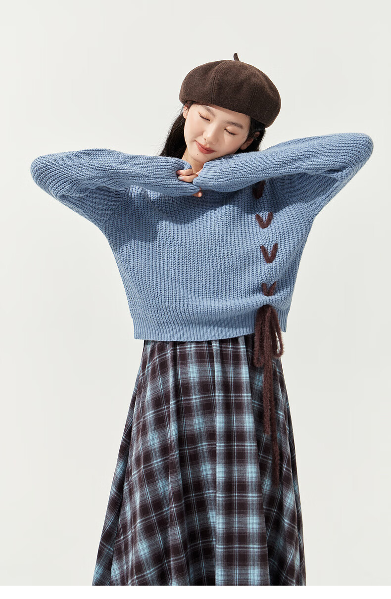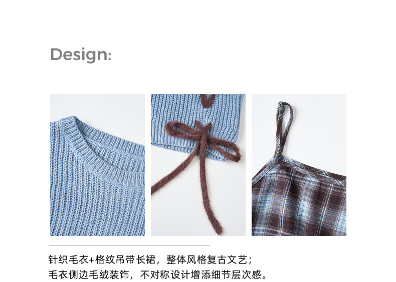 Zihan (ZIHAN) Zihan blue plaid suspender dress wool pullover sweater two-piece suit for women 2025 winter new style blue plaid M