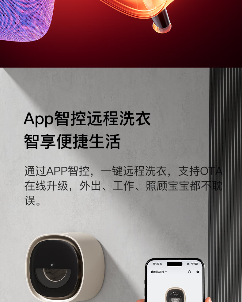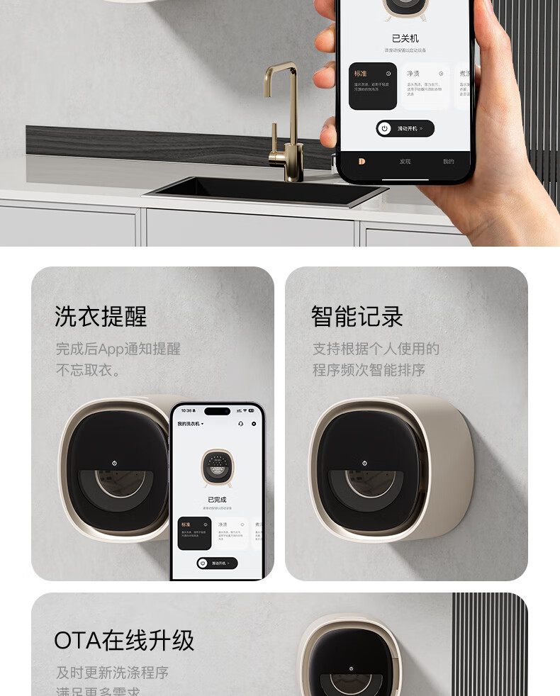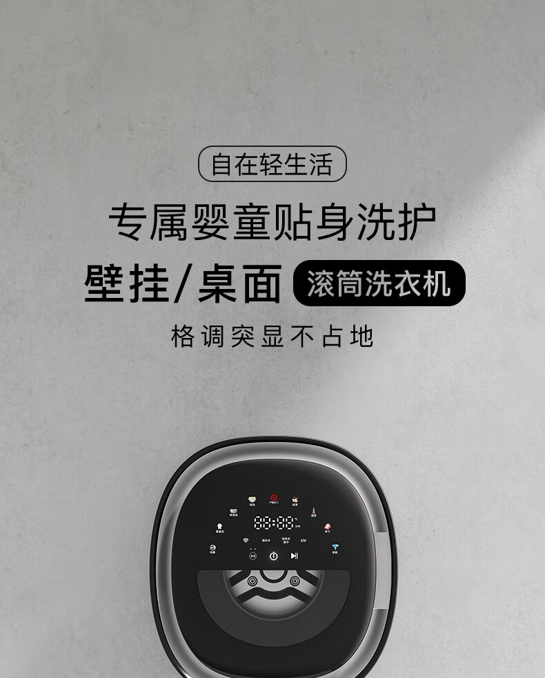 KANGYAN can be connected to APP, fully automatic small mini underwear washing machine, wall-mounted drum, lazy washing machine, underwear washing machine, high-temperature cooking, washing, drying, starry sky gray desktop model, high-temperature cooking and washing drum, automatic liquid injection丨UV ultraviolet sterilization