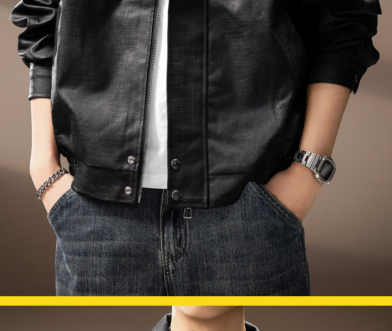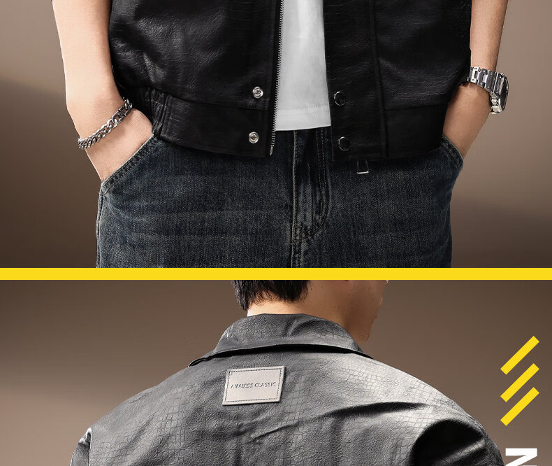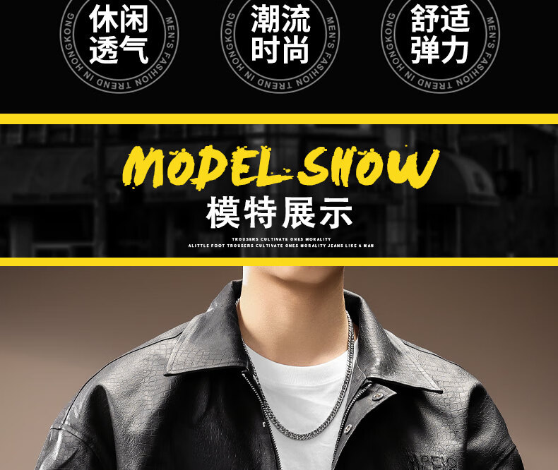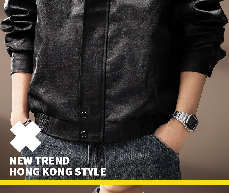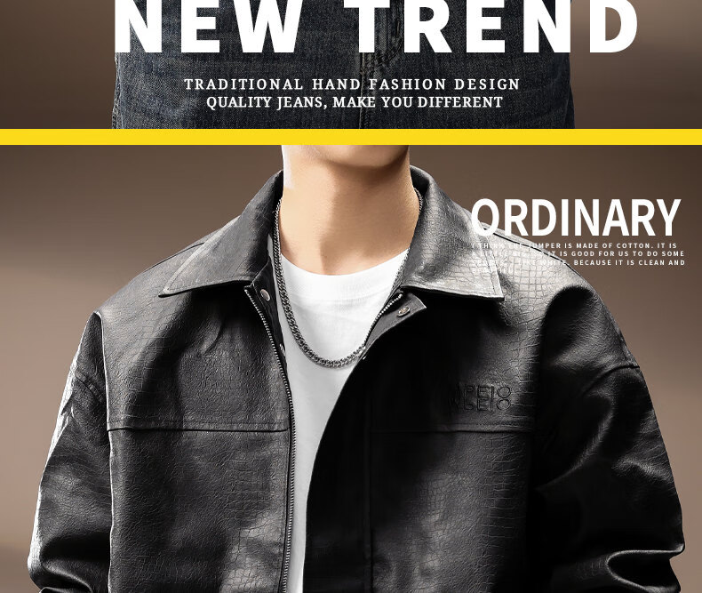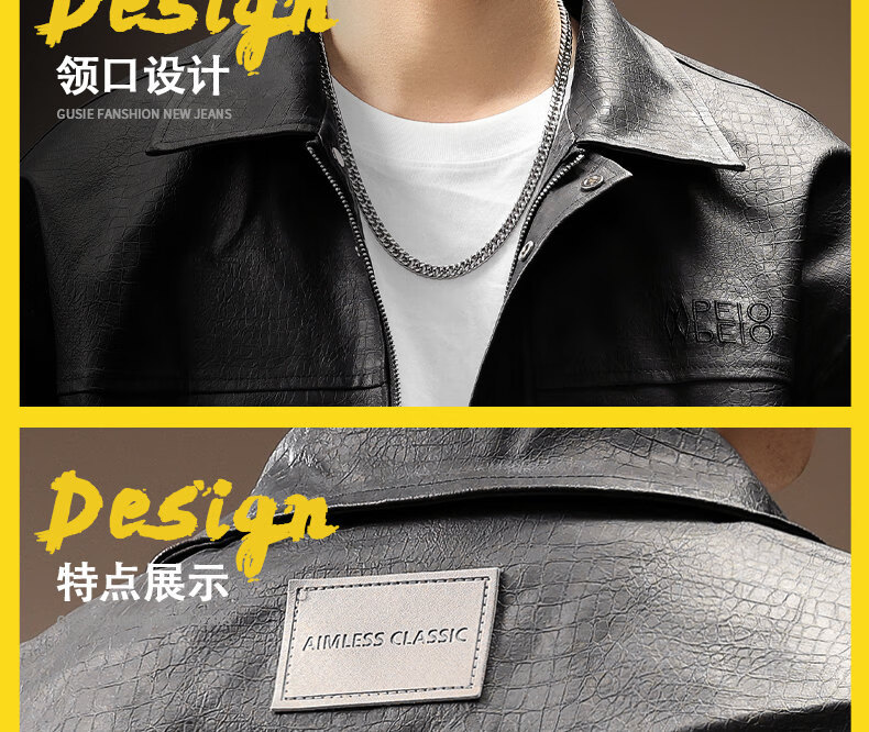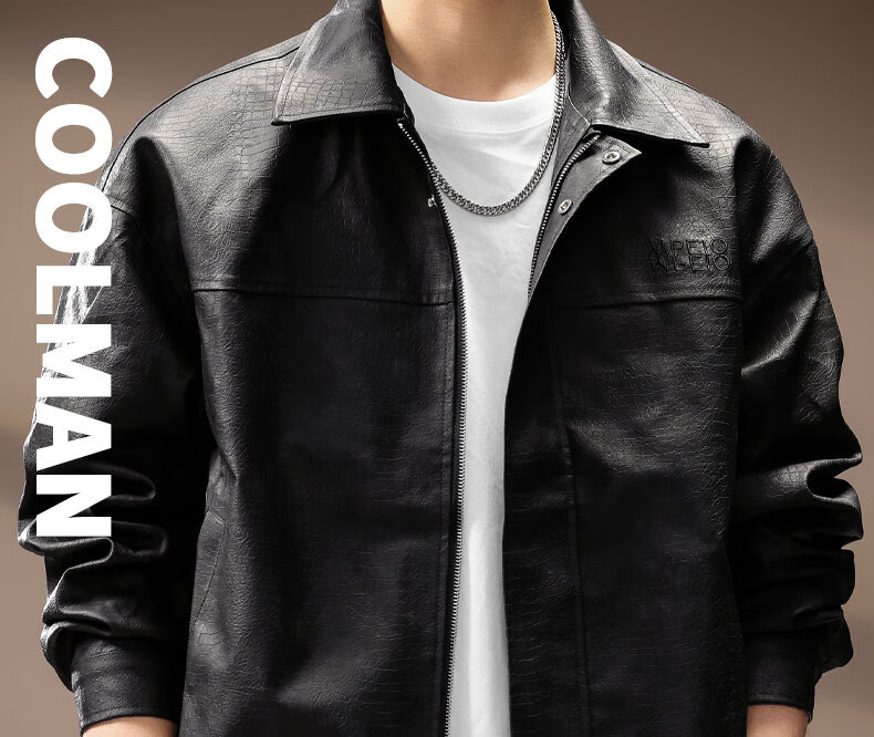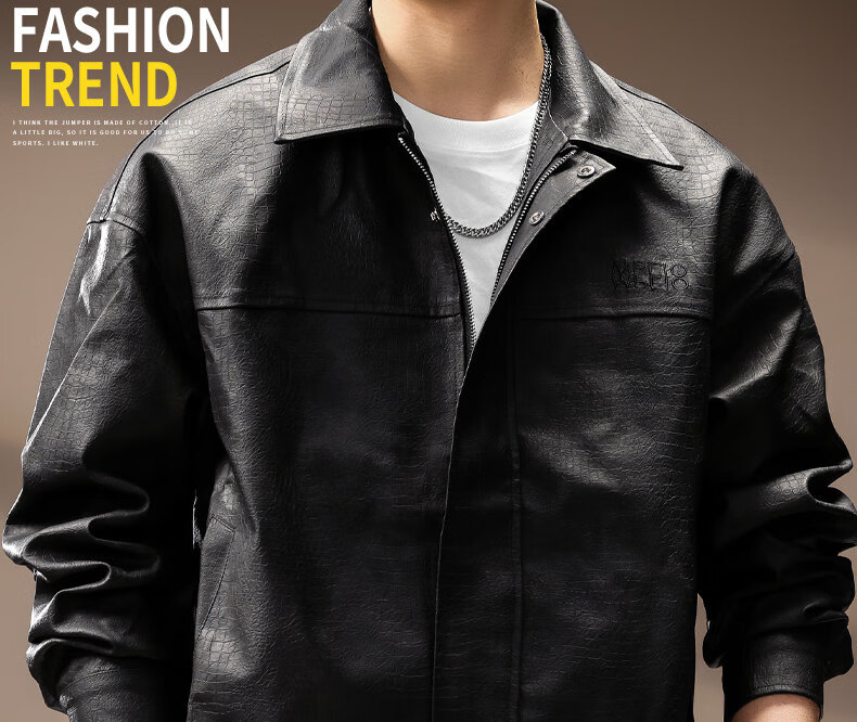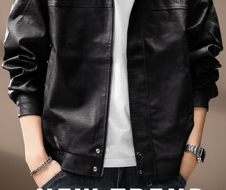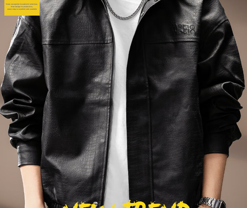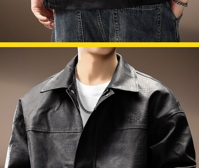New Balance high-end Japanese retro motorcycle lapel PU leather jacket for men in autumn new high street fashion brand loose bomber jacket for men black L