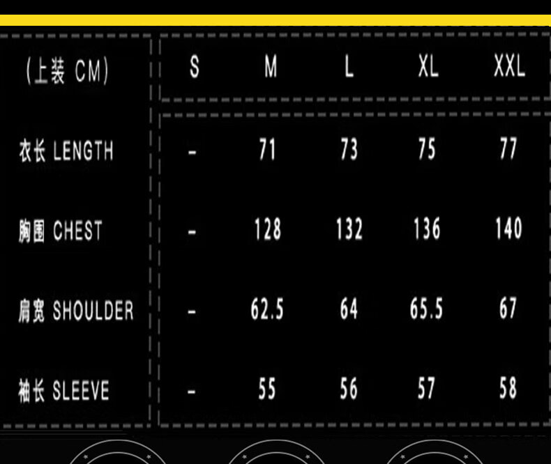 China (cm) 165 / 88-90 170 / 96-98 175 / 108-110 180 / 118-122 185 / 126-130