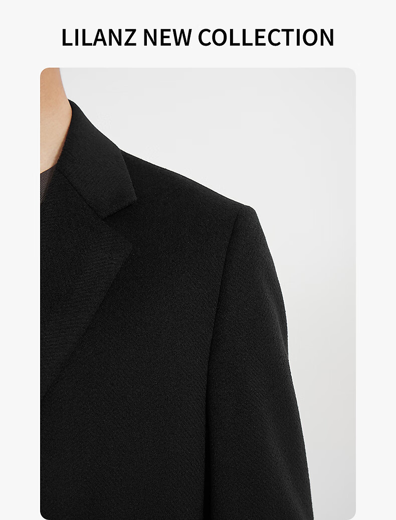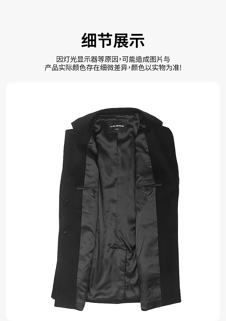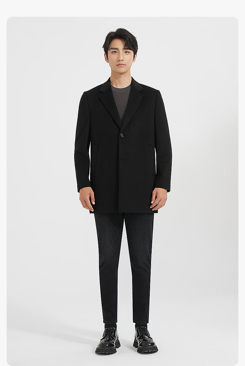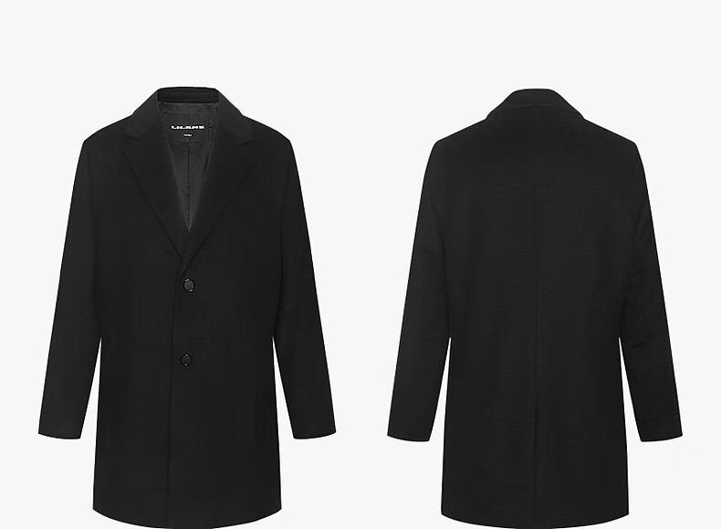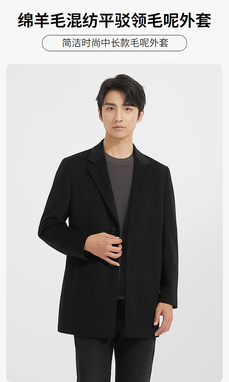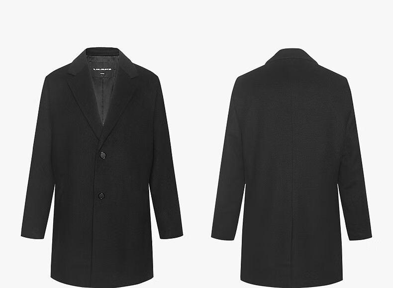 Lilang mid-length woolen coat men's wool knitted smooth wool coat jacket winter 2025 new business coat men black (24DYR3041Y) 2XL 180/96A
