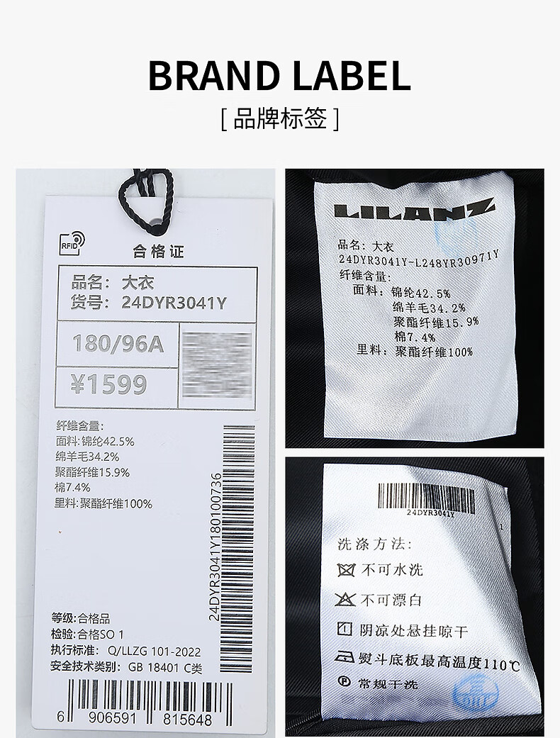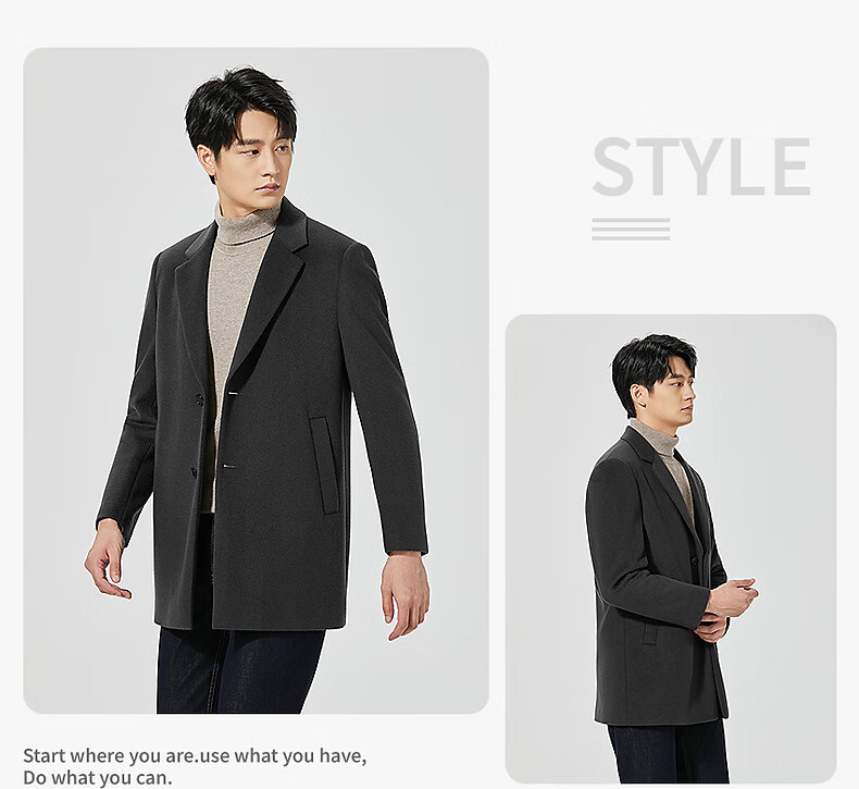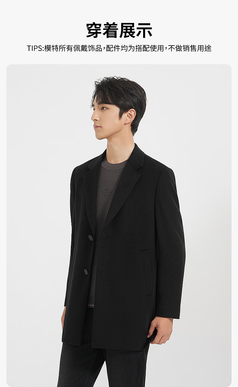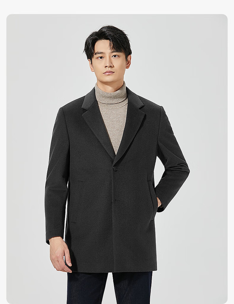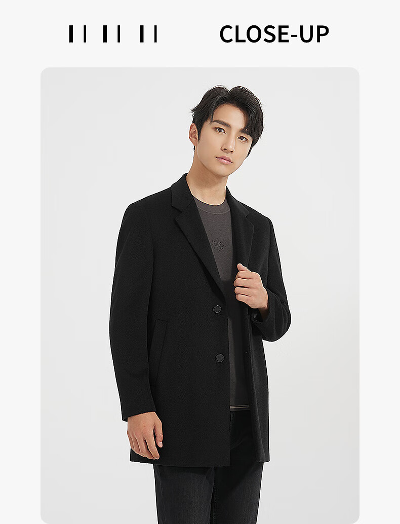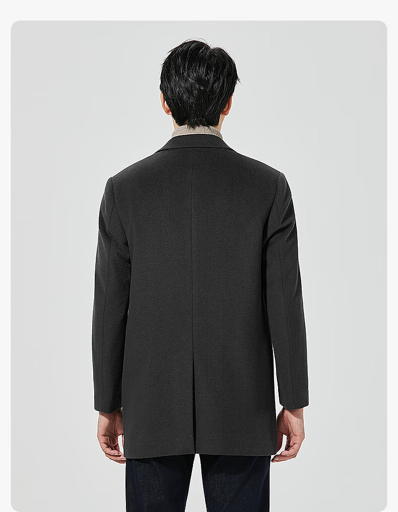 Lilang mid-length woolen coat men's wool knitted smooth wool coat jacket winter 2025 new business coat men black (24DYR3041Y) 2XL 180/96A