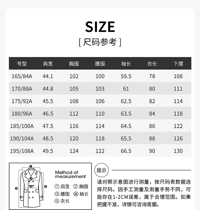 China (cm) 160-165/84-86 165-170 / 88-90 167-172 / 92-96 168-173 / 98-102 170-176 / 106-110