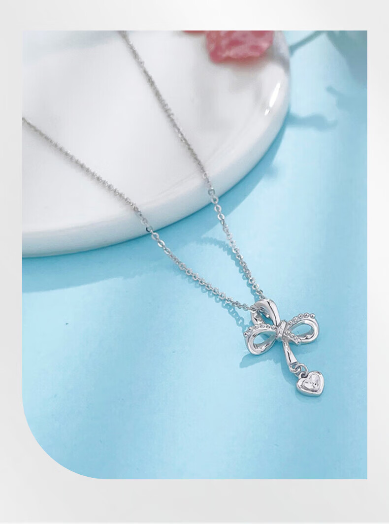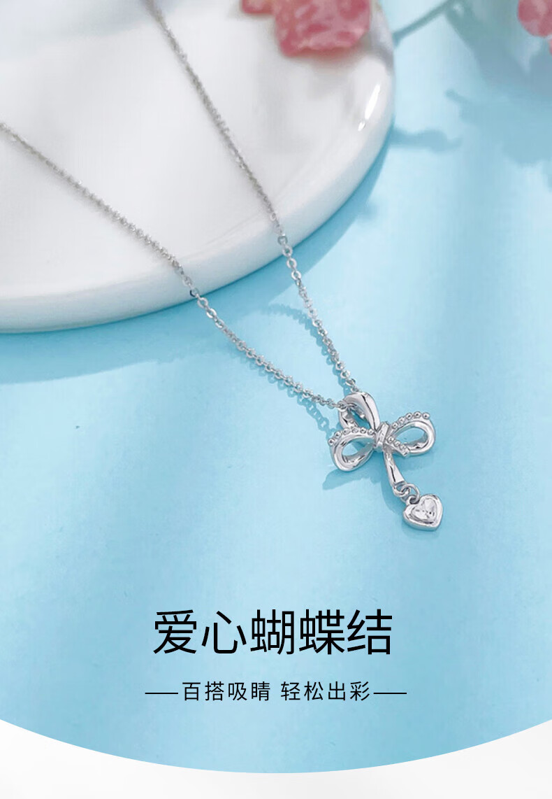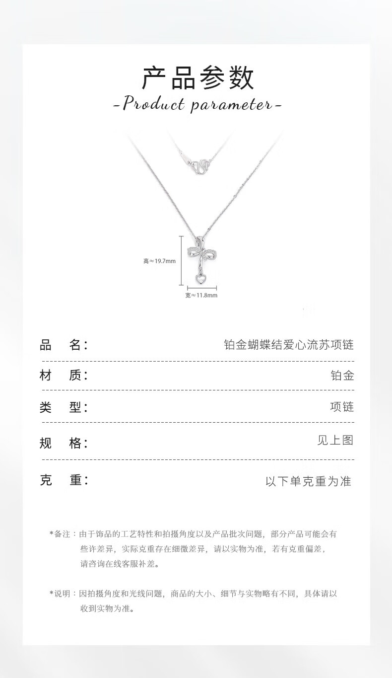 Laofu gold platinum necklace pt950 bow love tassel necklace women's birthday gift for girlfriend and wife, about 3.89g