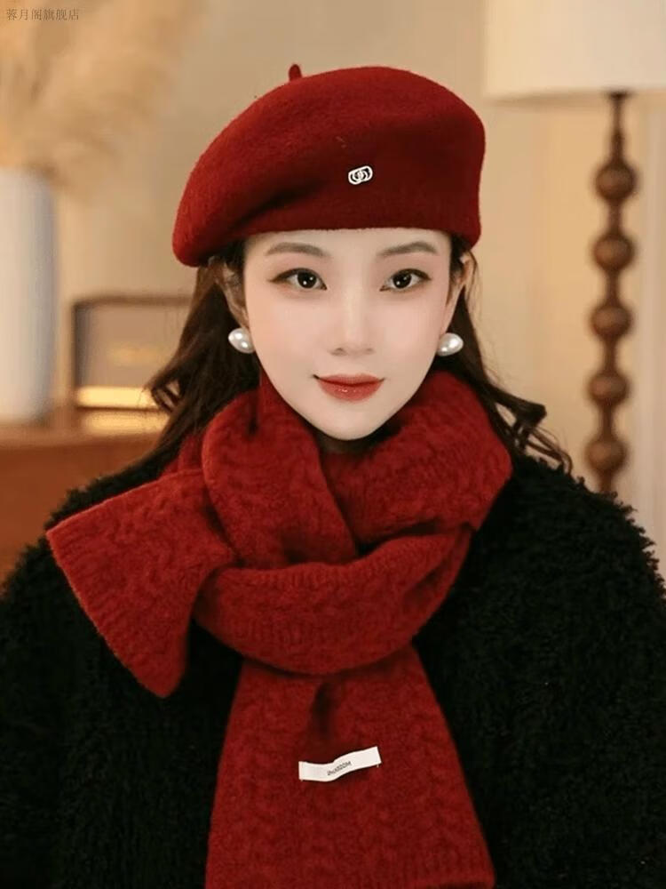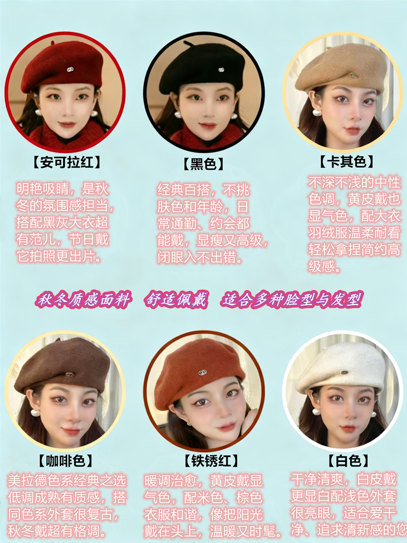 Rongyuege beret women's 2025 new autumn and winter warm and elegant fashion face-showing little painter's hat beret Ankola red woolen beret one size