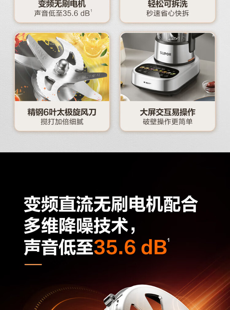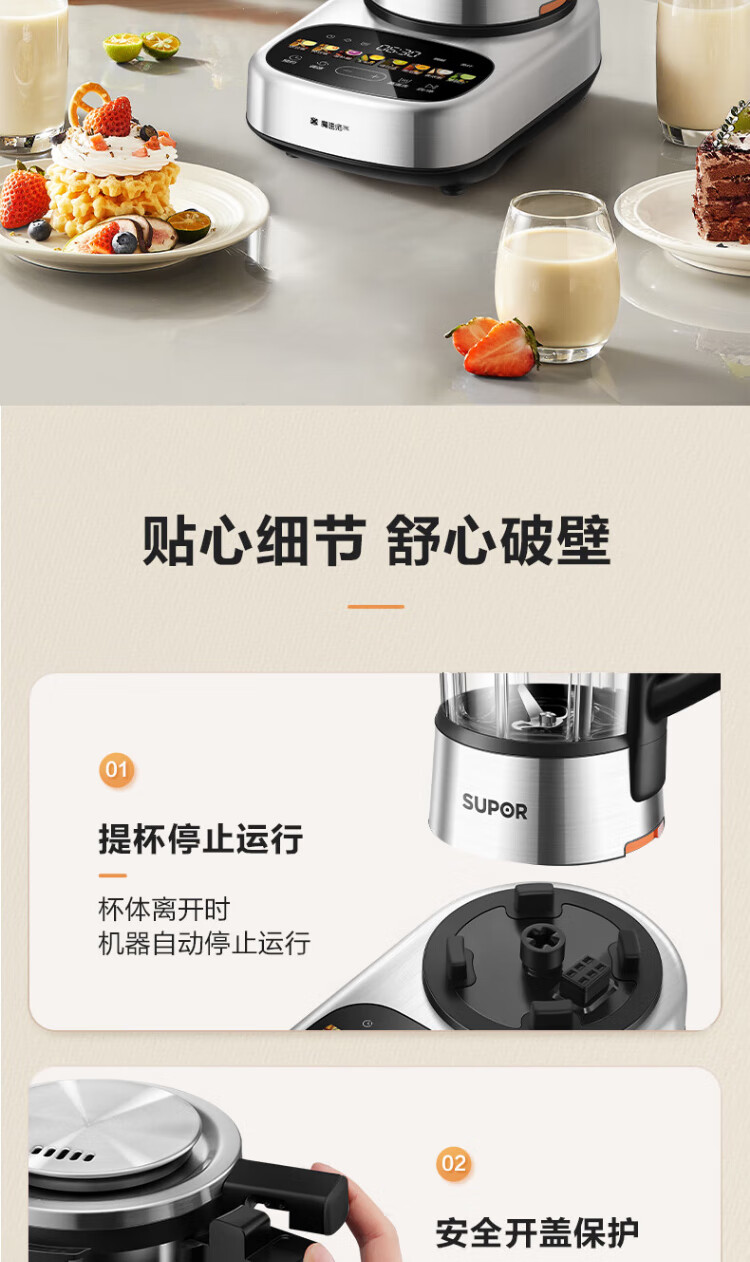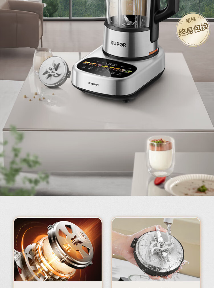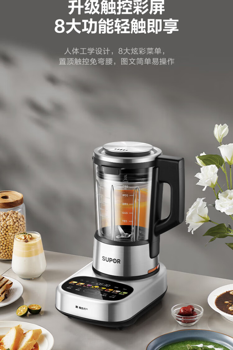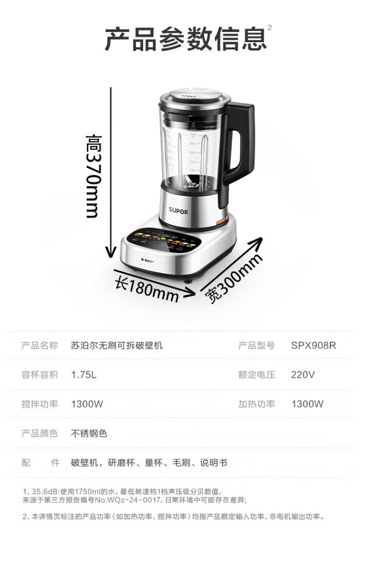 Supor wall-breaking cooking machine SPX908R variable frequency brushless bass detachable wall-breaking machine household mixing soybean milk machine silver SPX908R