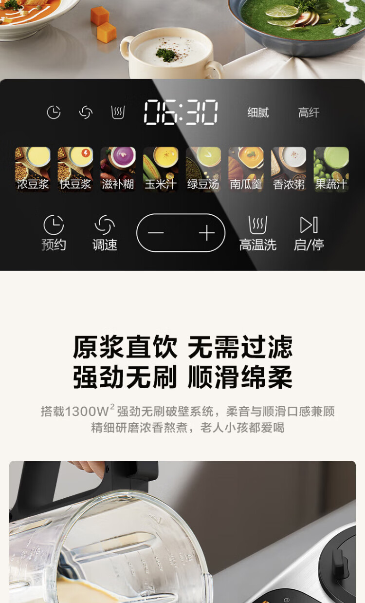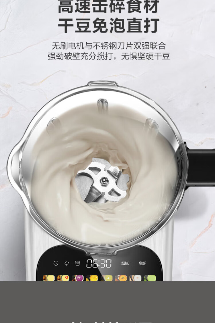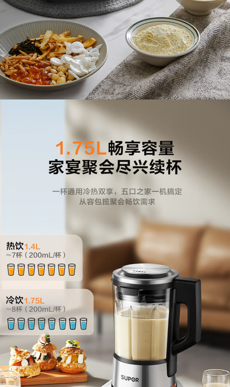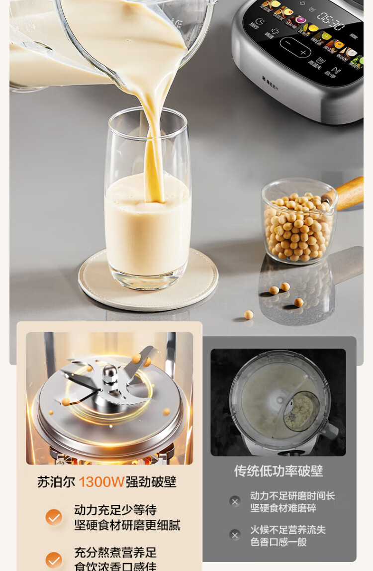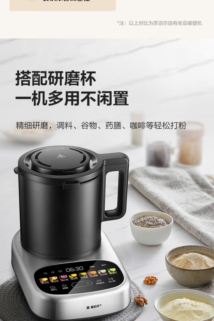 Supor wall-breaking cooking machine SPX908R variable frequency brushless bass detachable wall-breaking machine household mixing soybean milk machine silver SPX908R