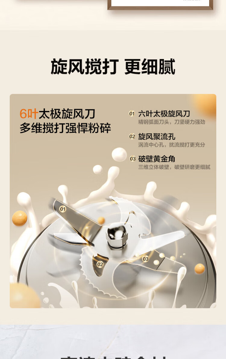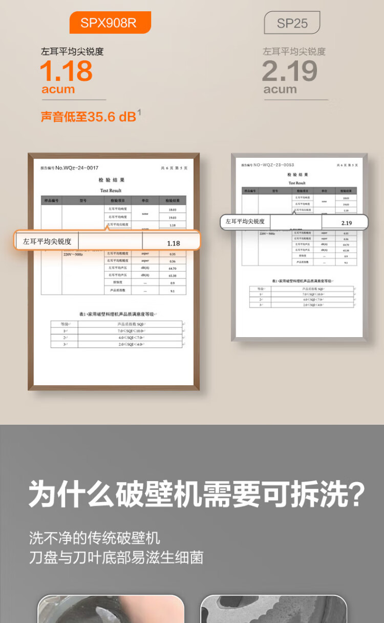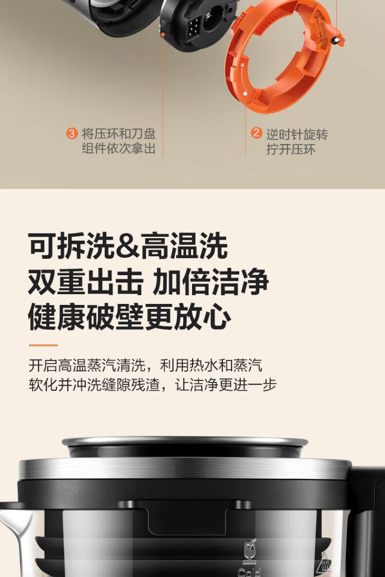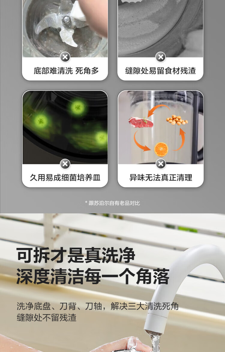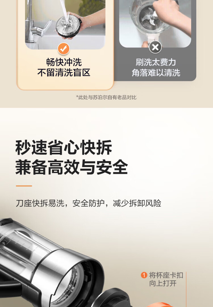 Supor wall-breaking cooking machine SPX908R variable frequency brushless bass detachable wall-breaking machine household mixing soybean milk machine silver SPX908R