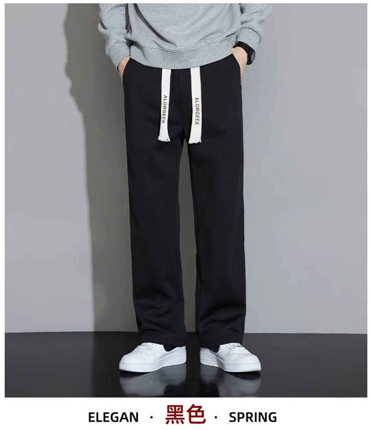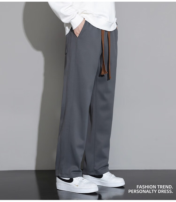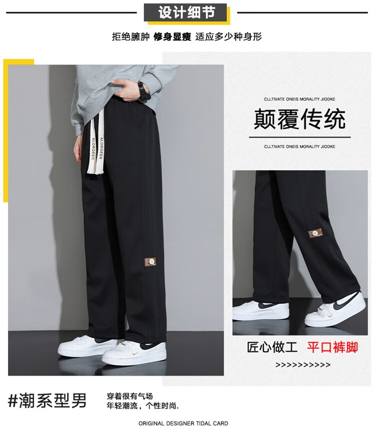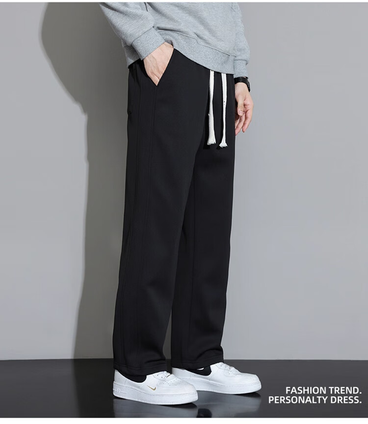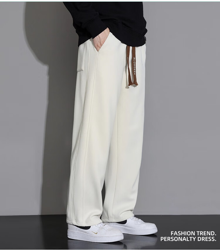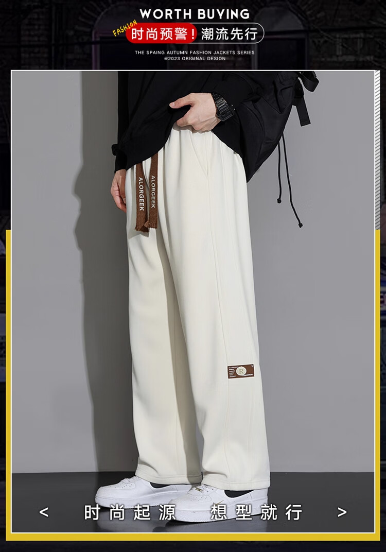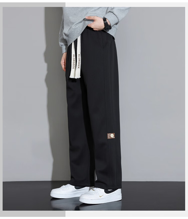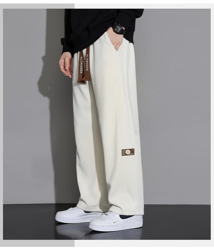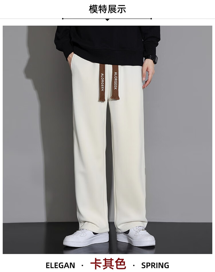 Woodpecker Casual Pants Men's Autumn and Winter Plus Velvet 2025 New Straight Leg Sports Pants Loose Wide Leg Casual Long Pants Khaki XL (Recommended 125-150Jin Jin equals 0.5 kg)