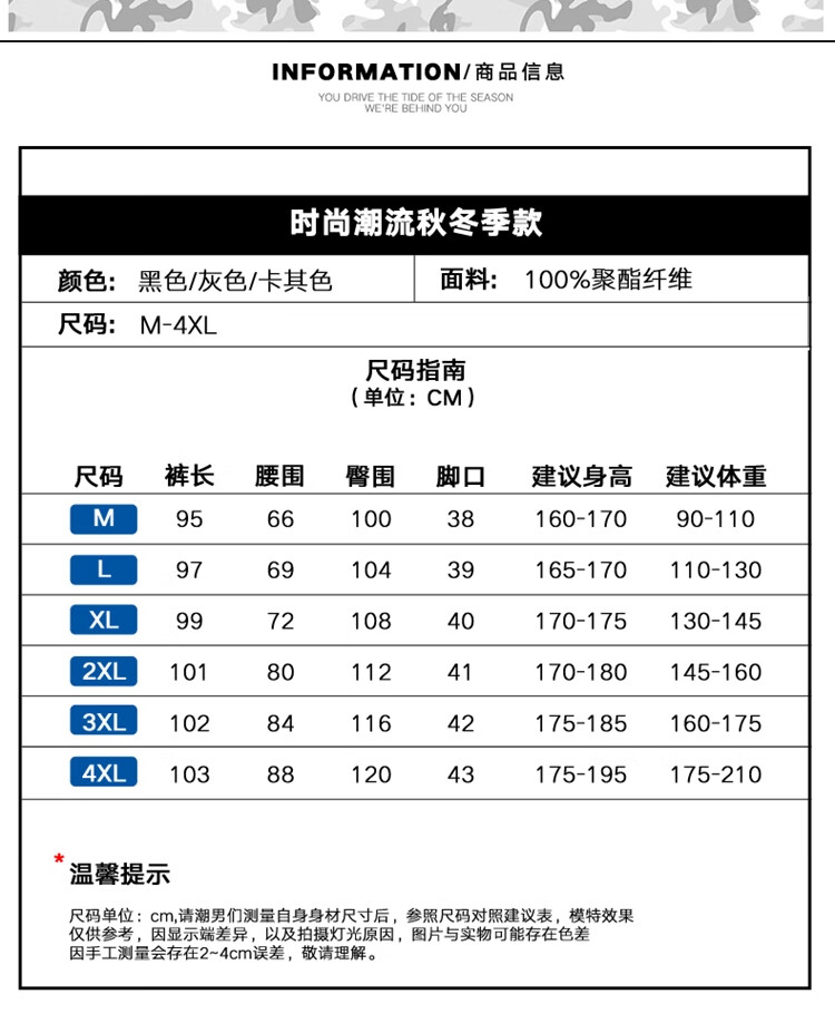 China (cm) 165 / 88-90 170 / 96-98 175 / 108-110 180 / 118-122 185 / 126-130