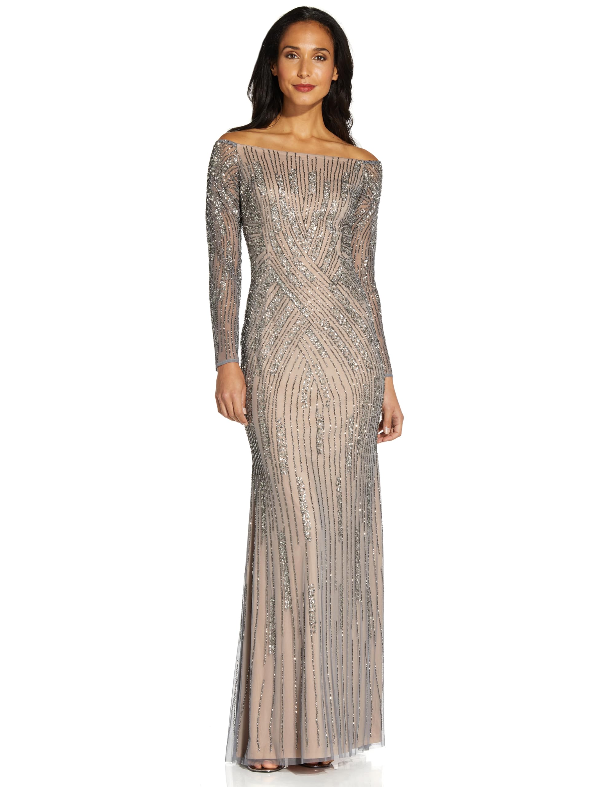 Adrianna Papell Women's Beaded Off Shoulder Gown Brilliant Sapphire 12