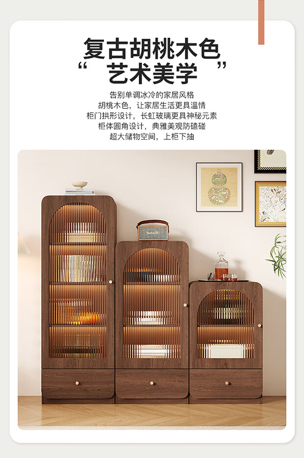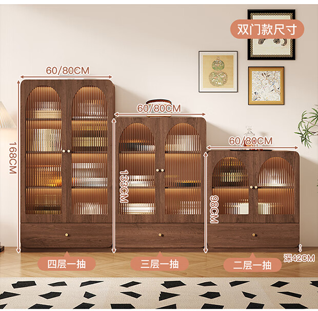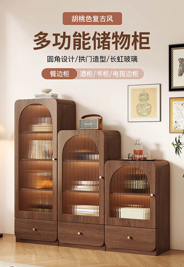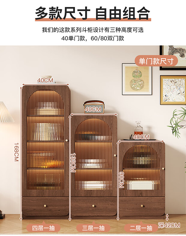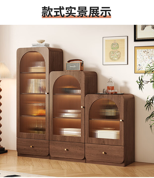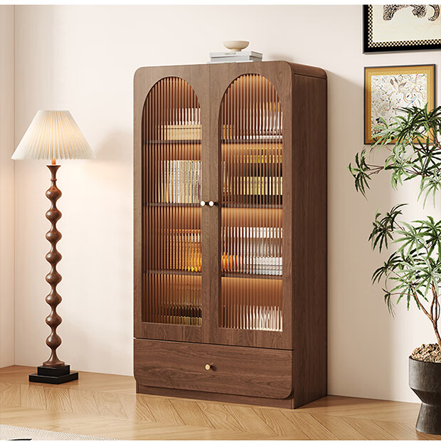 I love Sichuan Weizhong antique style glass door bookcase wine cabinet tea bar cabinet home living room standing cabinet TV side cabinet display storage locker 40*42*98 walnut color/delivered into the home
