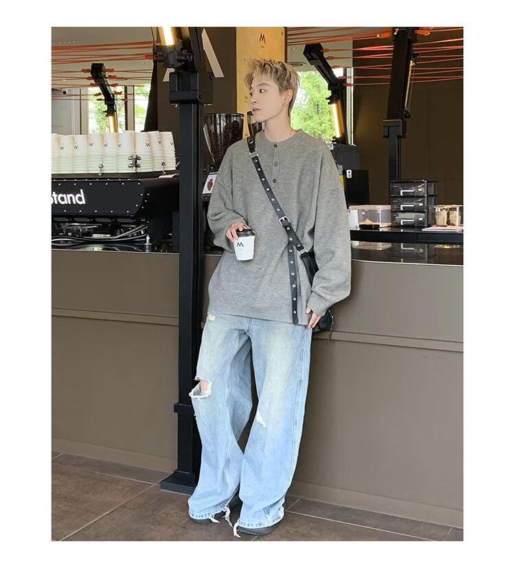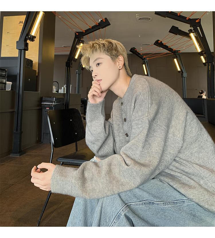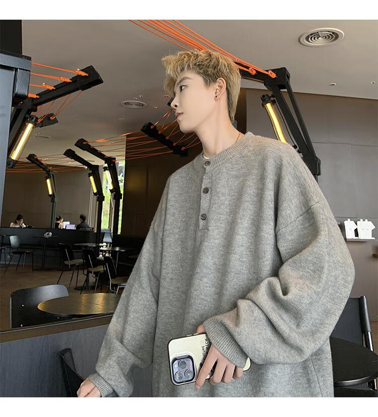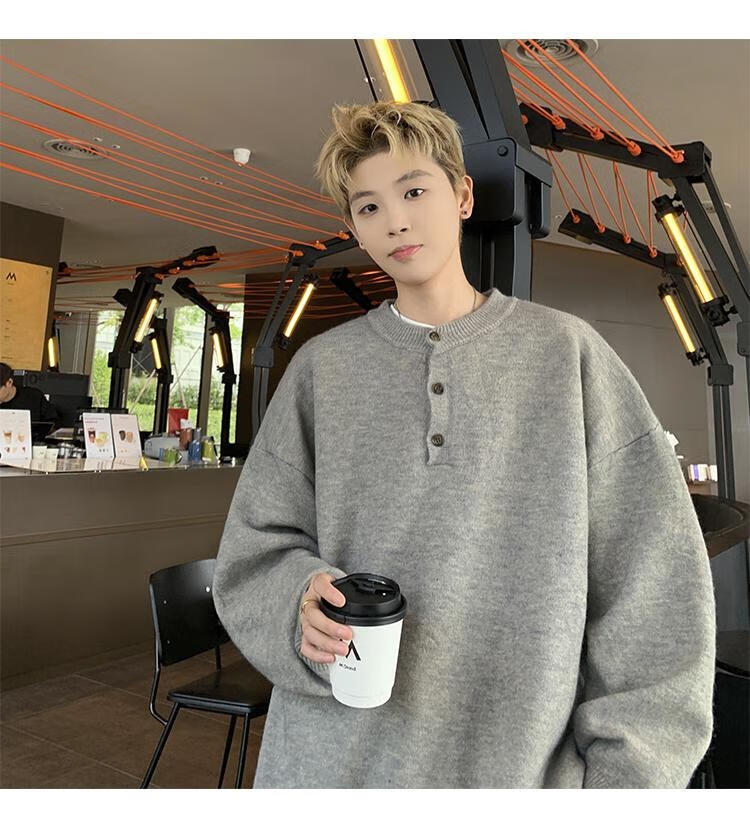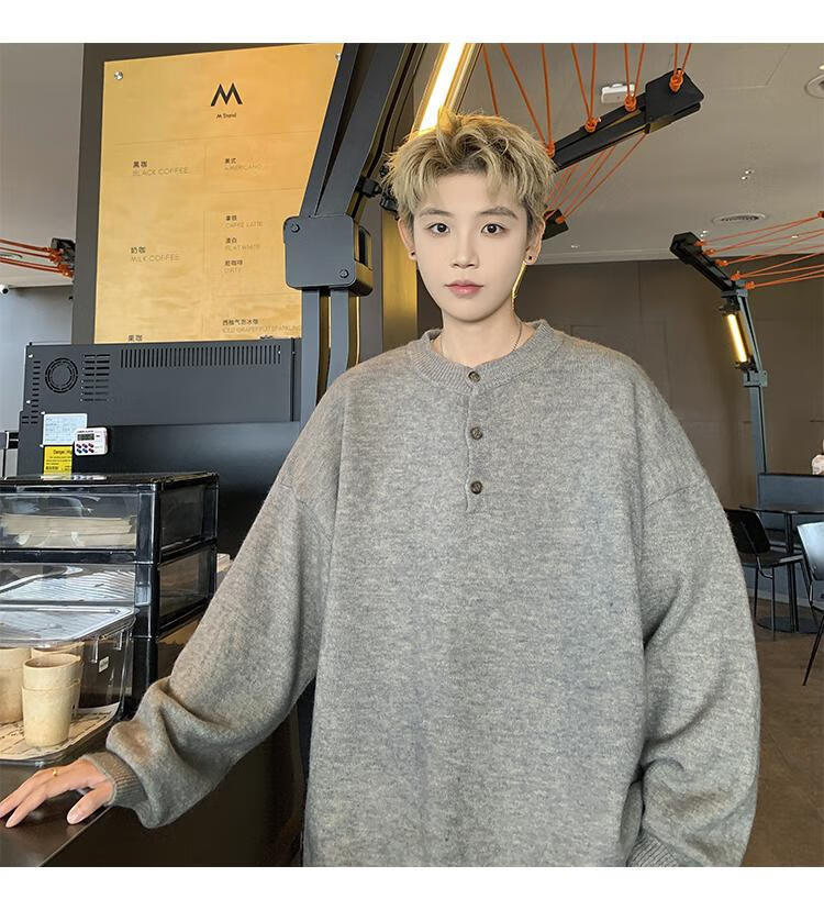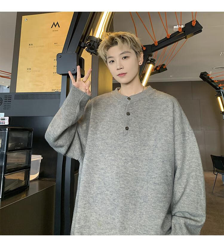 Playboy (PLAYBOY) Gray American Henley Collar Sweater Men's Early Autumn Feeling Lazy Style Bottoming Sweater Cleanfit Inside Light Gray Upgraded Model M (95-115Jin Jin is equal to 0.5kg)