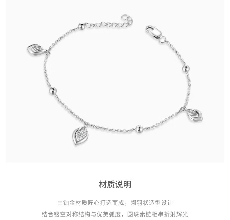 Lao Fengxiang New Product Yao Ling Series Feather Hollow Diamond Platinum Bracelet Women's Gift Feather Bracelet 18.00 3.88