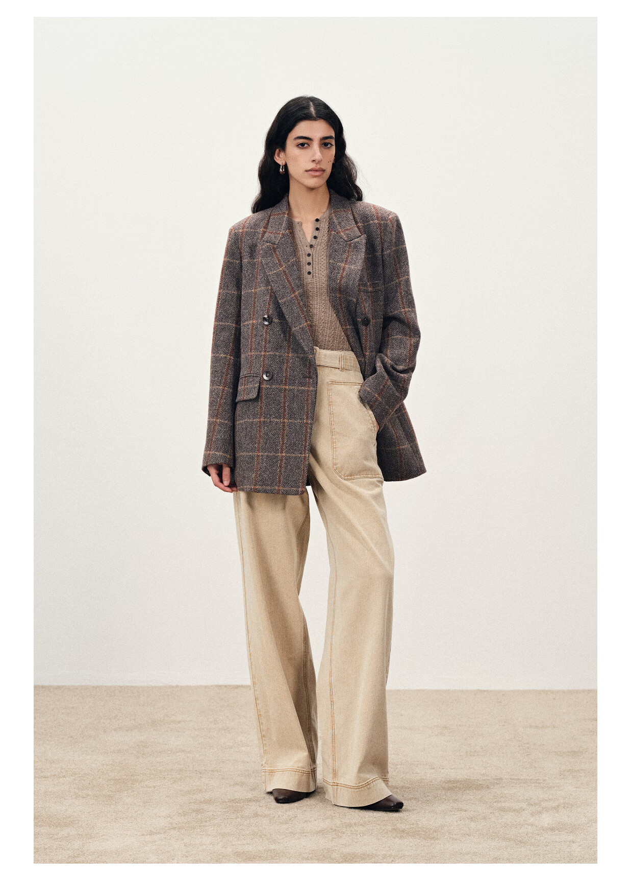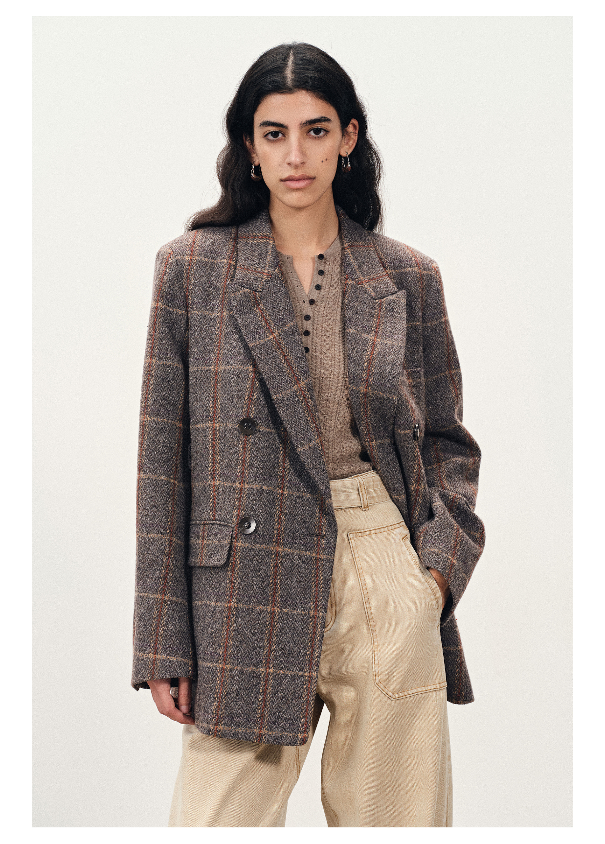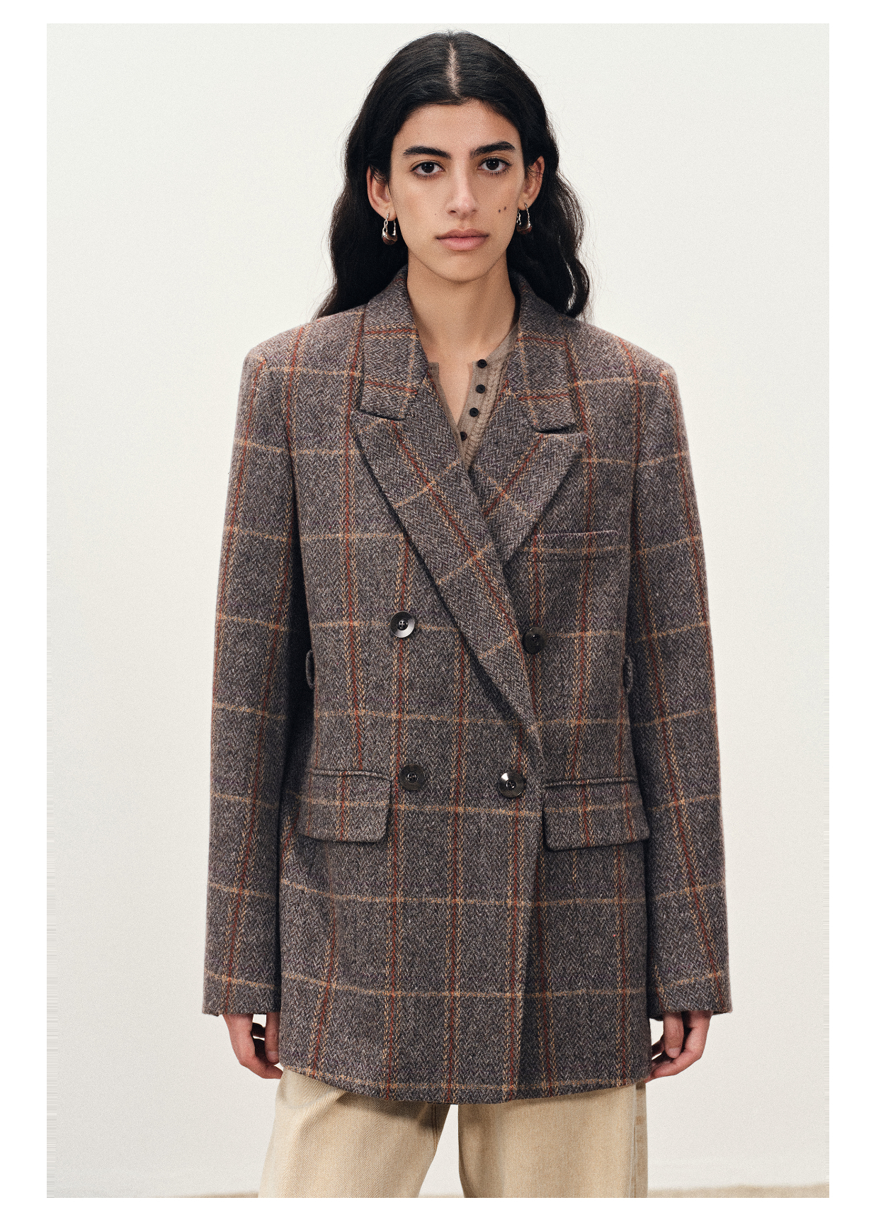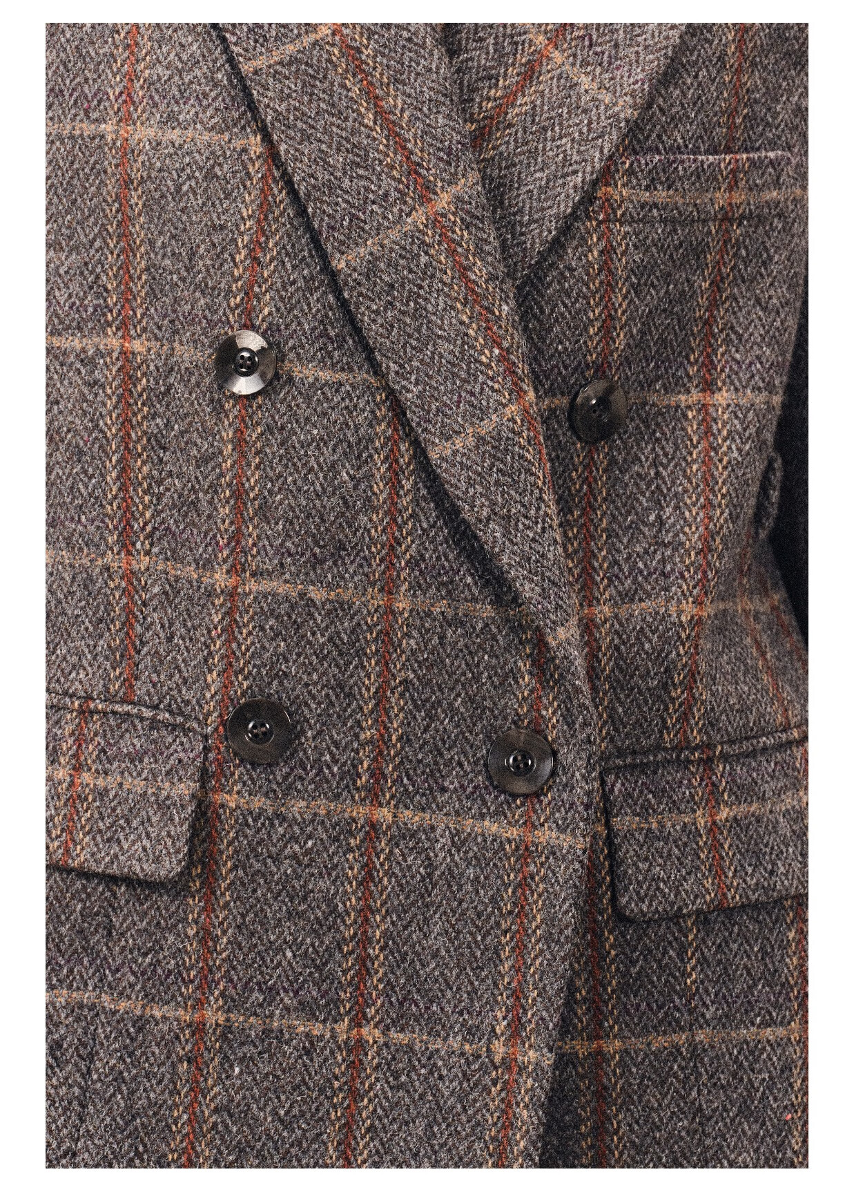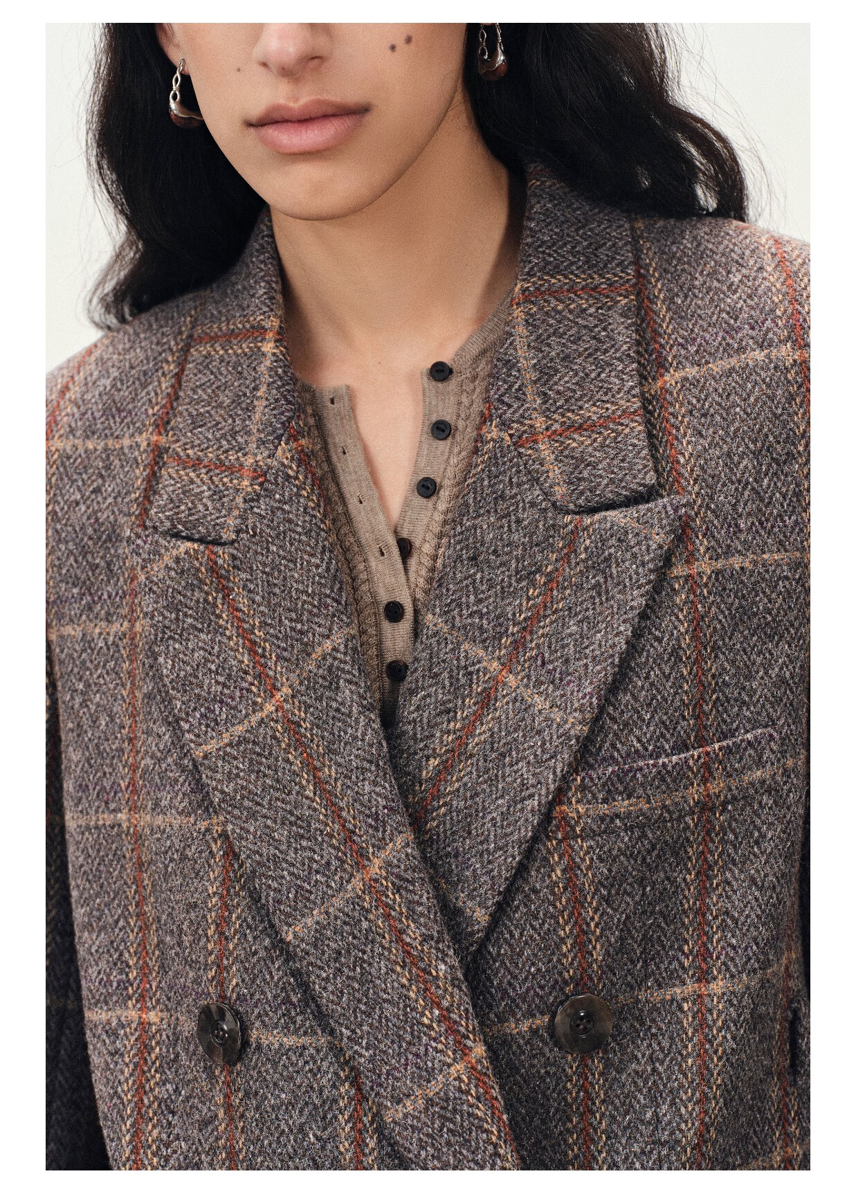 Fabrique retro plaid belted lapel collar wool blazer Plaid XS