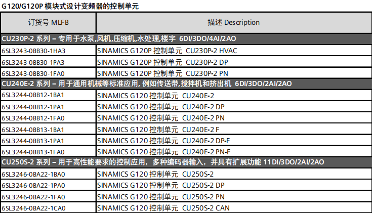 G120 inverter control unit 6SL3244-0BB12-1FA0/1BA1/1PA1/1HA3 6SL3246-0BA22-1PA0 CU2511