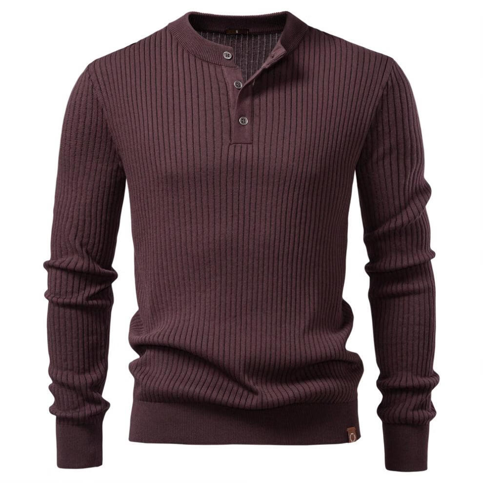 ROMON 2025 New Autumn and Winter Heavy Retro Men's Stand Collar Knitted Sweater Men's Jacket Henry Collar Knitted Sweater Anti-pilling Black S 115-130Jin Jin is equal to about 0.5 kg